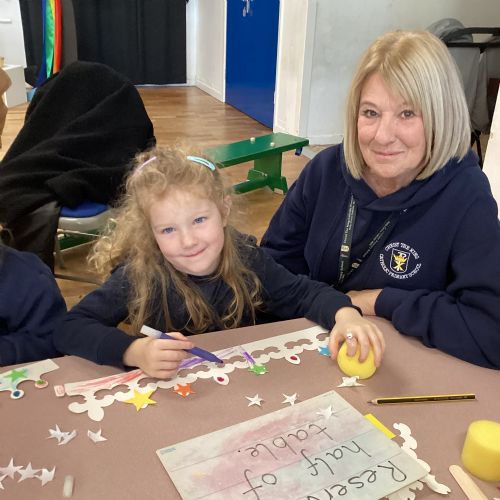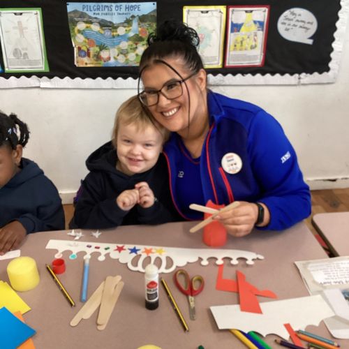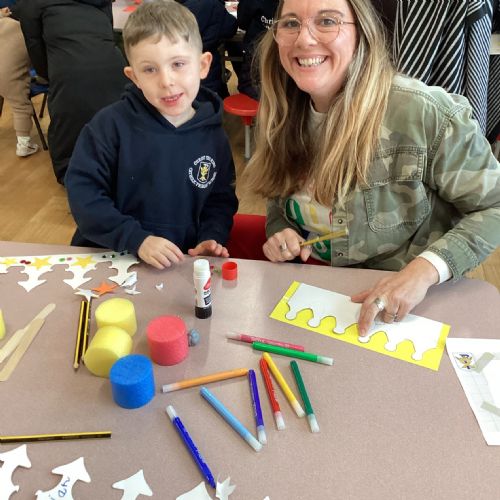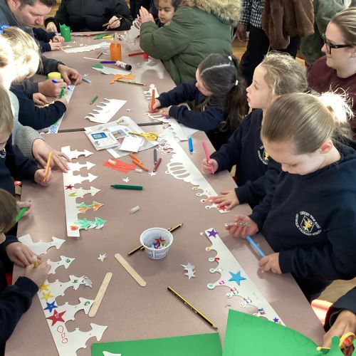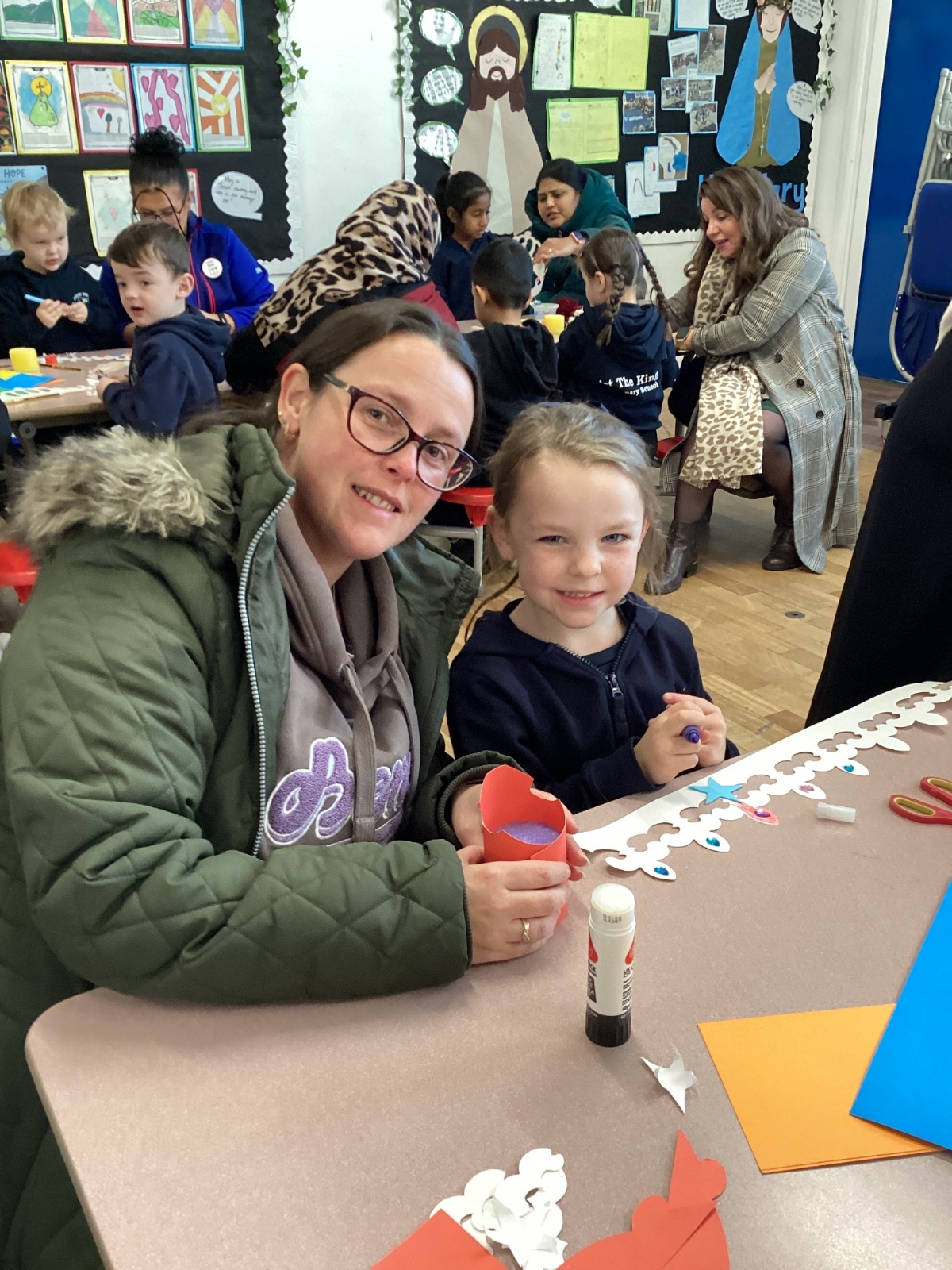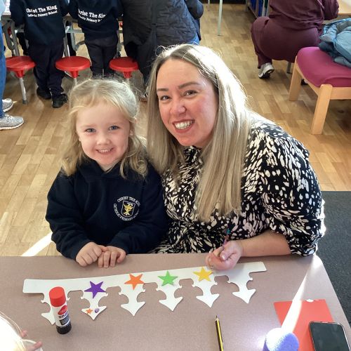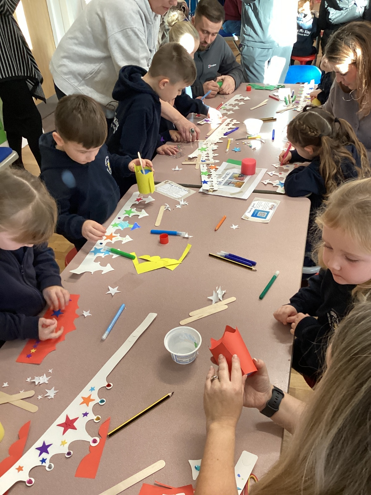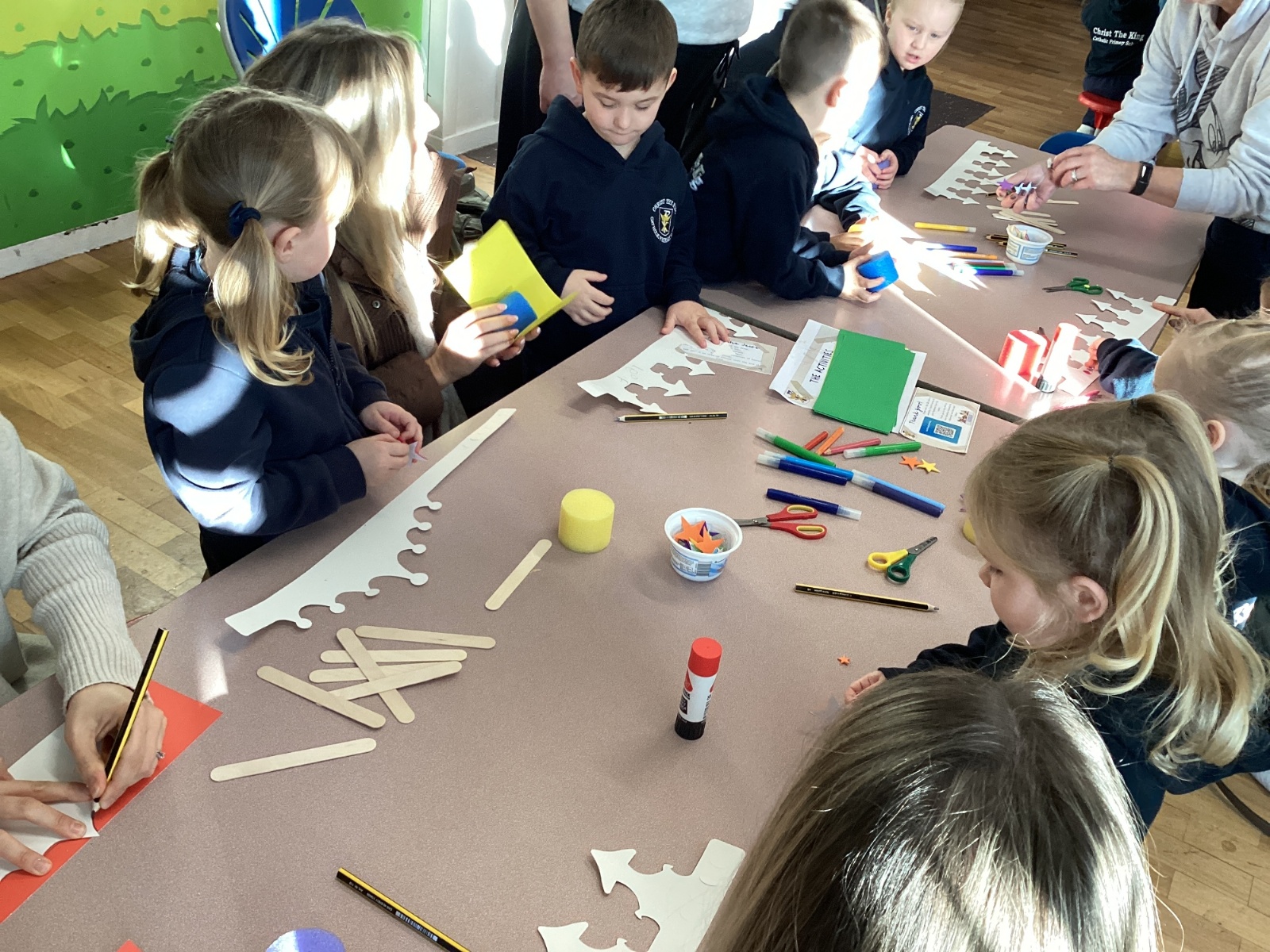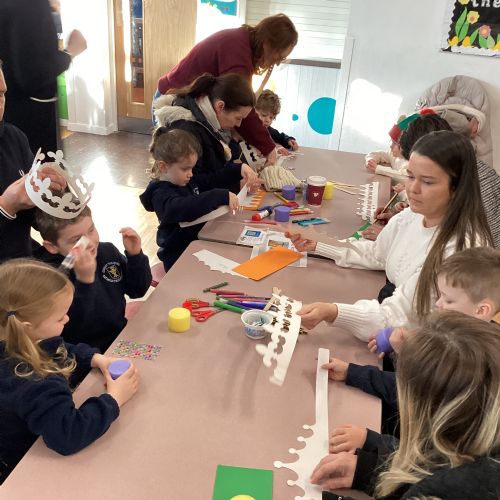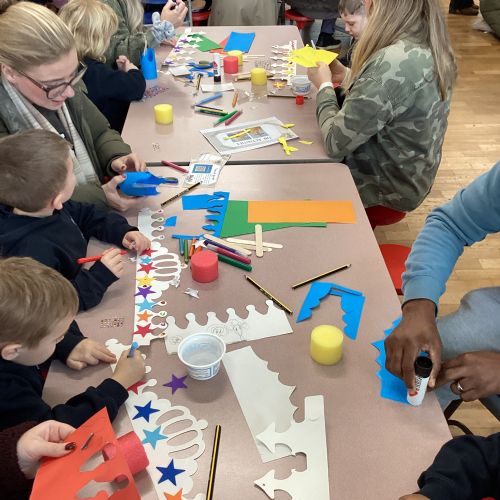 We invited our families in for a Family Faith Day. We celebrated the Feast of Christ the King and had a prayer time and reflection about Jesus as our King. We then made crowns and crown statues.