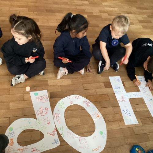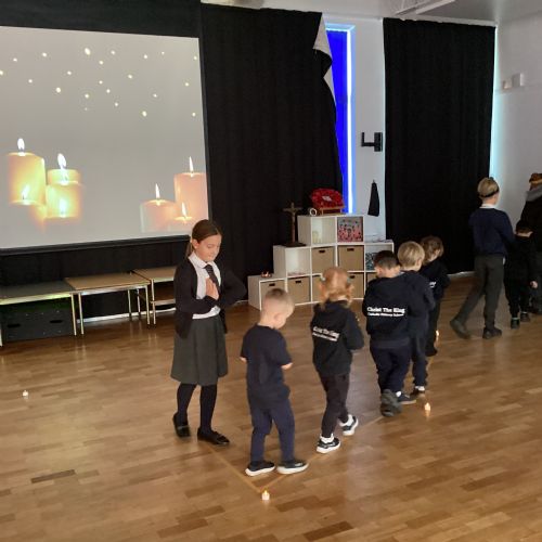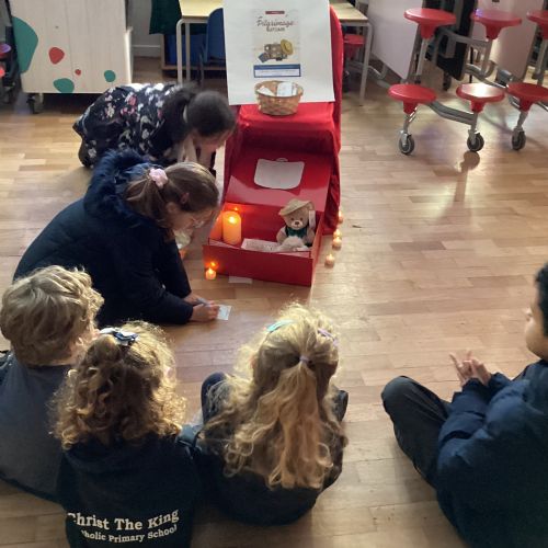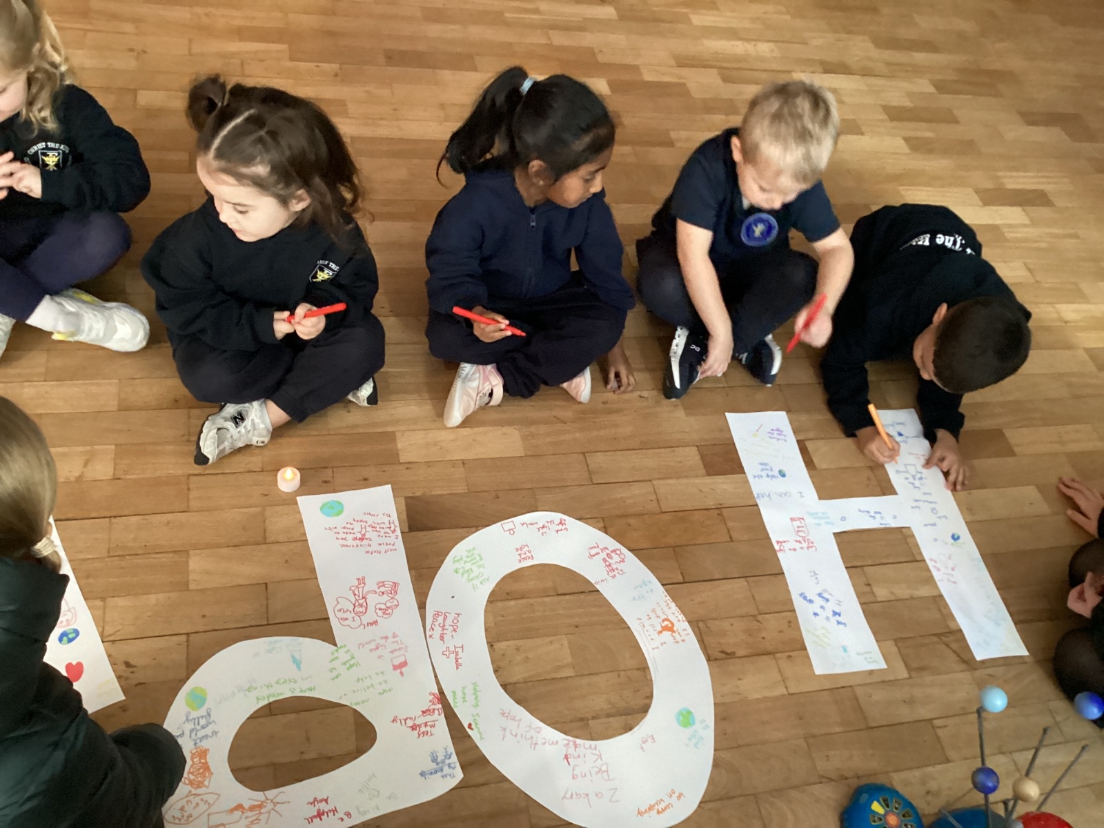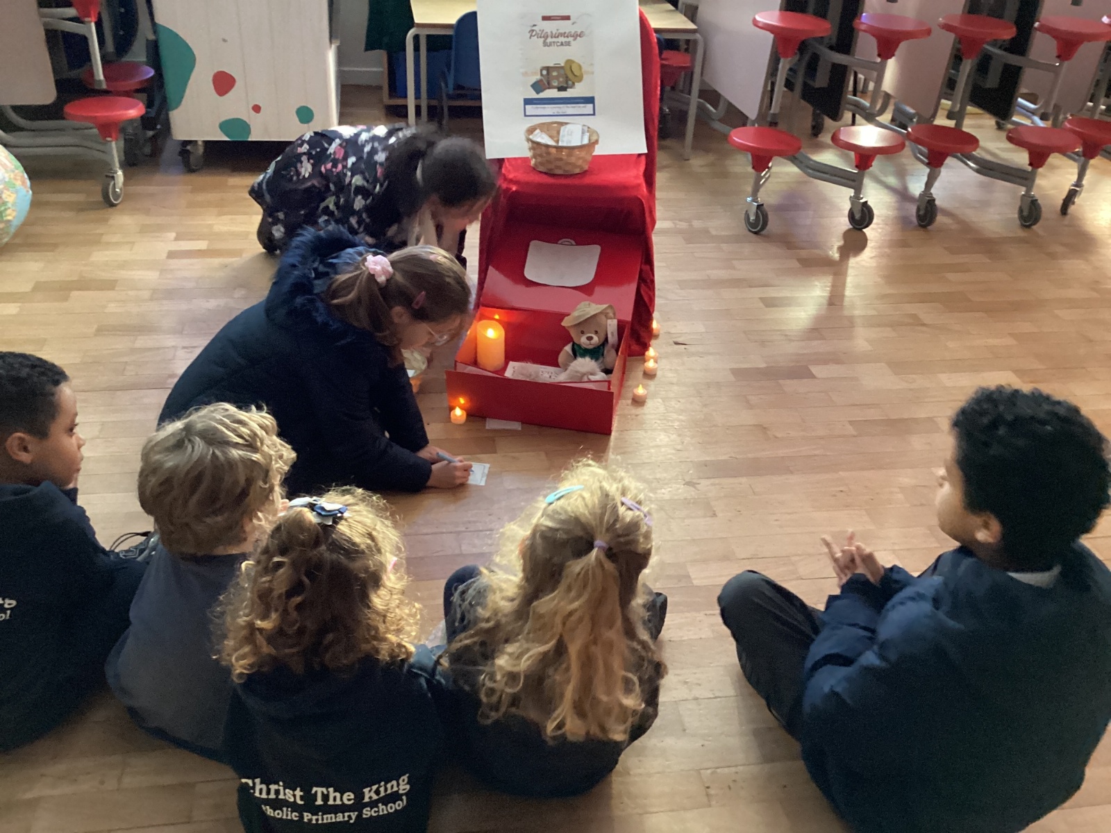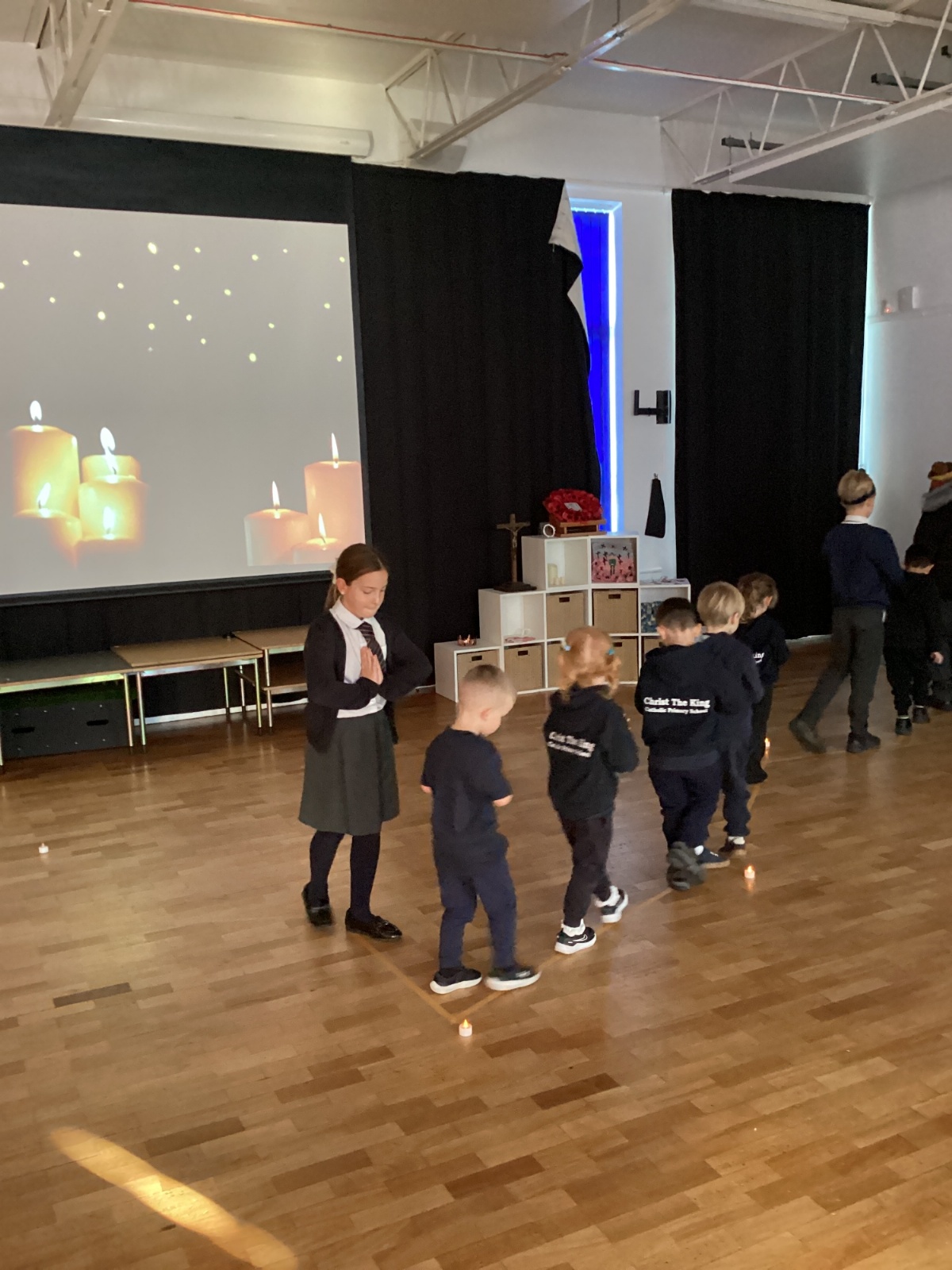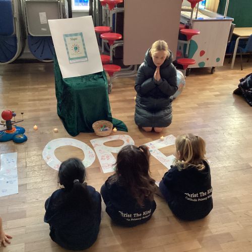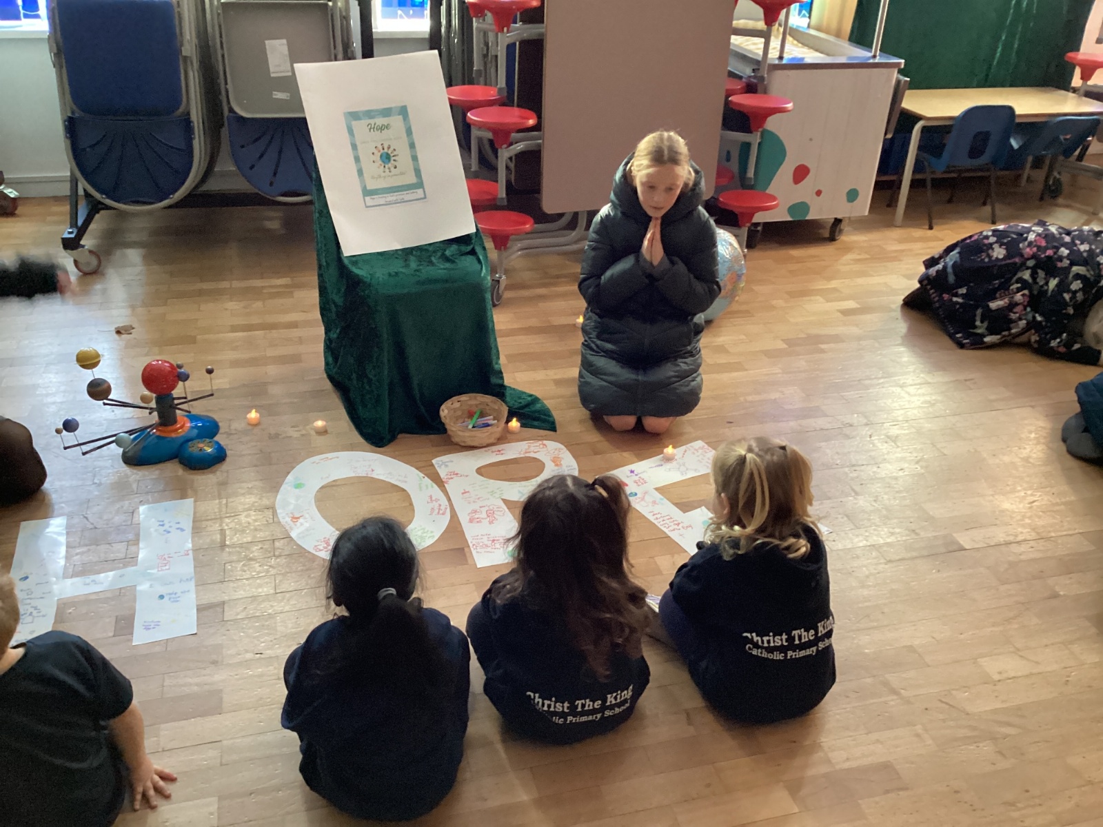 We celebrated the end of the Jubilee Year and focused on our shared mission of forming Christ-centred pilgrims of hope, with kind hearts and a hunger for justice. We completed our own Pilgrimage around the school hall by visiting seven prayer stations and completing a range of activities. Our Year 5 friends helped us complete the stations and prayed with us.