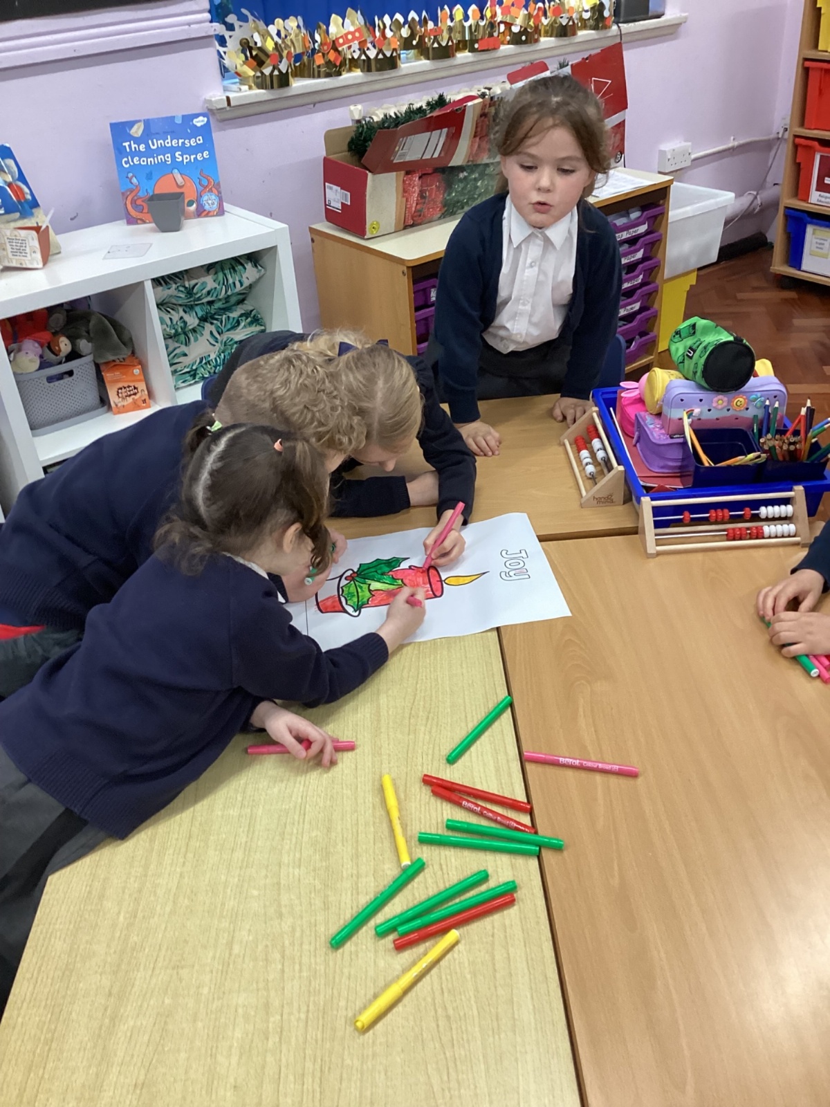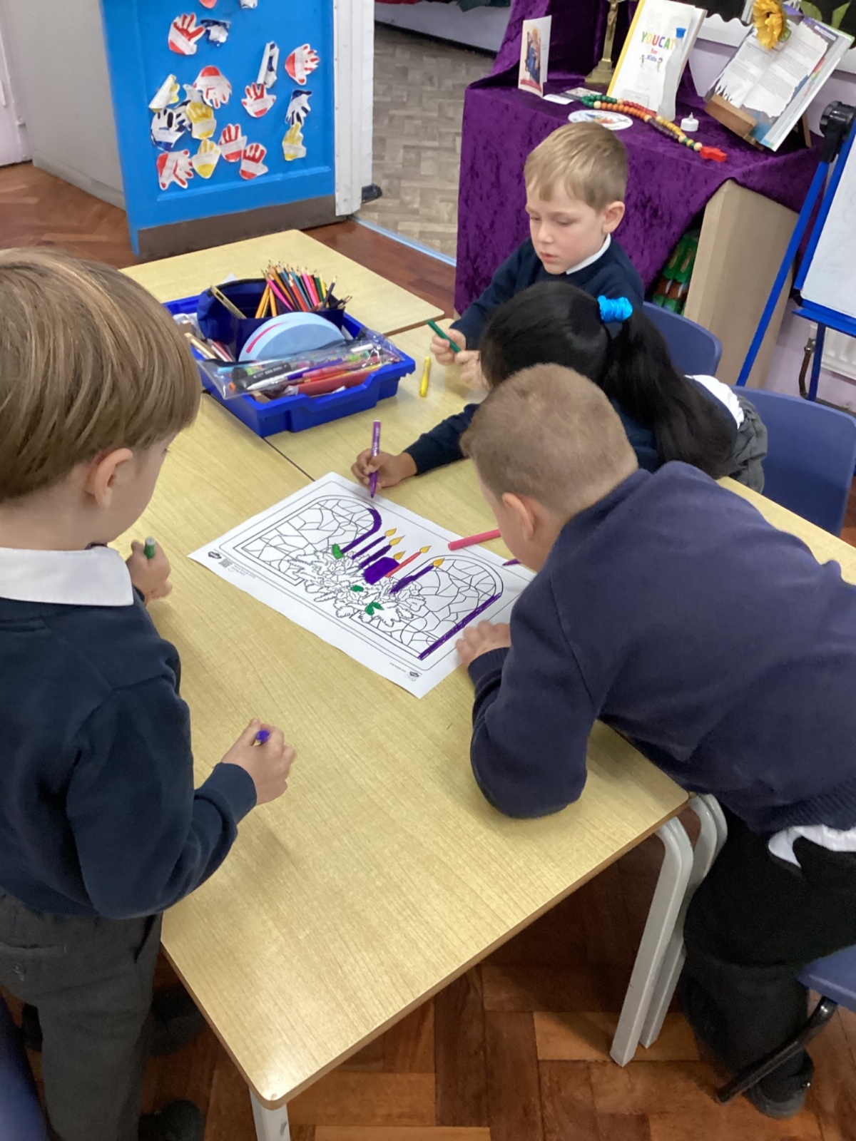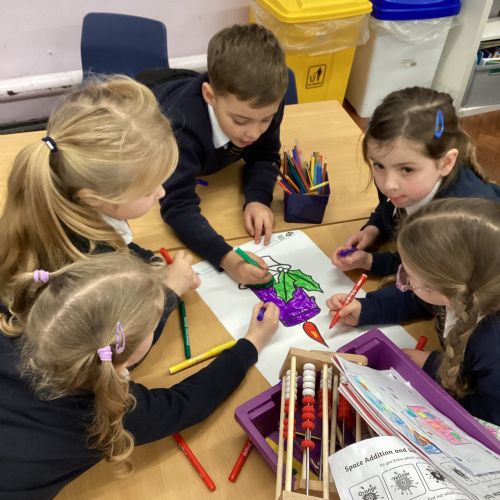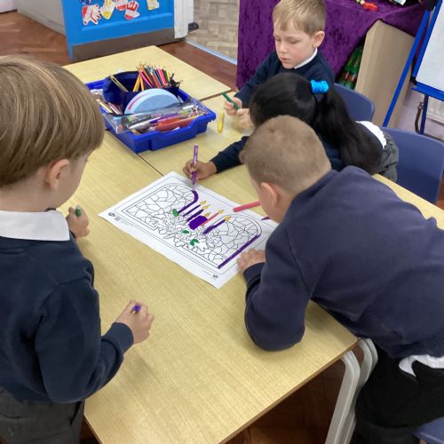 Today we celebrated the start of Advent. We explored each candle on the Advent wreath and created a class display. We wrote prayers asking God to help us be hopeful, joyful, loving and peaceful in the season of Advent. We also created our Christmas cards which we will share with our families and local community.