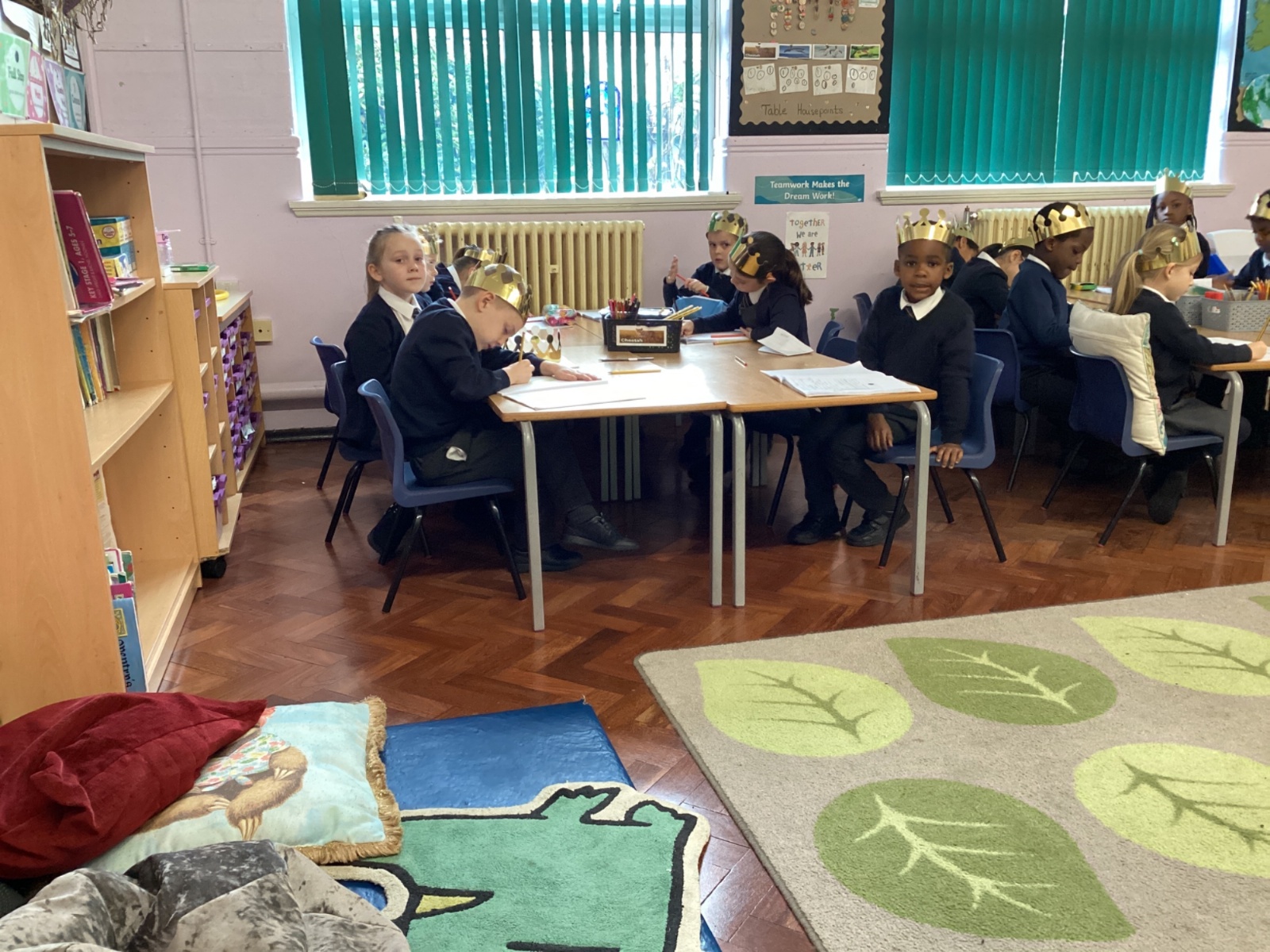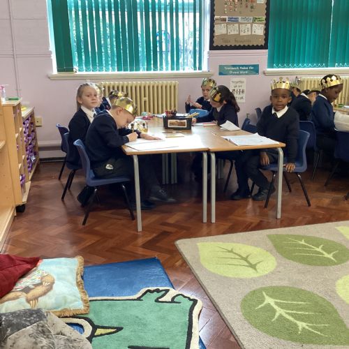 We wore golden crowns to assembly.