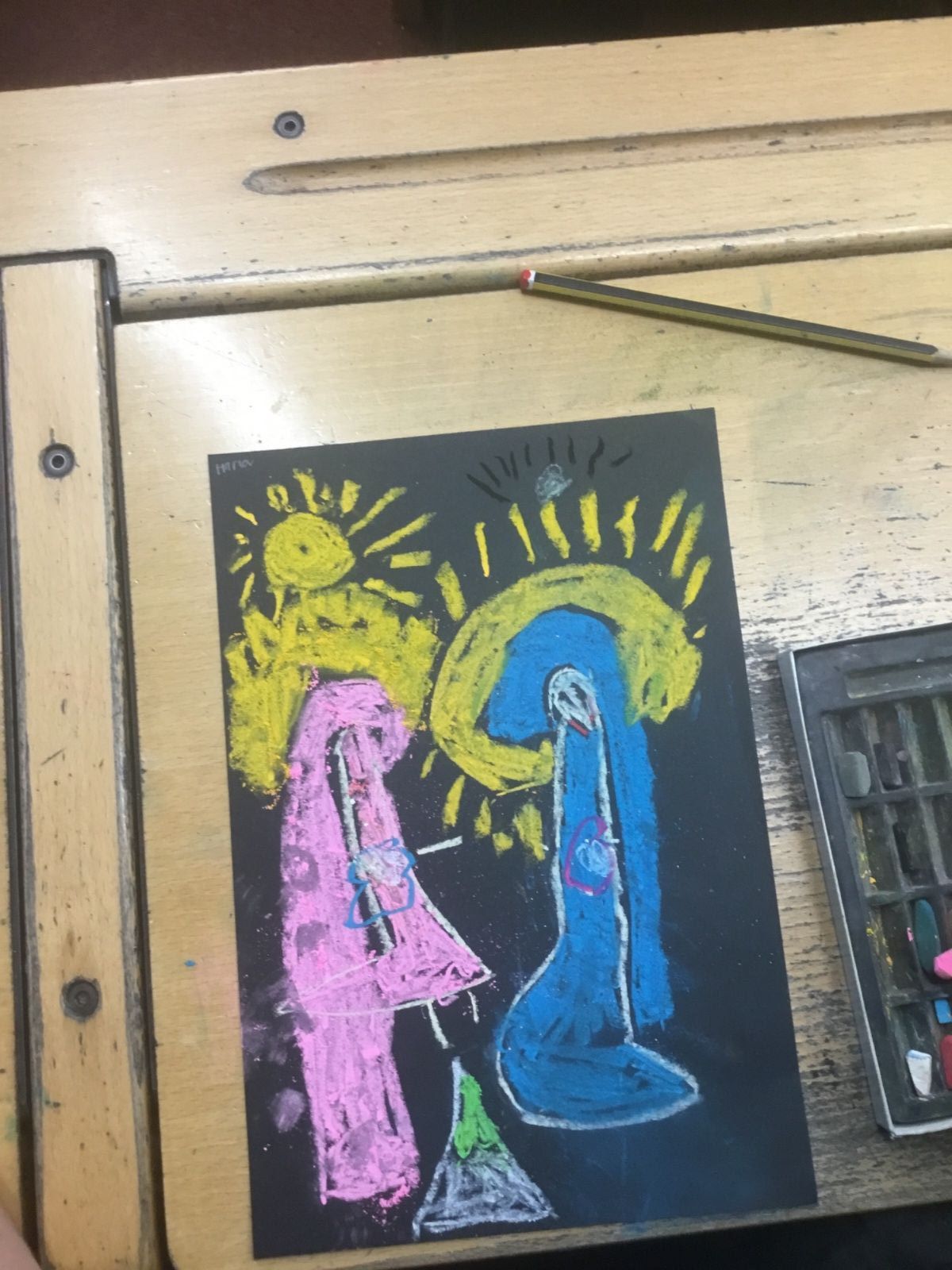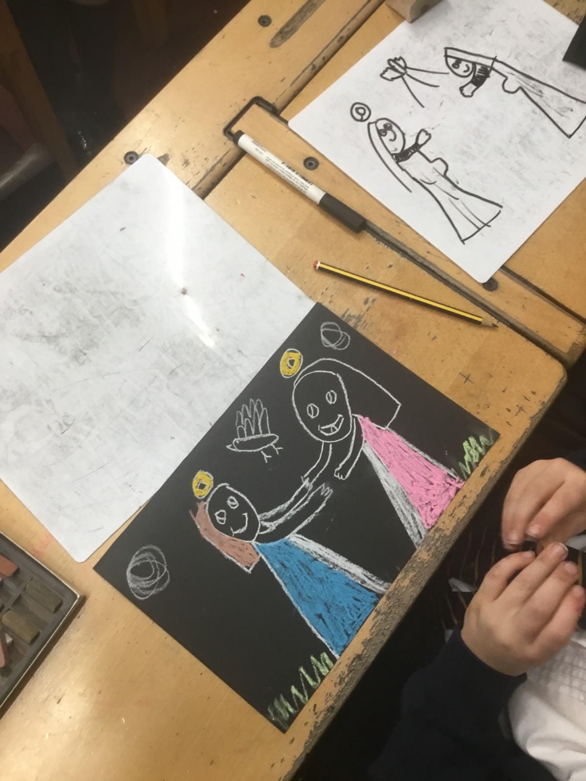 We explored religious artwork linked to the Visitation. We then enjoyed creating our own piece of art to represent this historic moment.