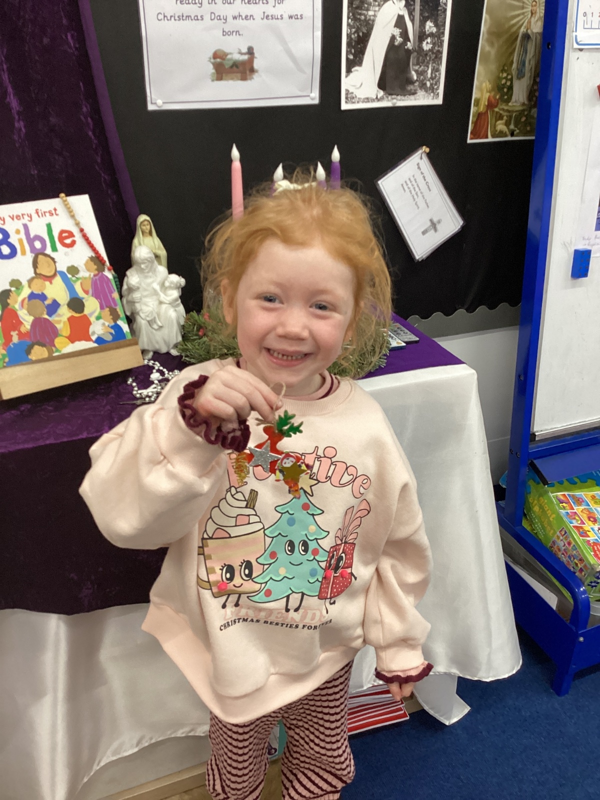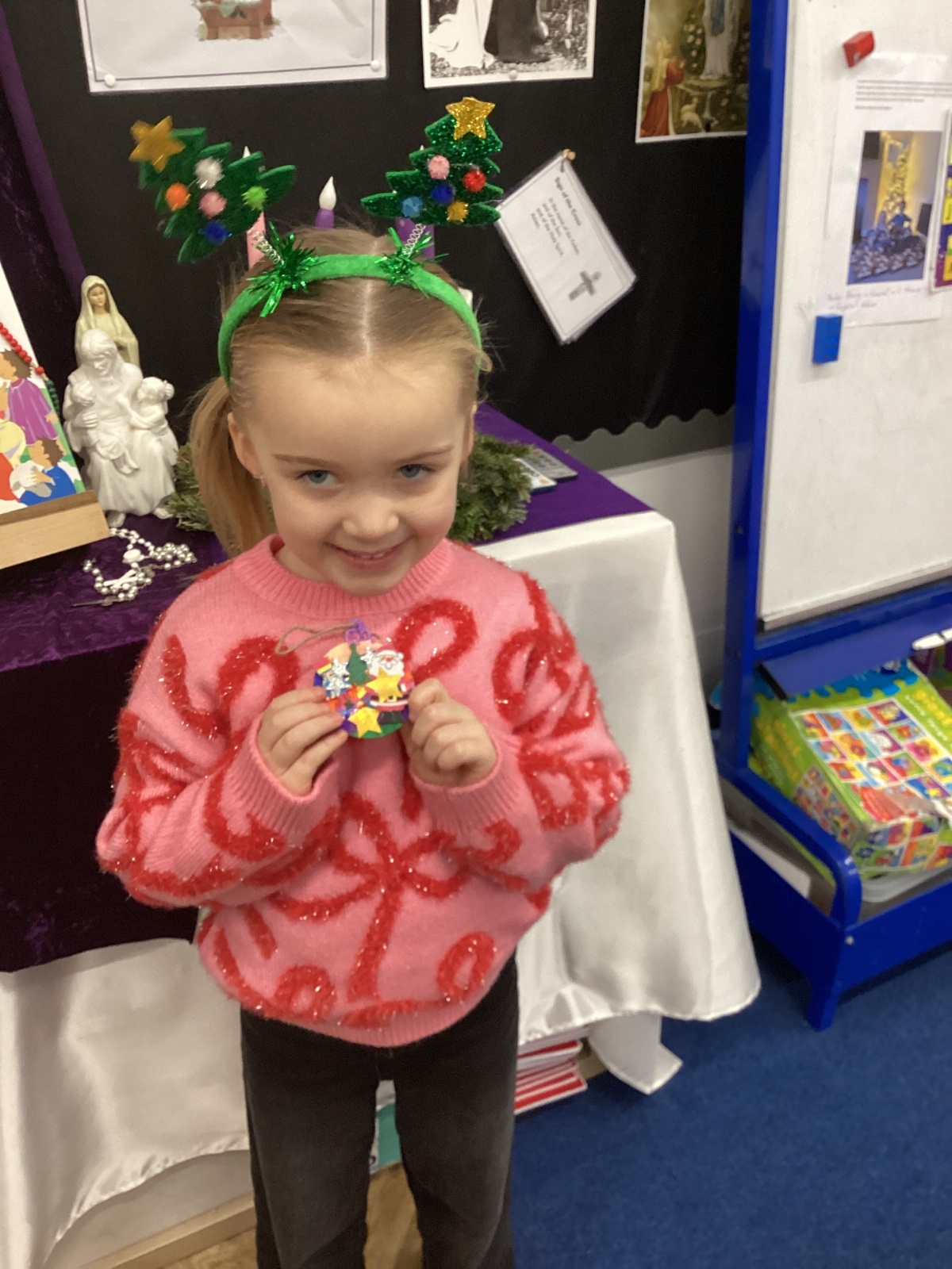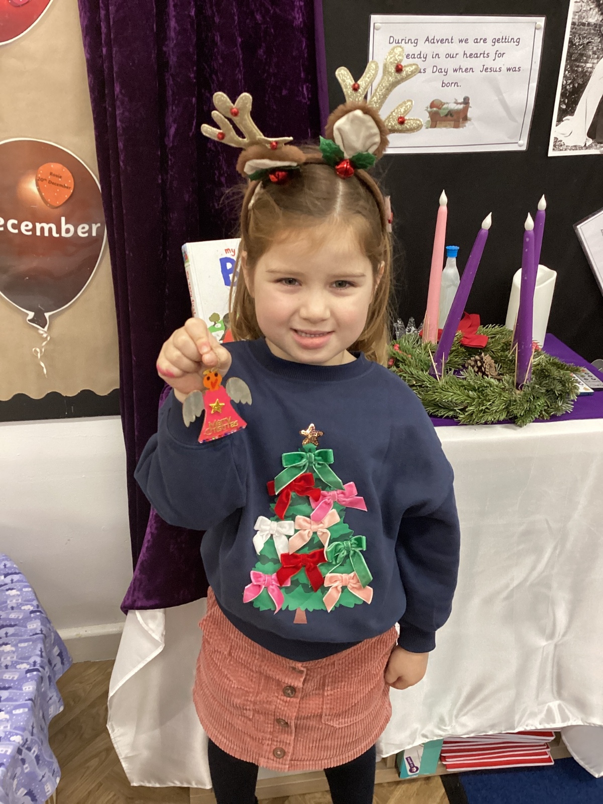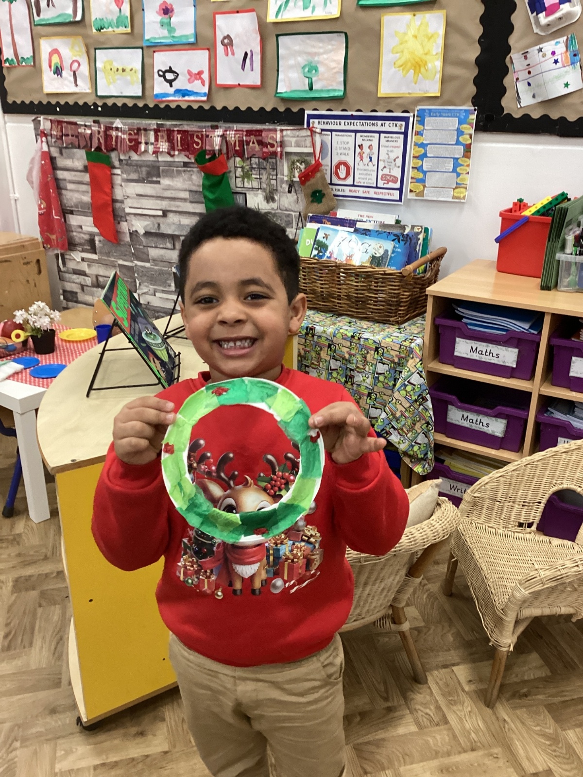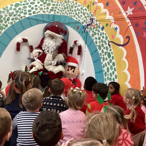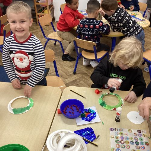 We had lots of fun on our Festive Fun Day. We did lots of Christmas crafts including making paper plate wreaths and making Christmas tree decorations. We had a special story time with Santa, watched a Christmas movie and had a festive disco too. We are looking forward to the Christmas Fair after school. What a fun day!