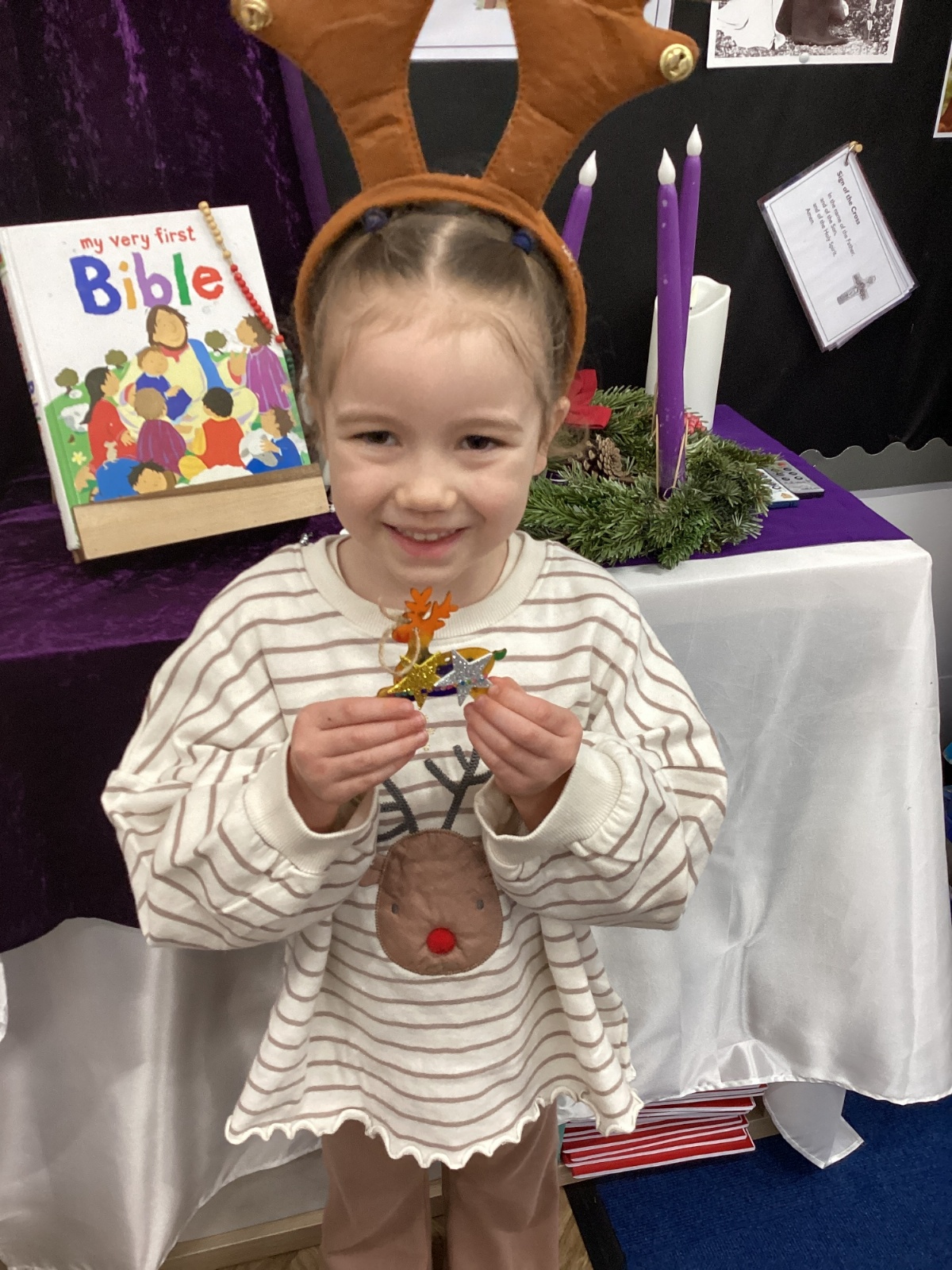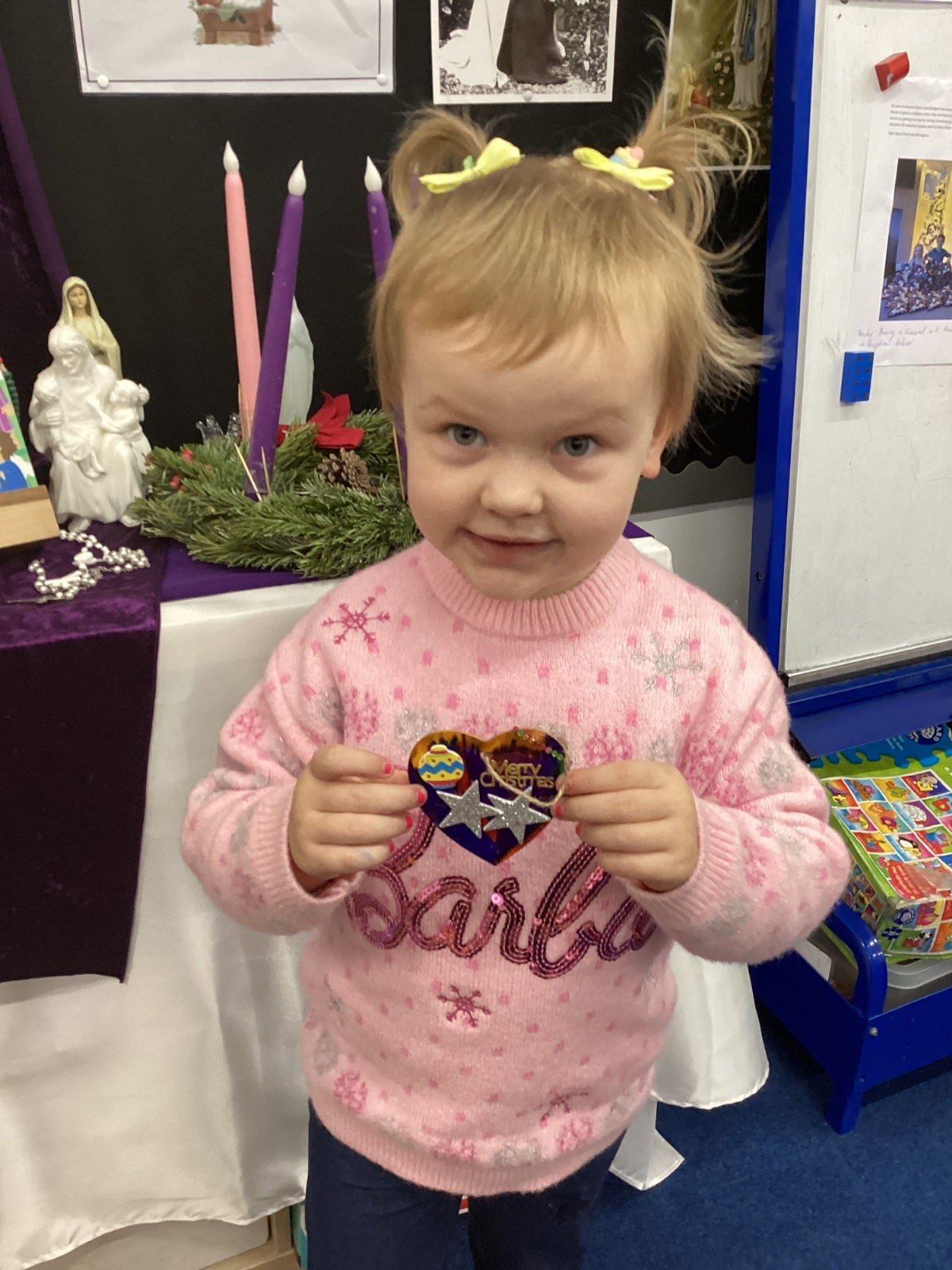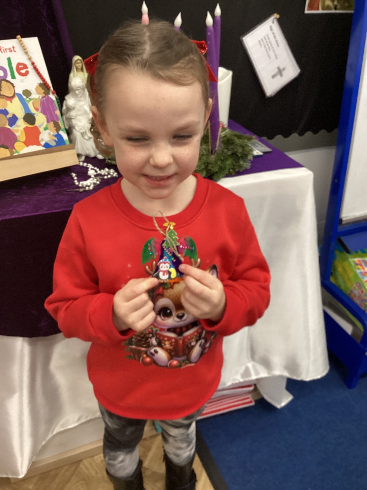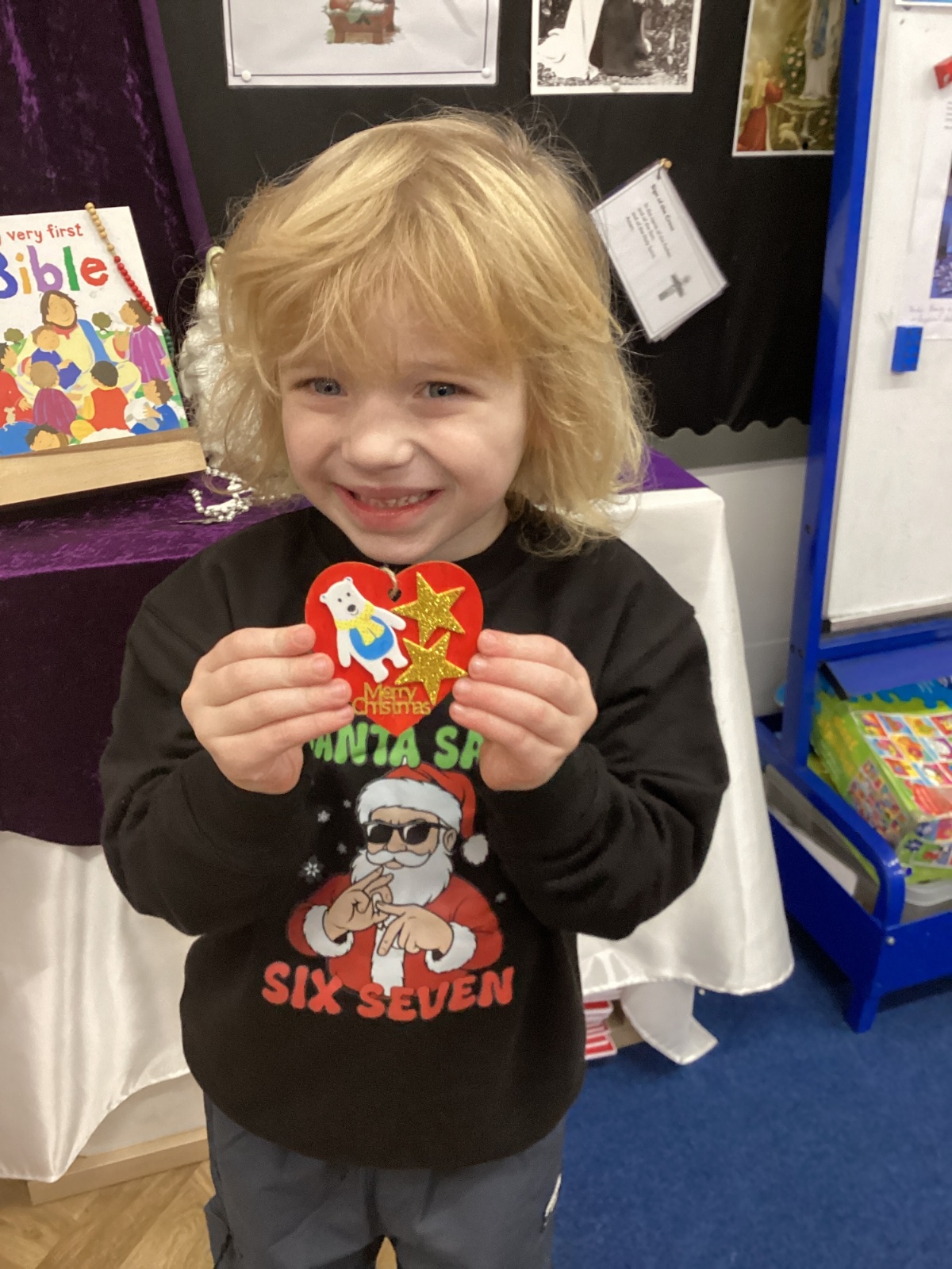 We had lots of fun on our Festive Fun Day. We did lots of Christmas crafts including making paper plate wreaths and making Christmas tree decorations. We had a special story time with Santa, watched a Christmas movie and had a festive disco too. We are looking forward to the Christmas Fair after school. What a fun day!