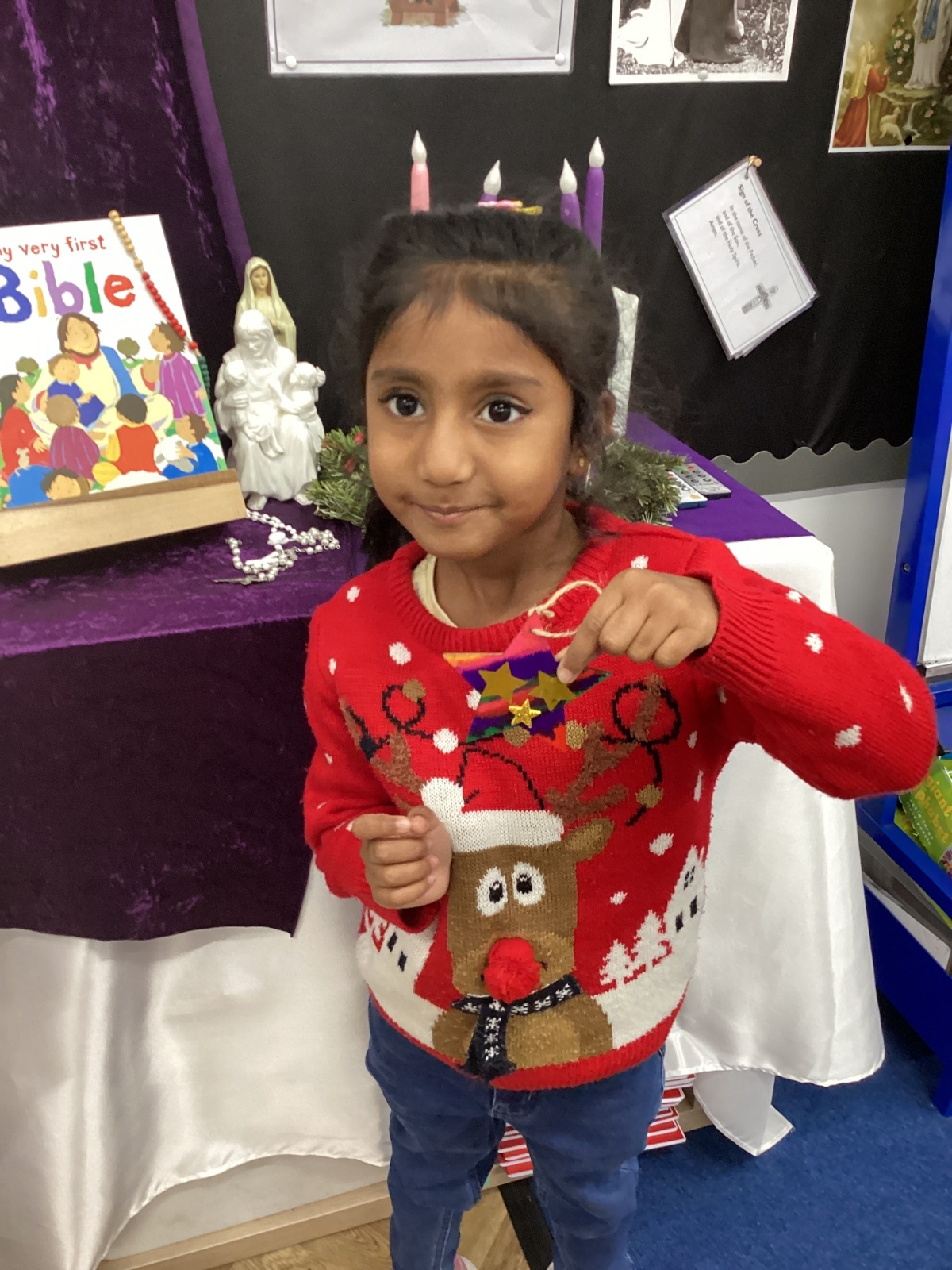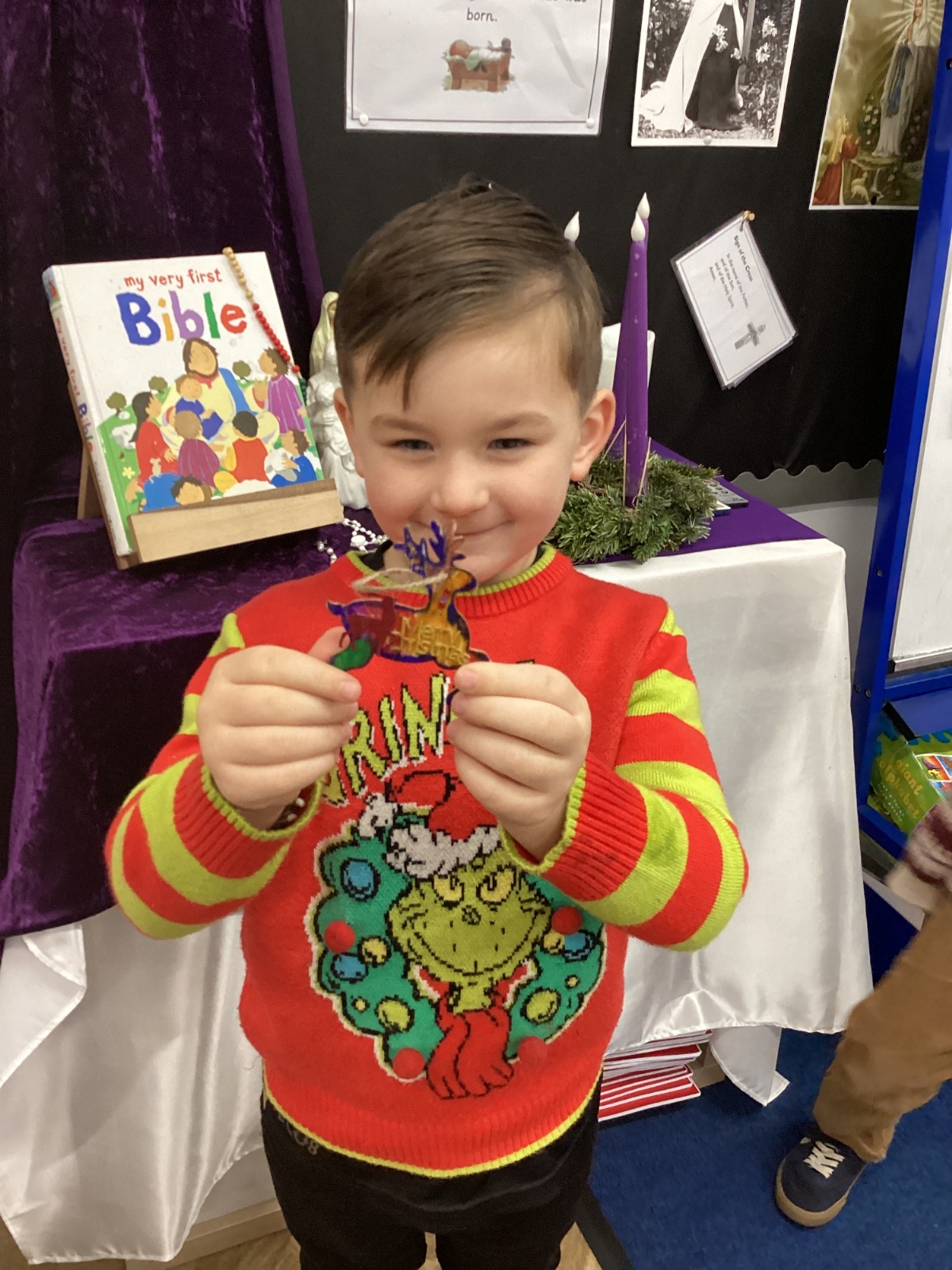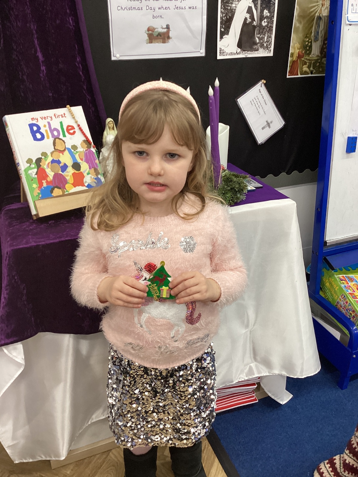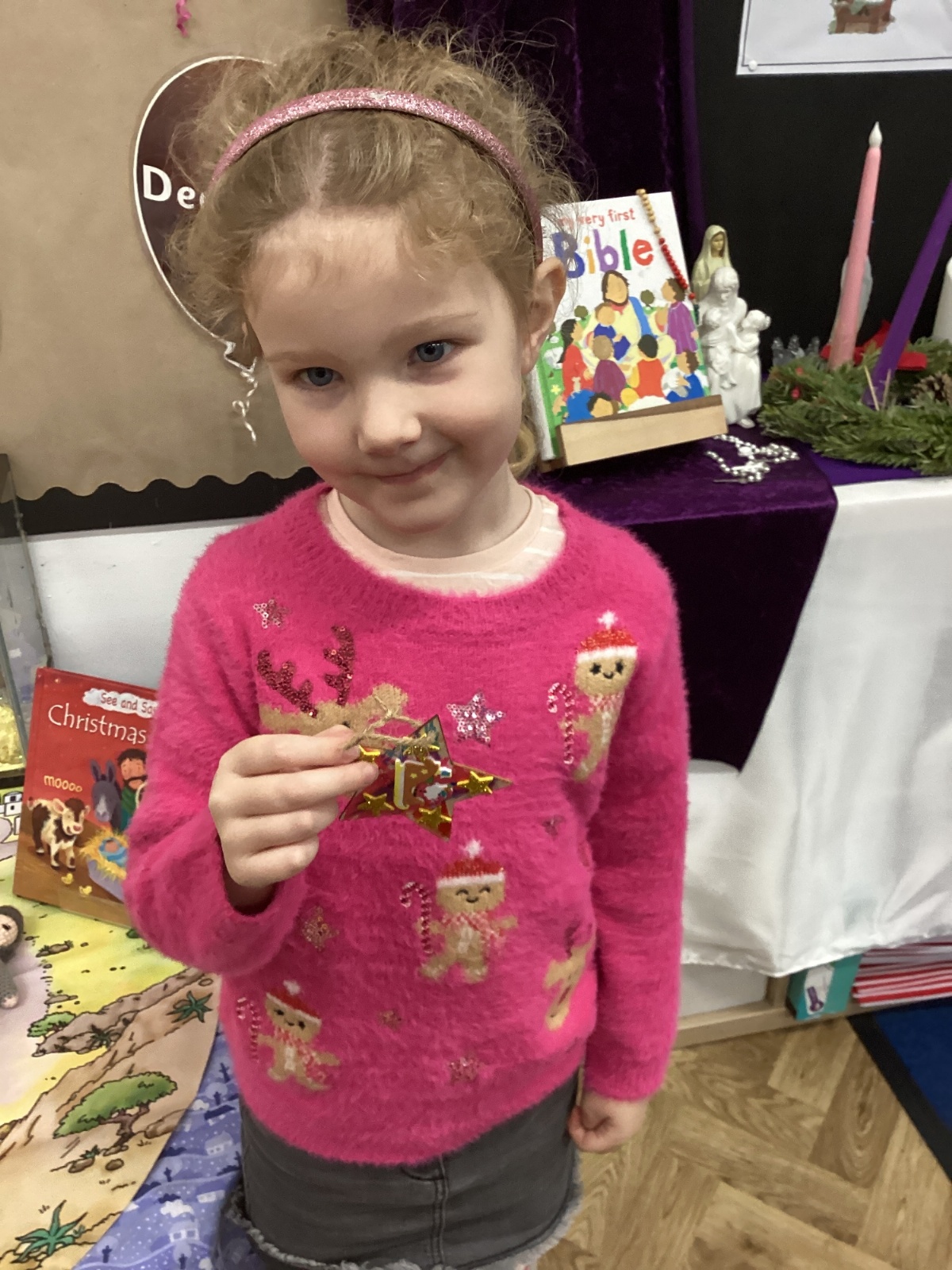 We had lots of fun on our Festive Fun Day. We did lots of Christmas crafts including making paper plate wreaths and making Christmas tree decorations. We had a special story time with Santa, watched a Christmas movie and had a festive disco too. We are looking forward to the Christmas Fair after school. What a fun day!