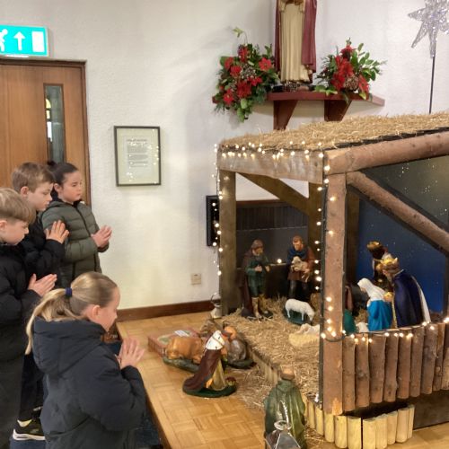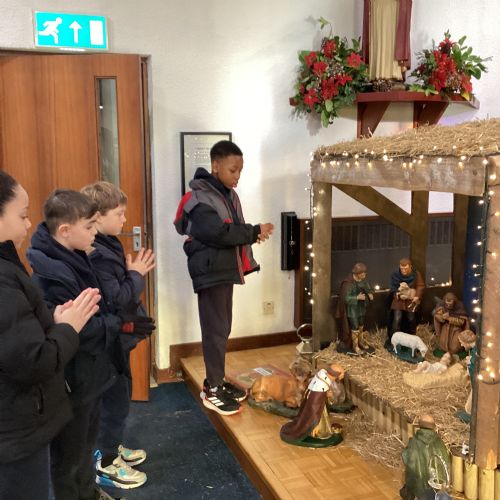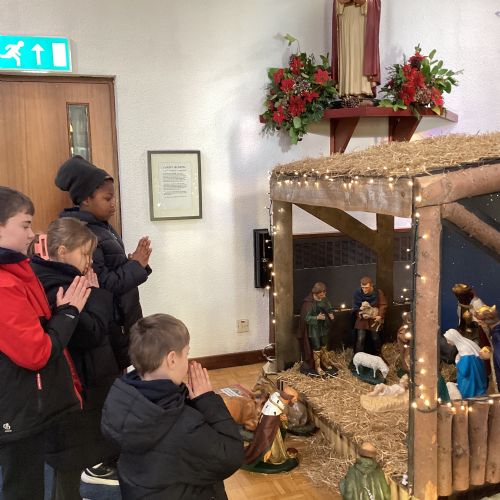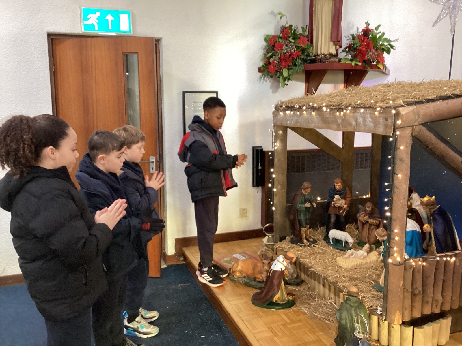 We all went to Church this morning to celebrate the Feast of the Epiphany.  We took the opportunity to say a prayer at the crib to Baby Jesus.
