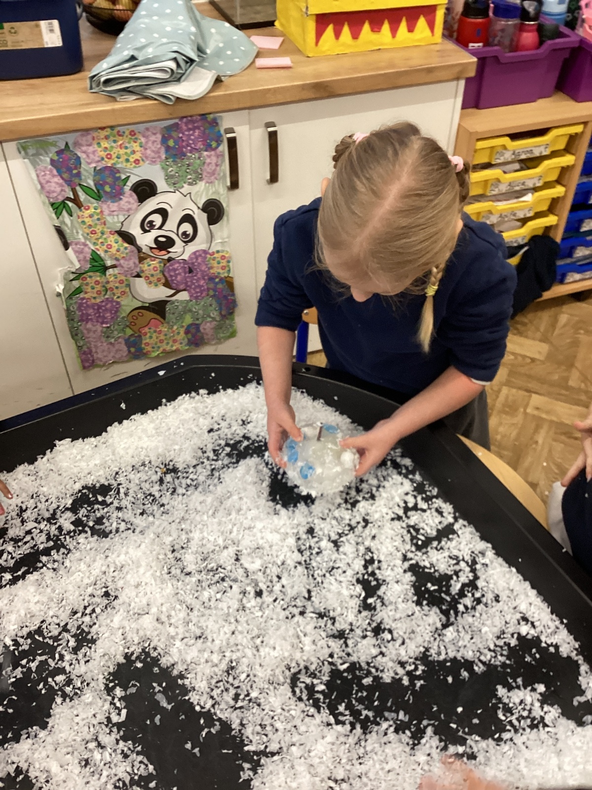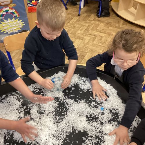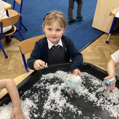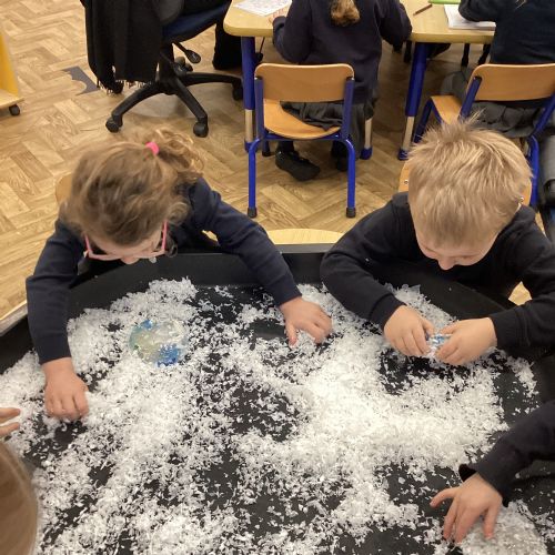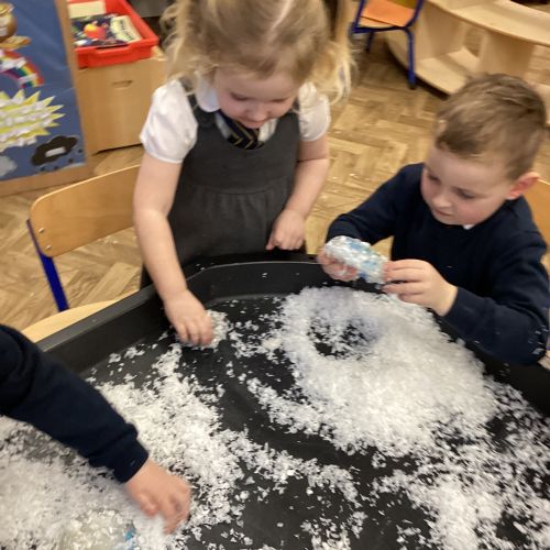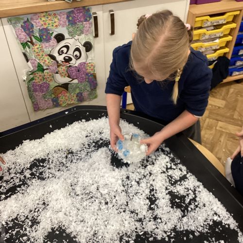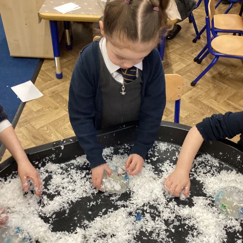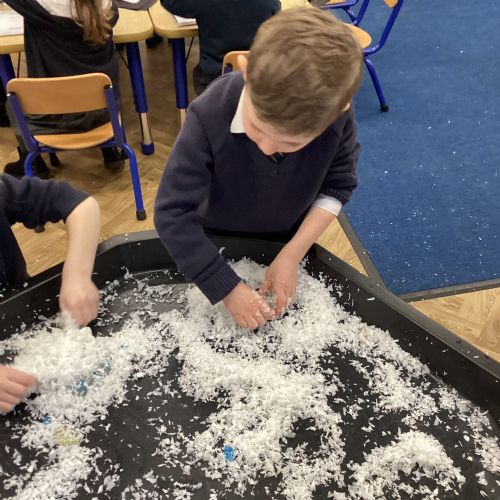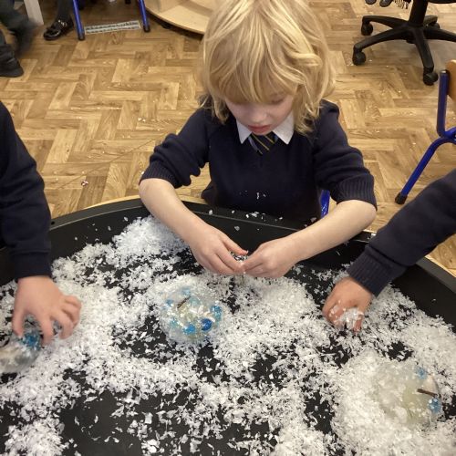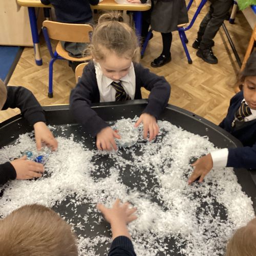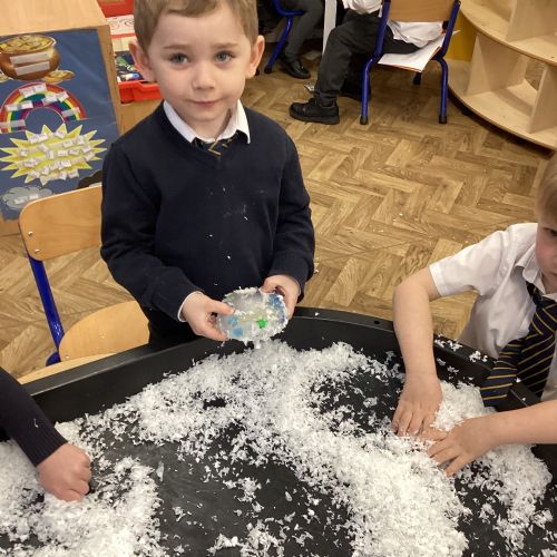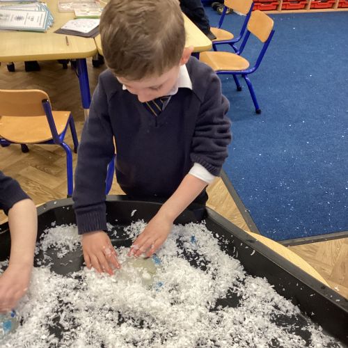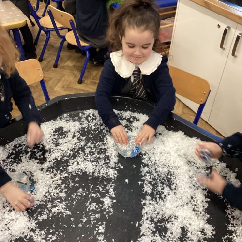 We have been learning about the season of winter. We spotted signs of winter and learnt how some animals hibernate and others migrate. As scientists we explored ice and investigated hwo we can free the animals and objects that have been frozen in ice.