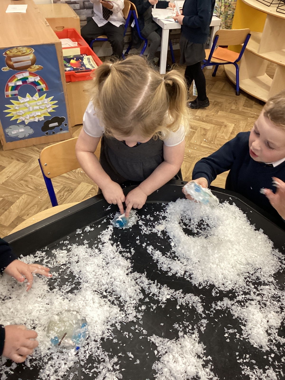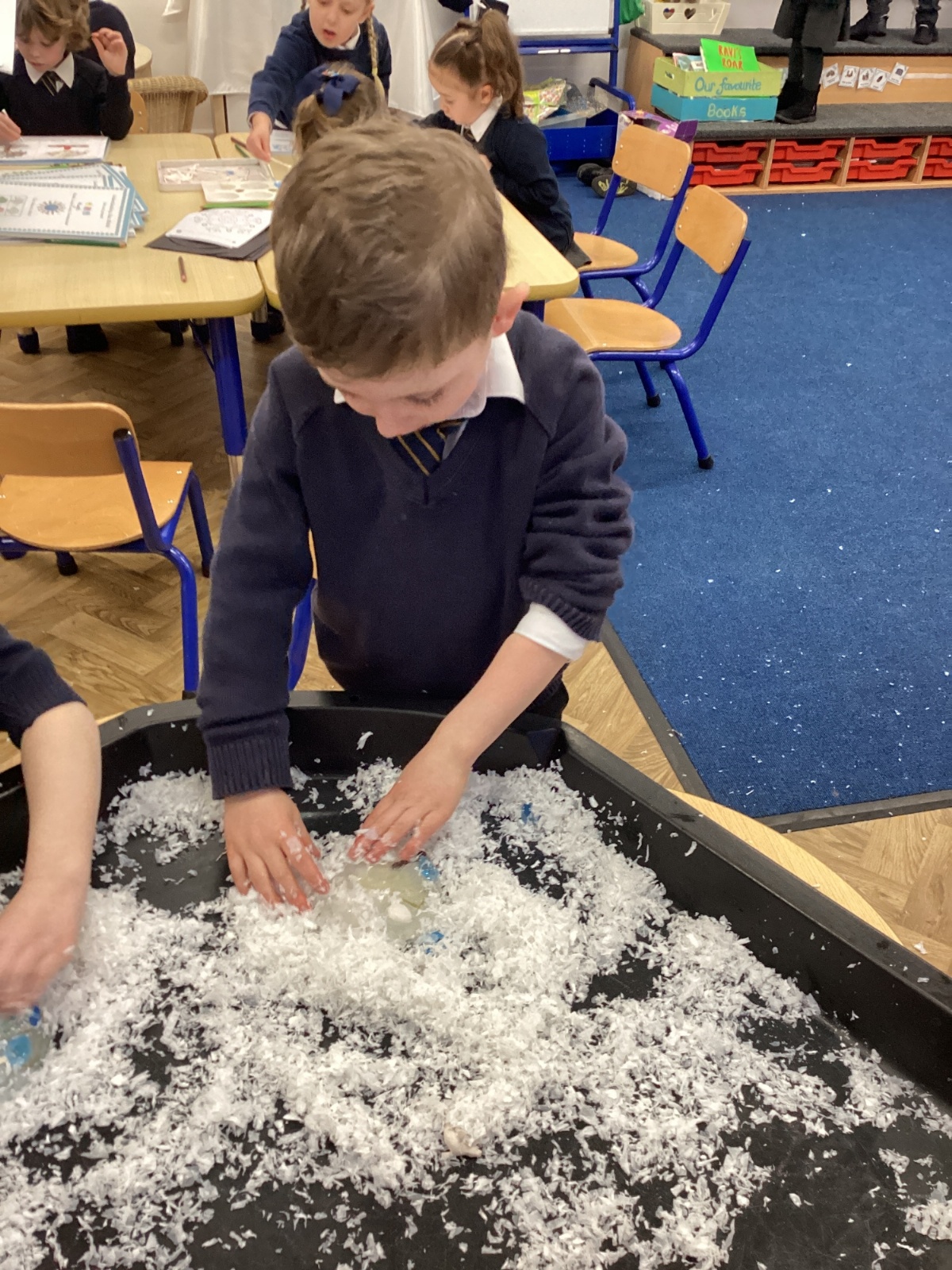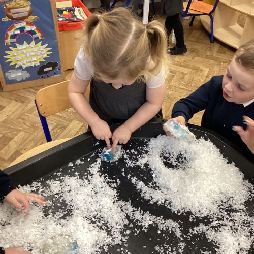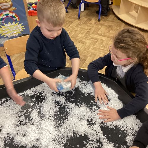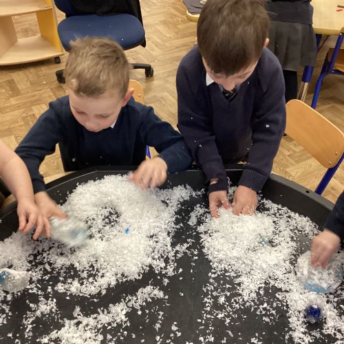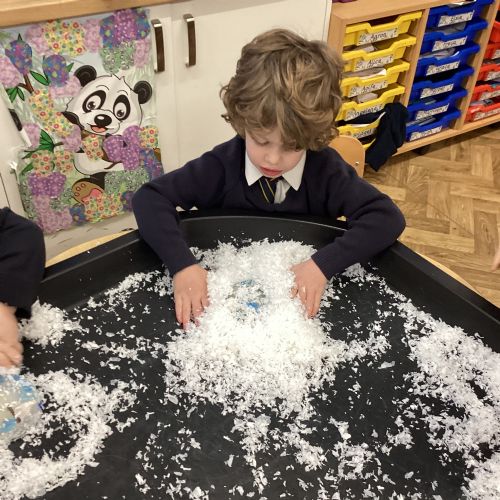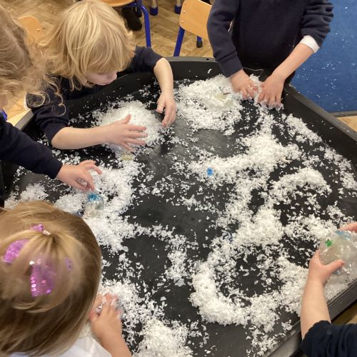 We have been learning about the season of winter. We spotted signs of winter and learnt how some animals hibernate and others migrate. As scientists we explored ice and investigated hwo we can free the animals and objects that have been frozen in ice.