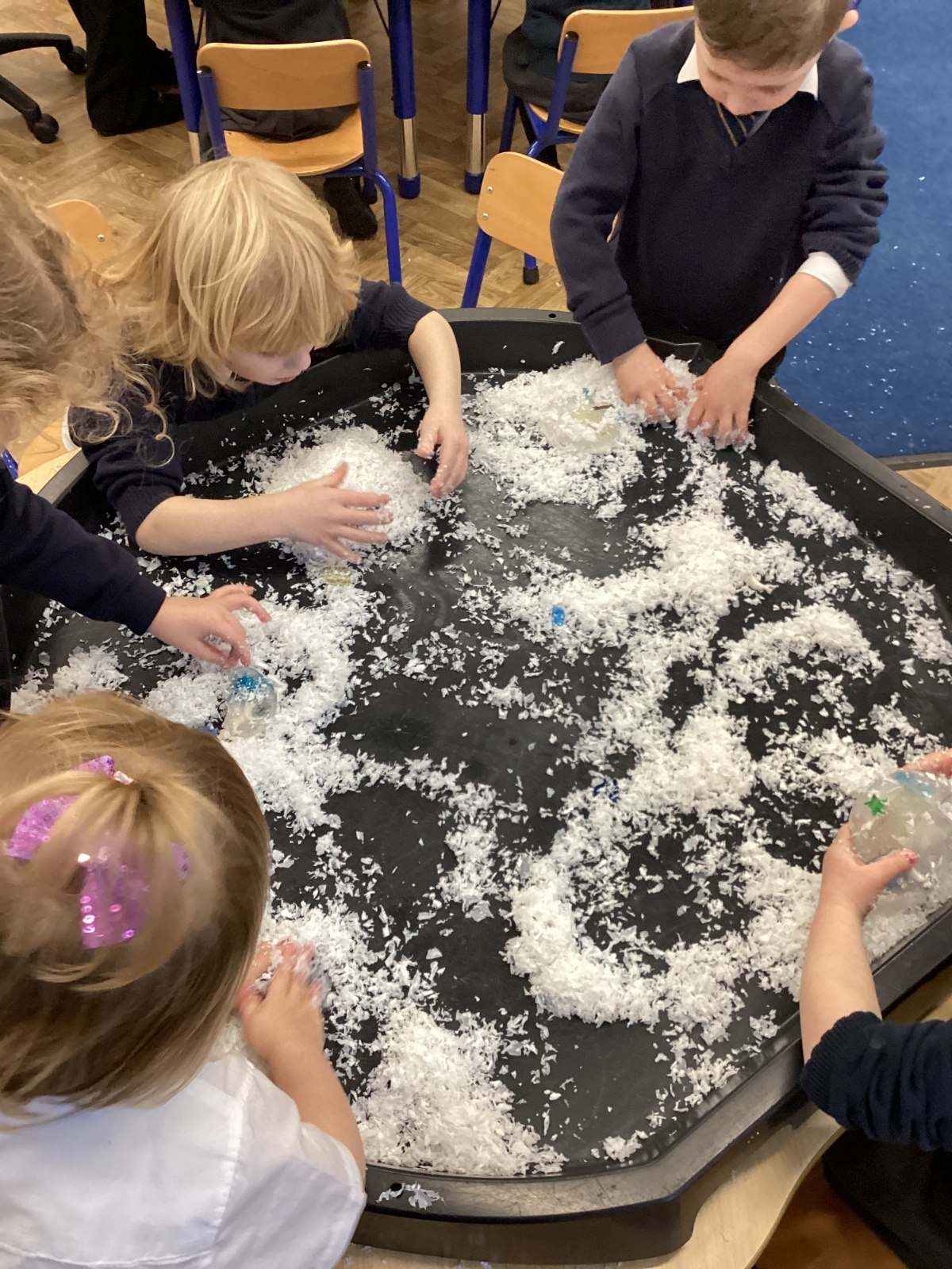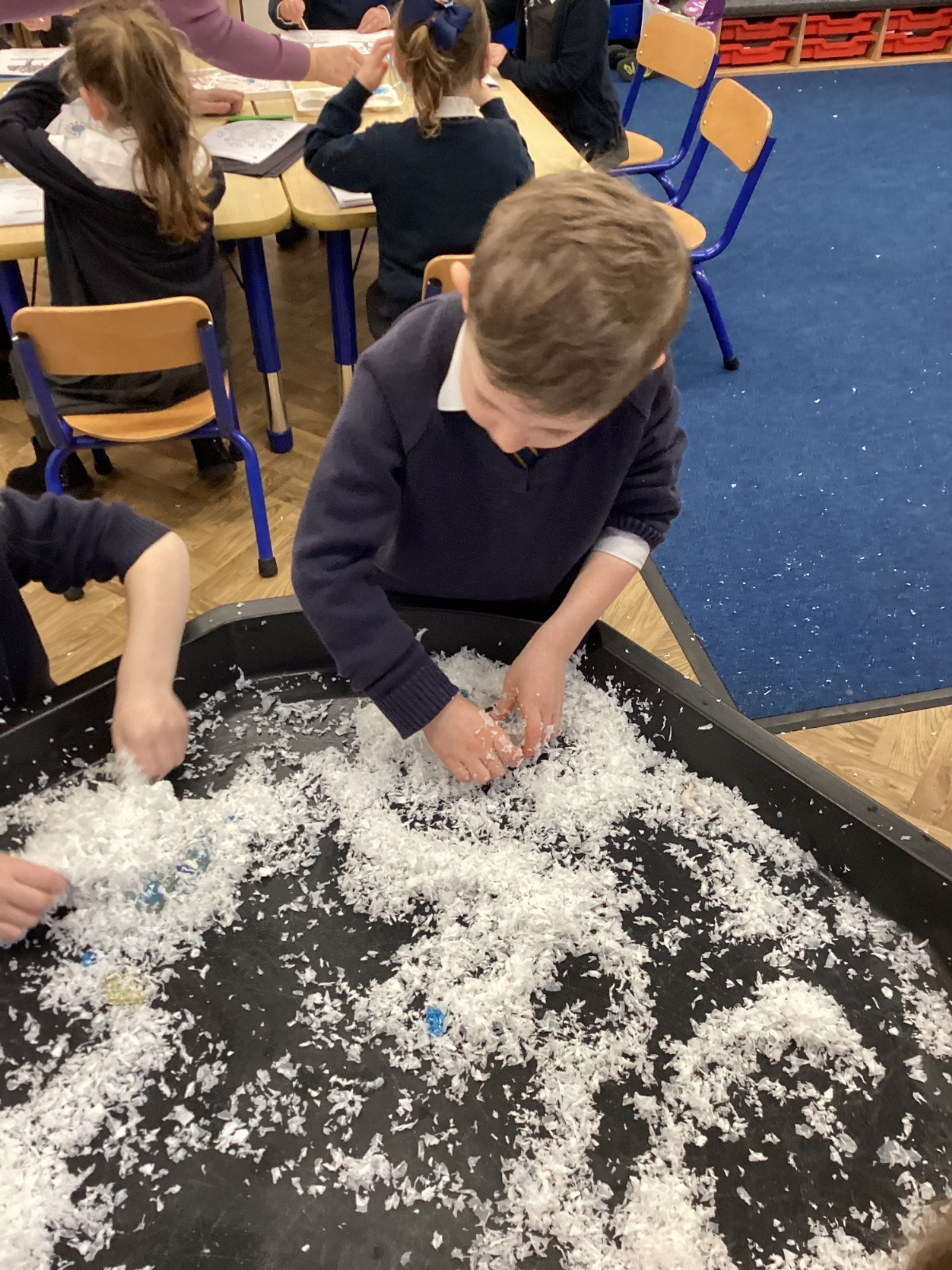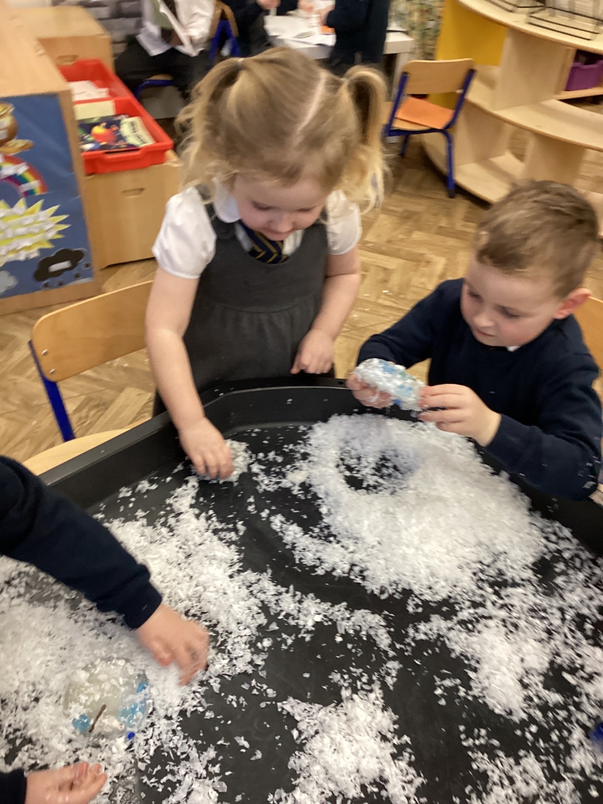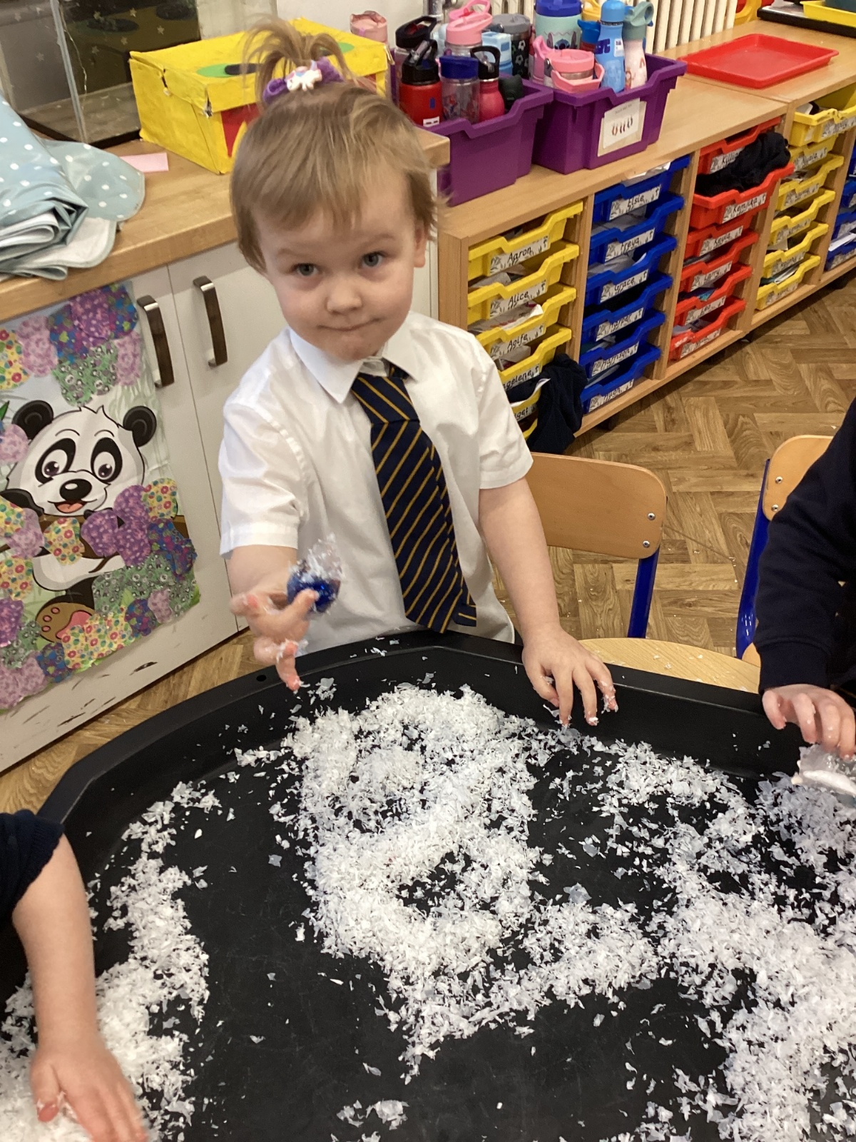 We have been learning about the season of winter. We spotted signs of winter and learnt how some animals hibernate and others migrate. As scientists we explored ice and investigated hwo we can free the animals and objects that have been frozen in ice.