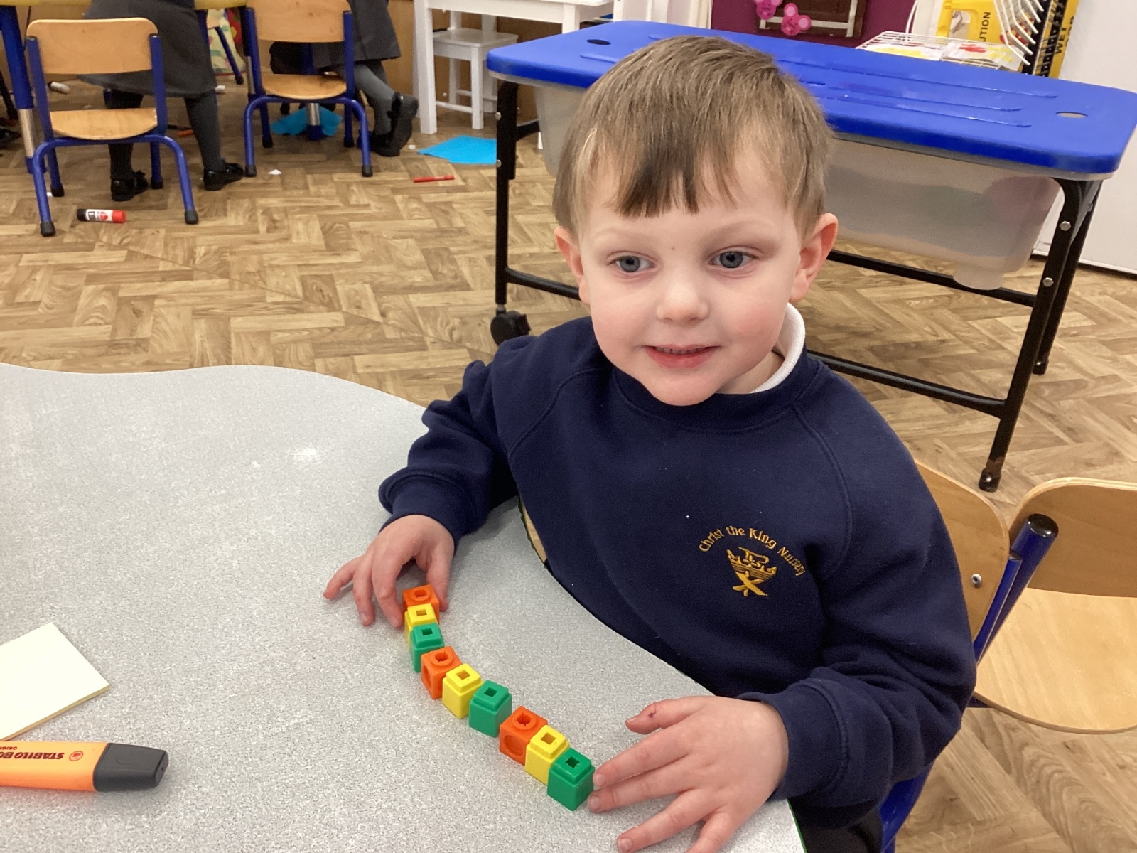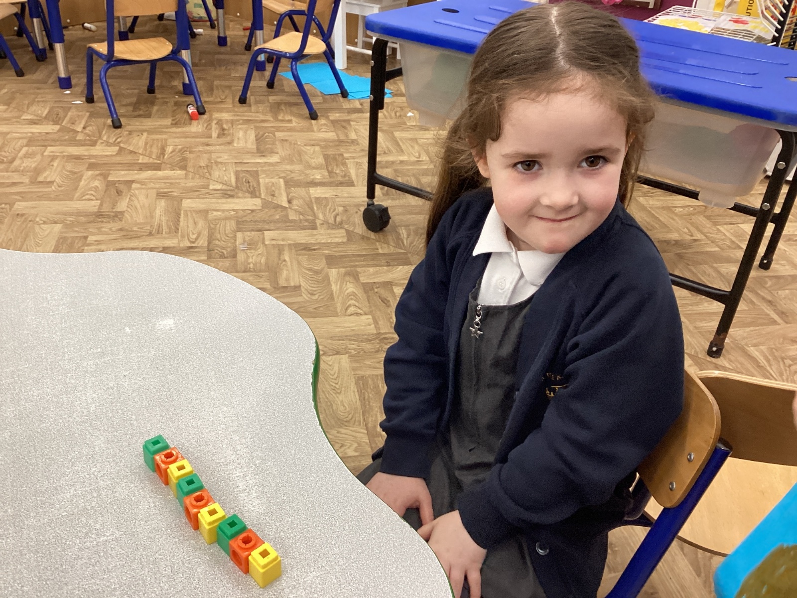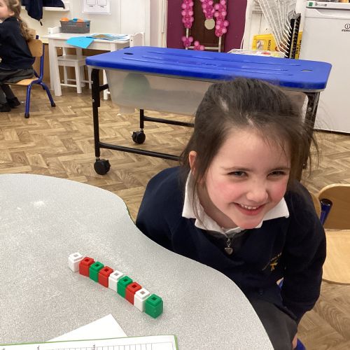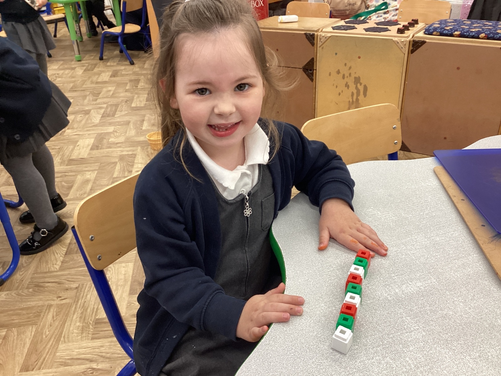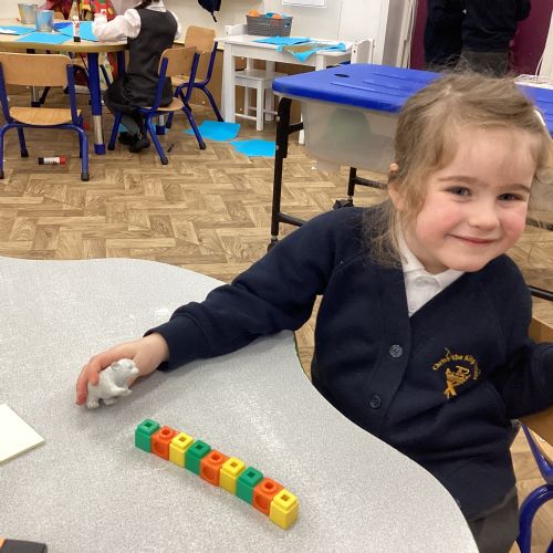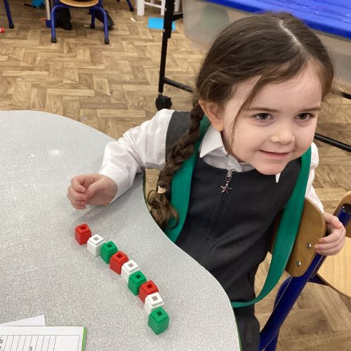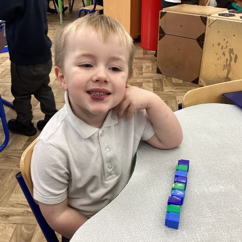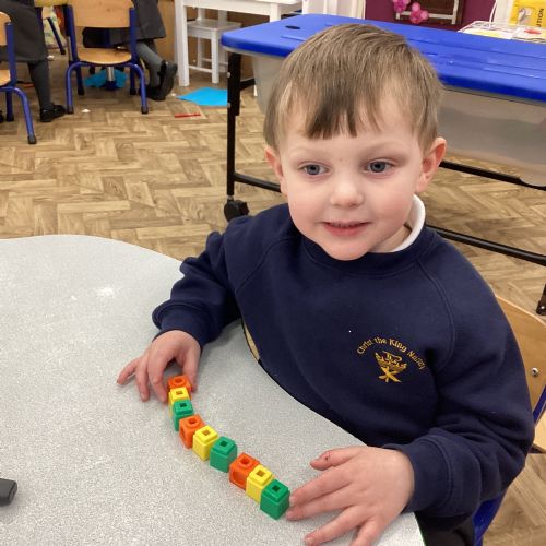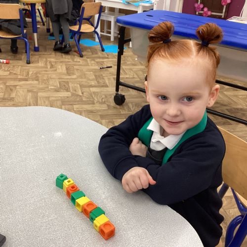 We worked hard to copy and create our own ABC (3 colour) patterns using cubes.