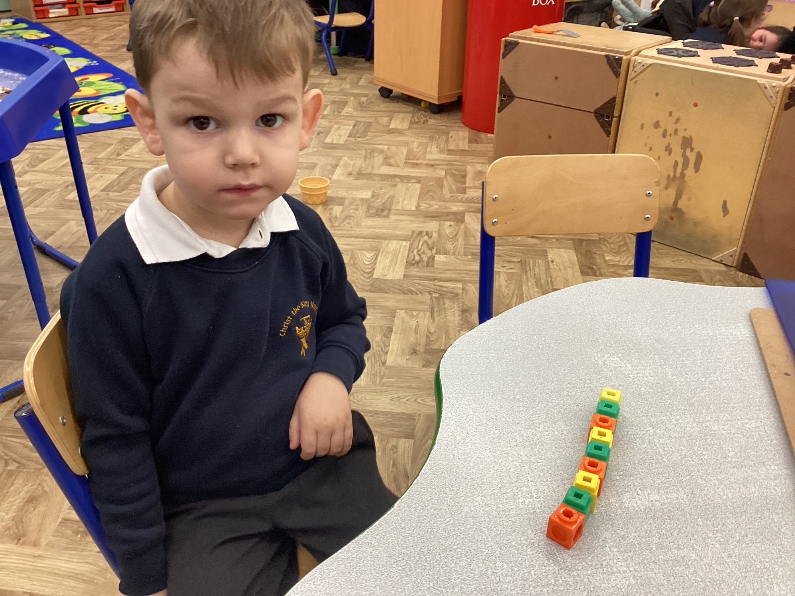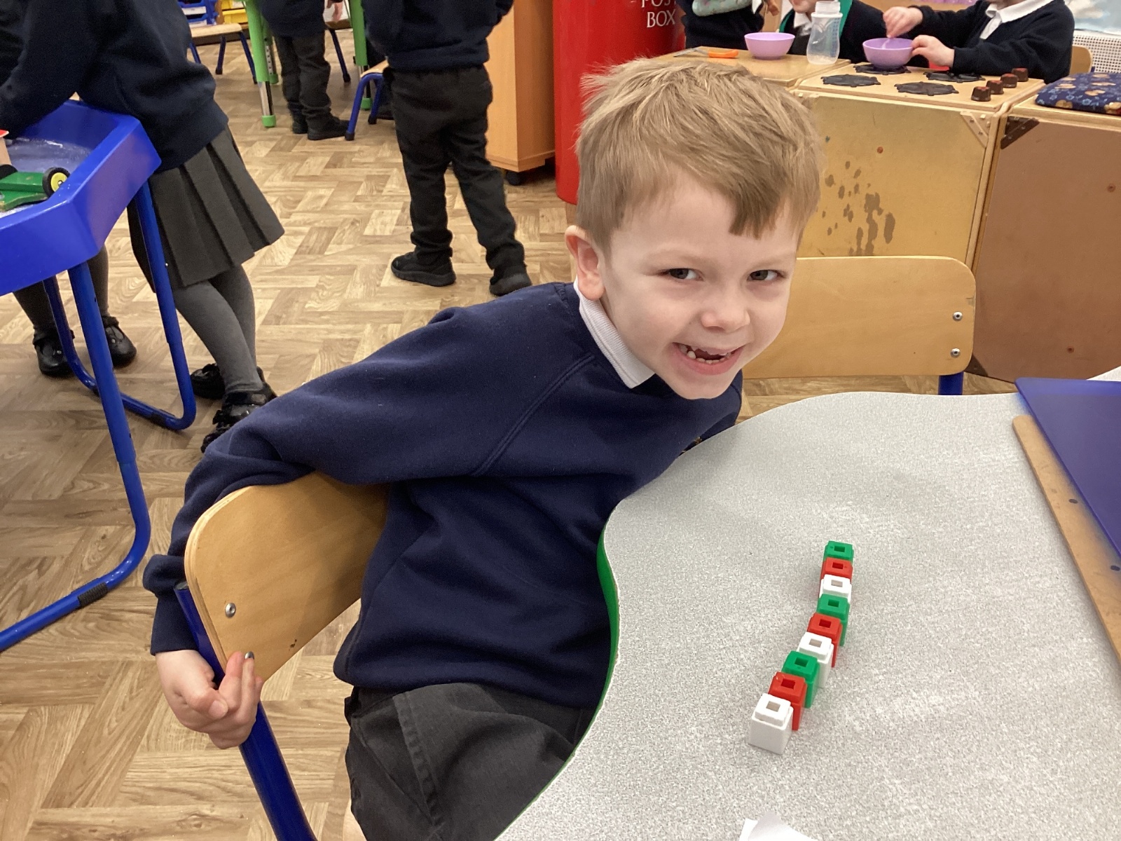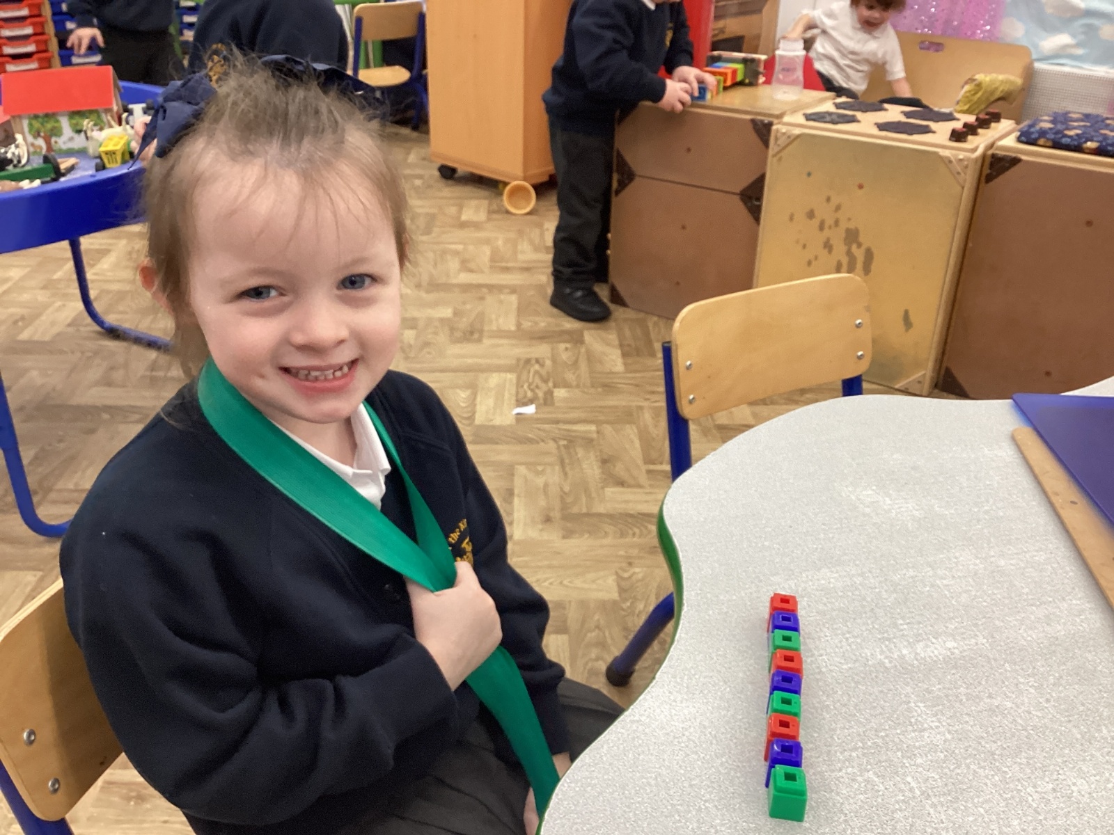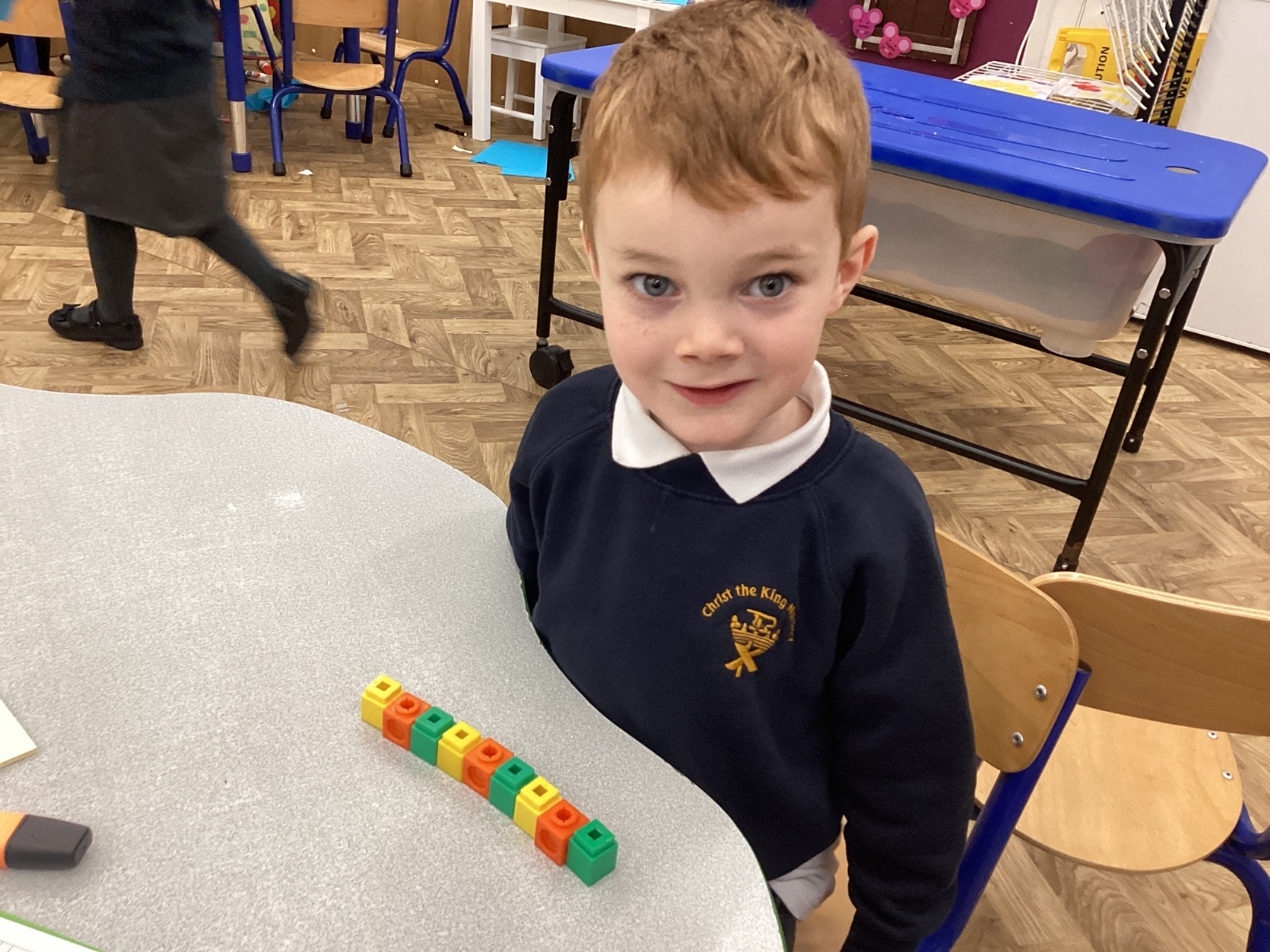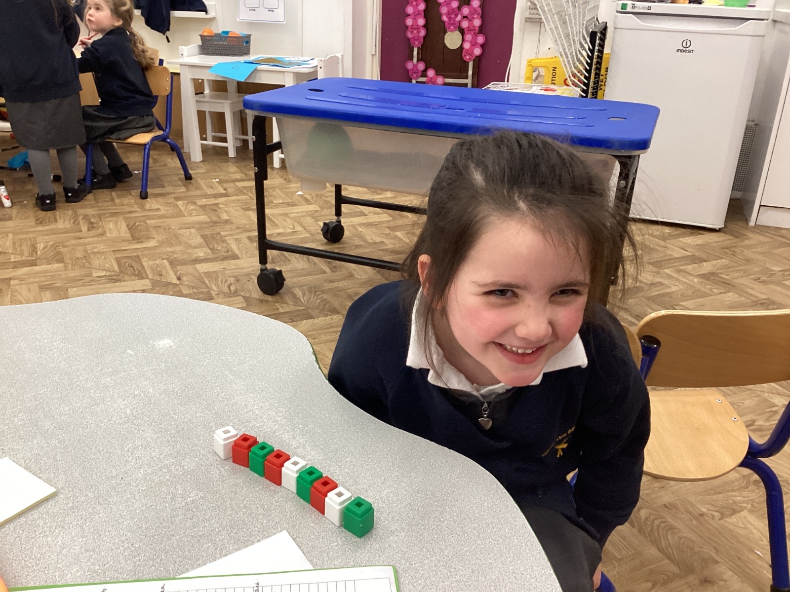 We worked hard to copy and create our own ABC (3 colour) patterns using cubes.