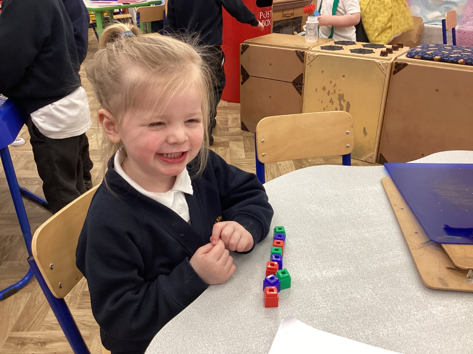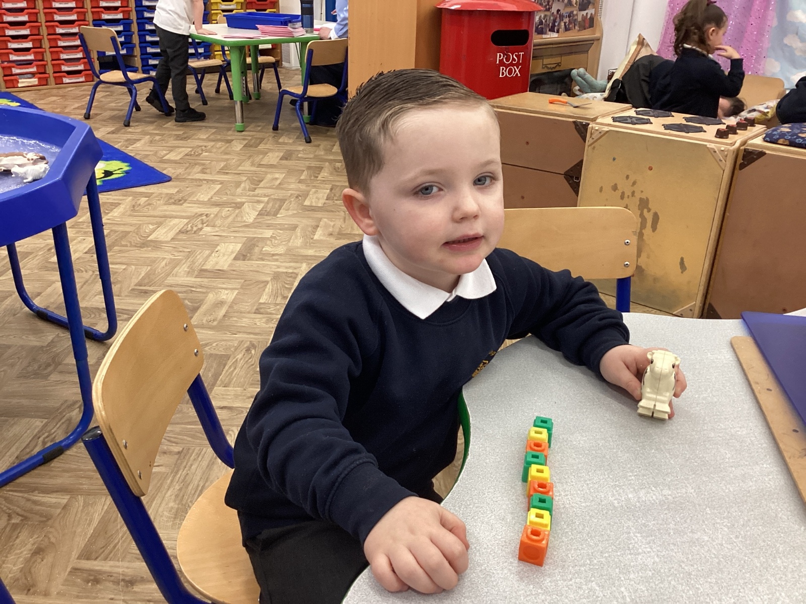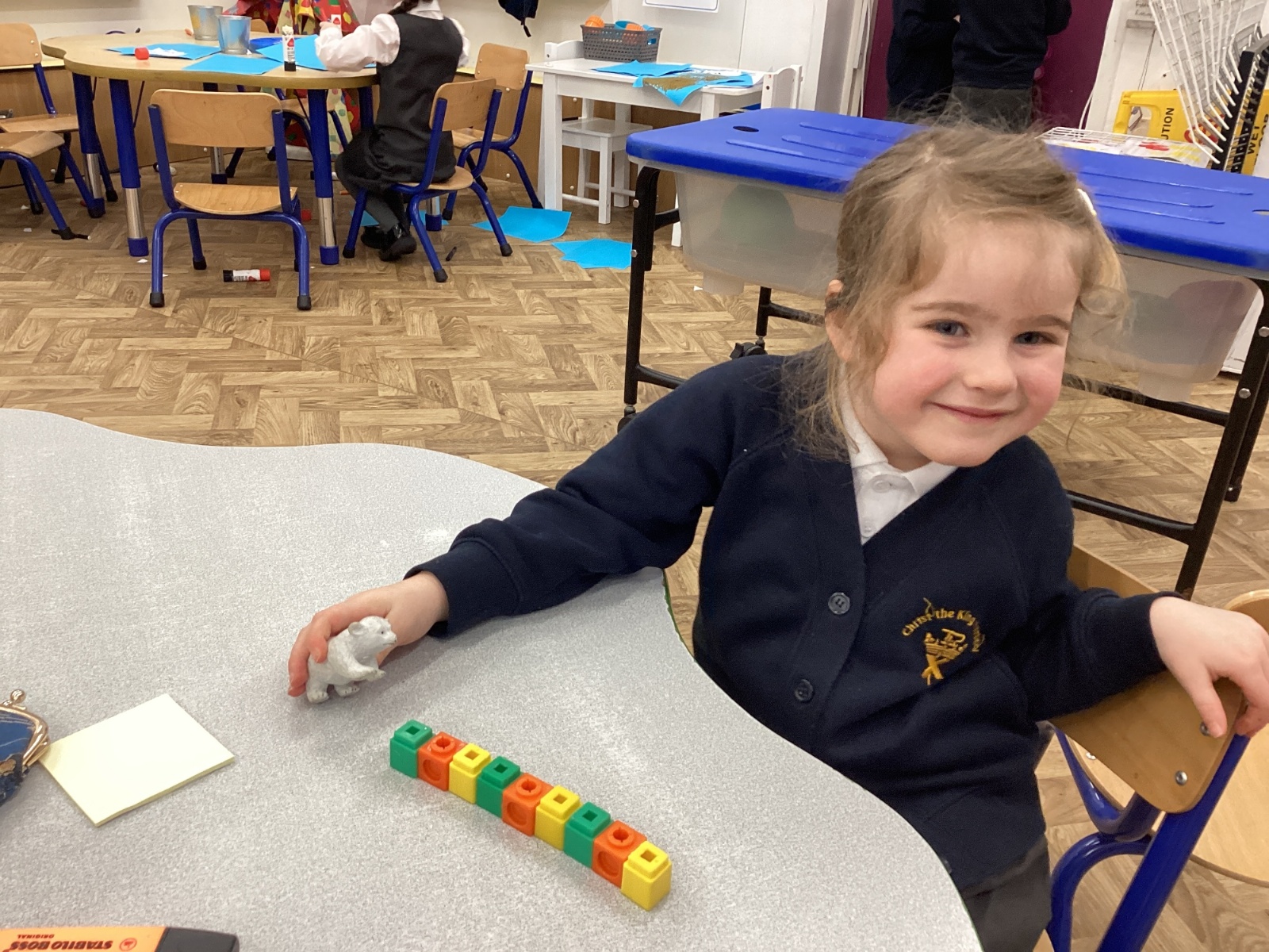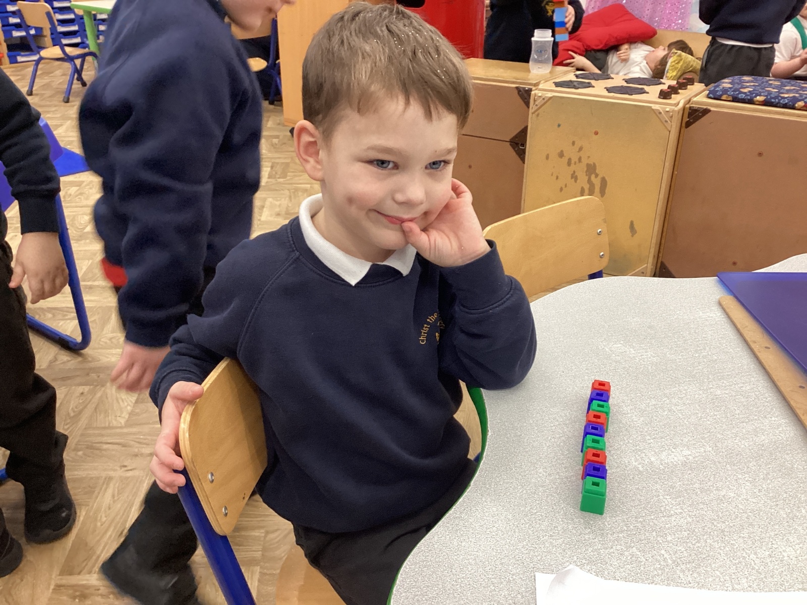 We worked hard to copy and create our own ABC (3 colour) patterns using cubes.
