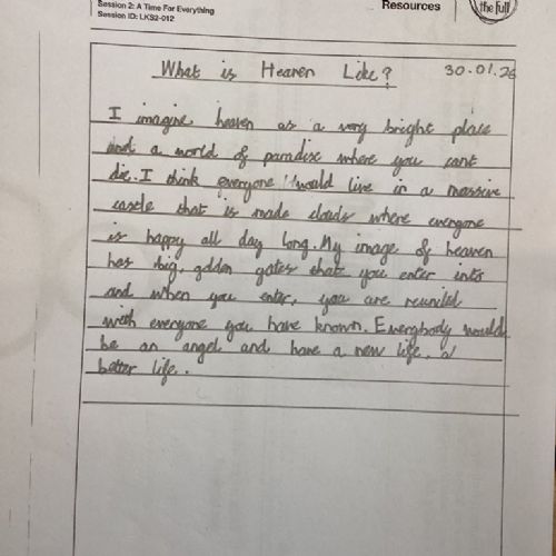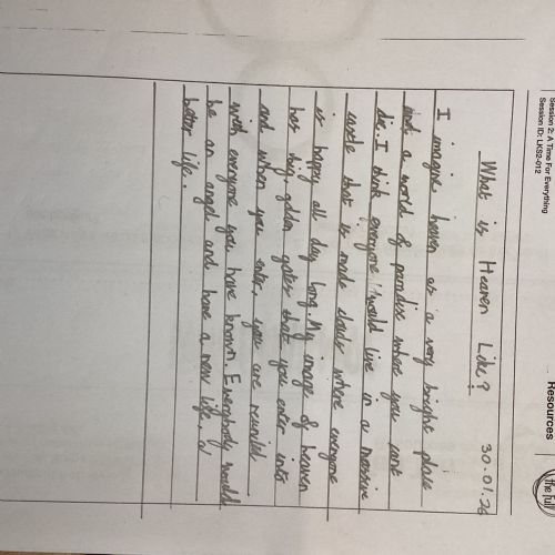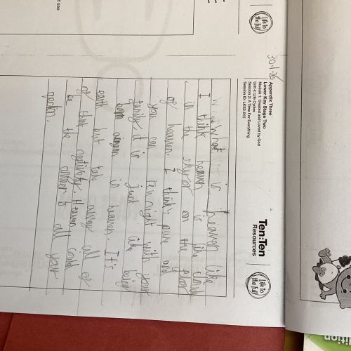Today, children shared what their perspective of Heaven would look like for them. They shared some beautiful ideas!