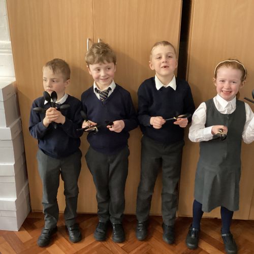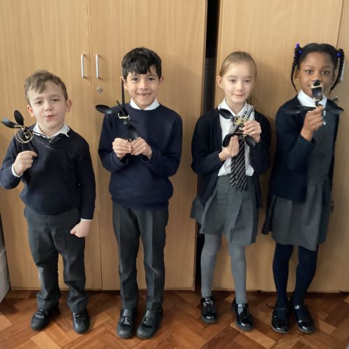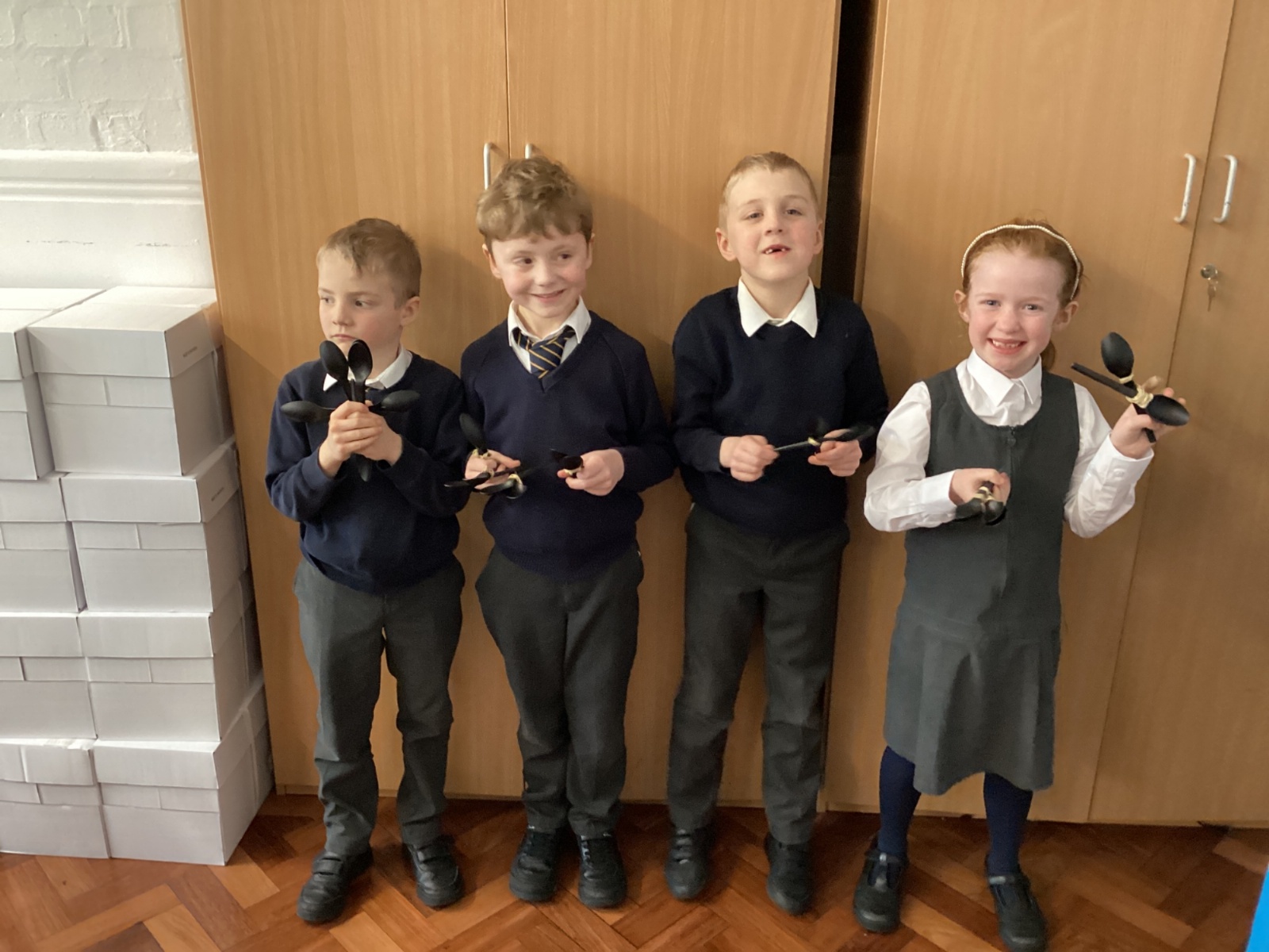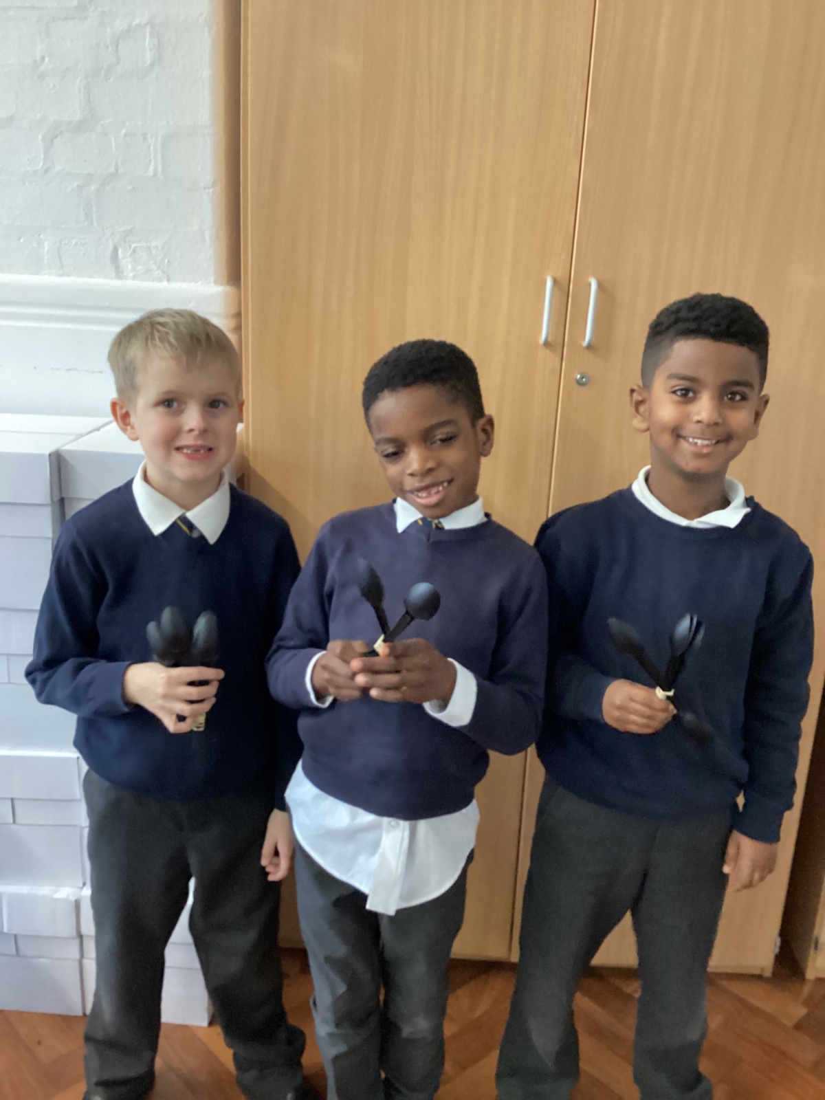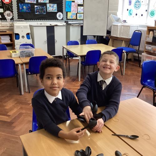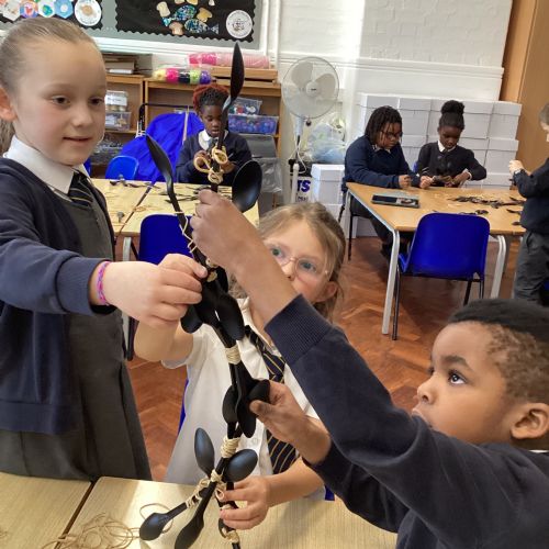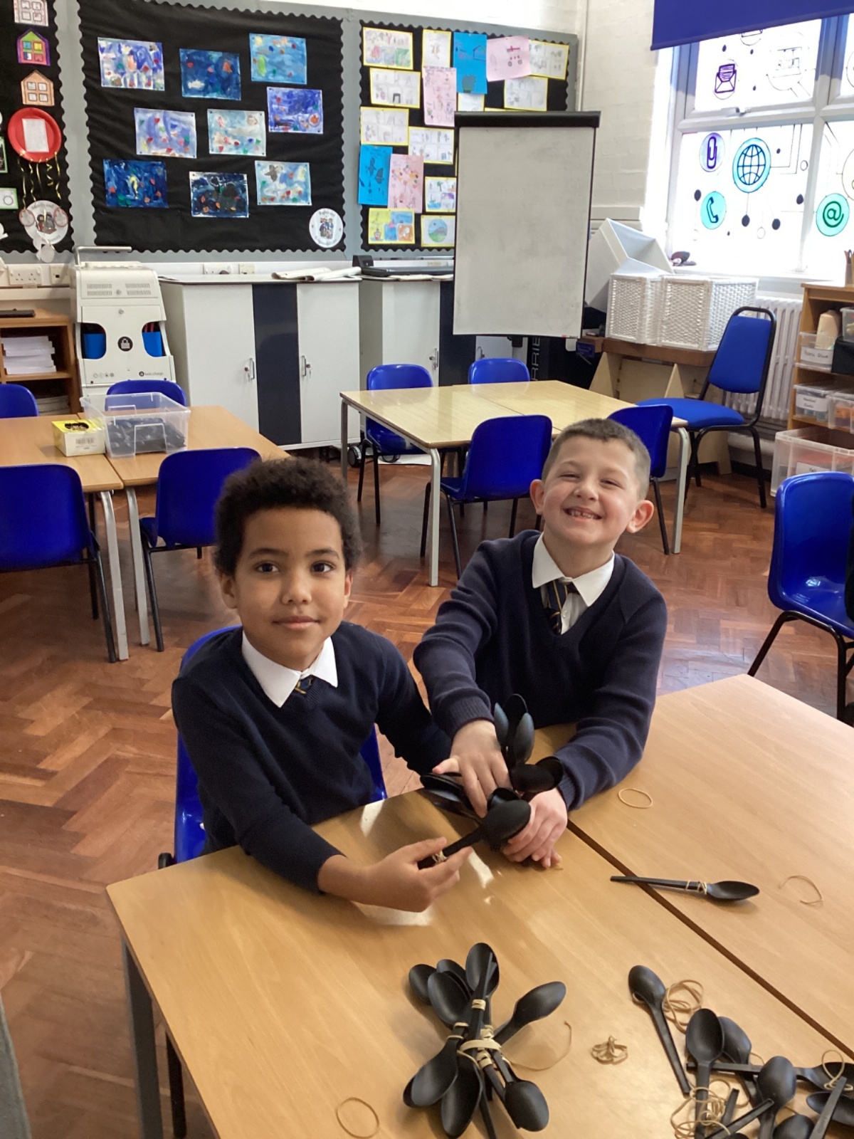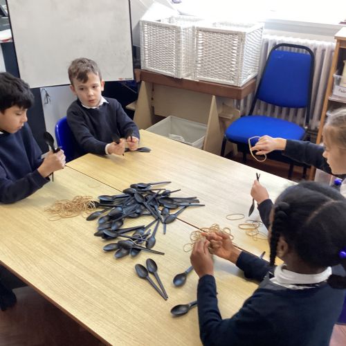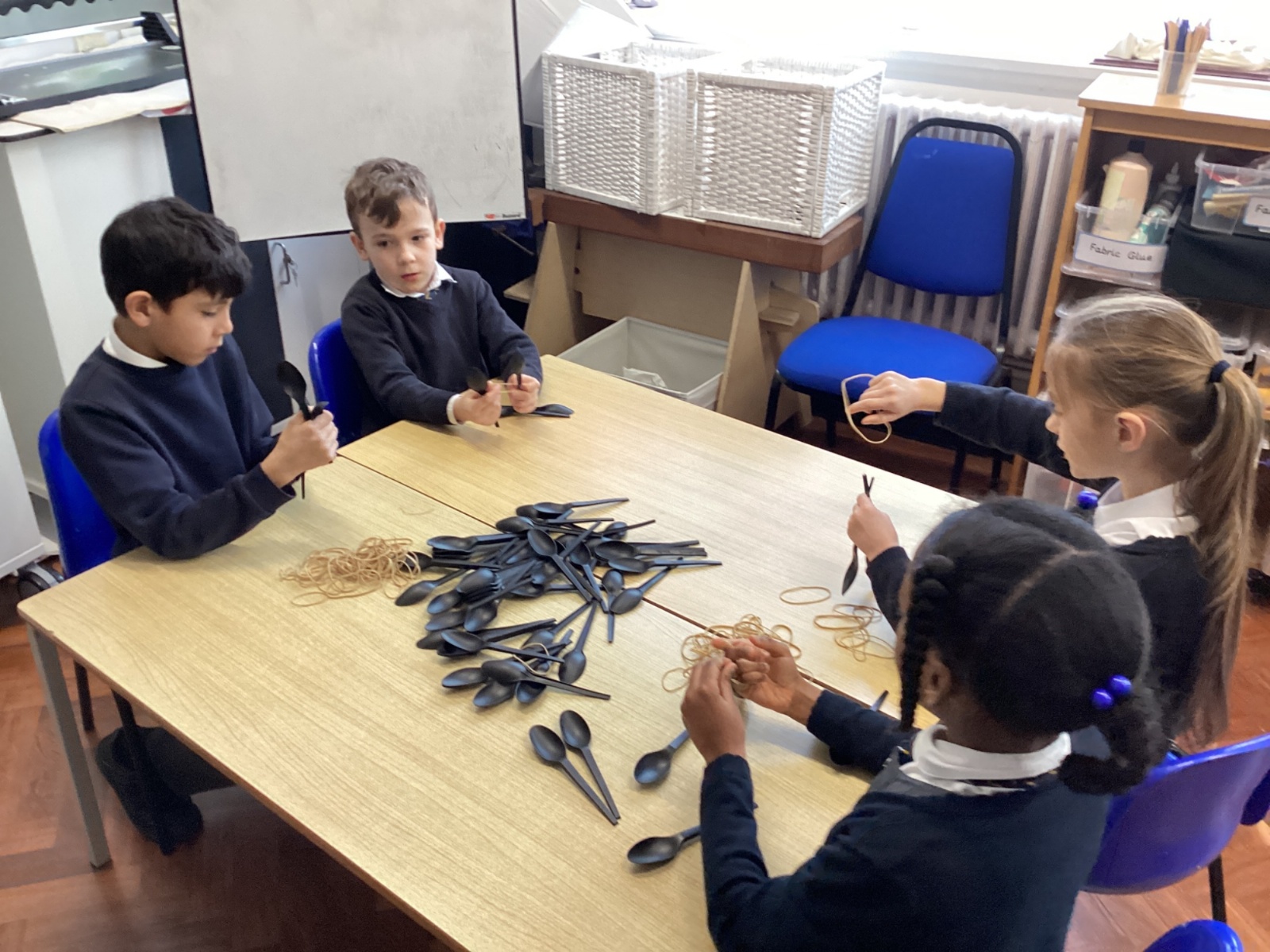 We have been learning about sculptors who made structures using spoons and rubber bands.