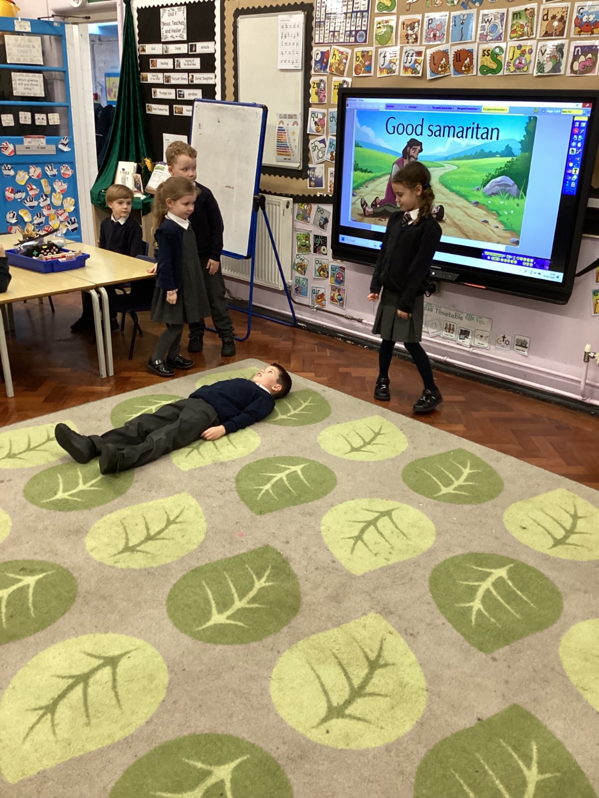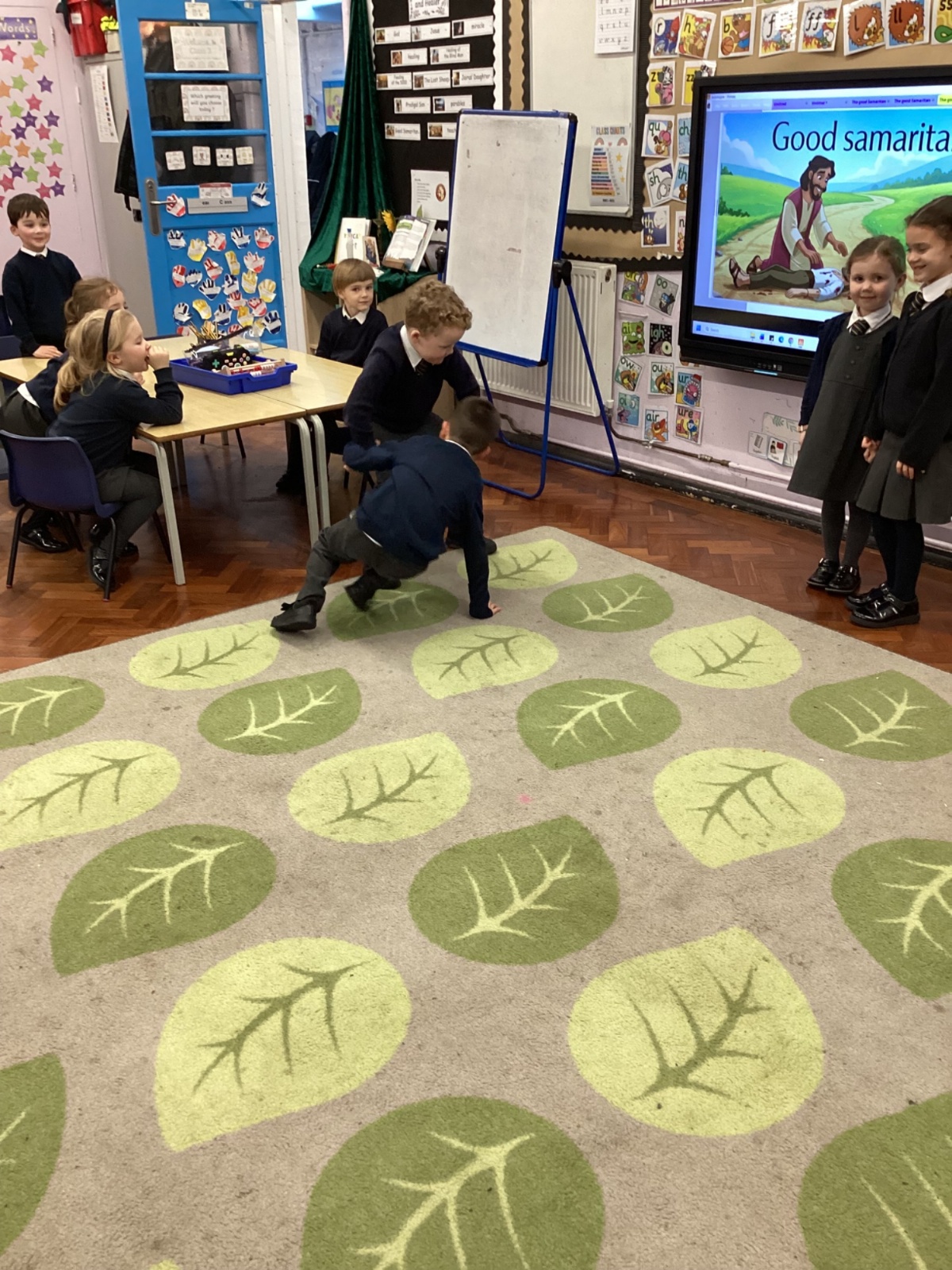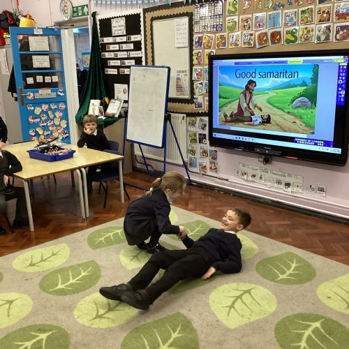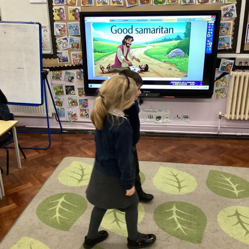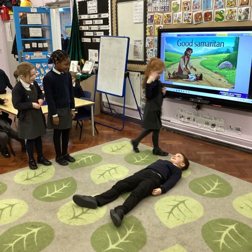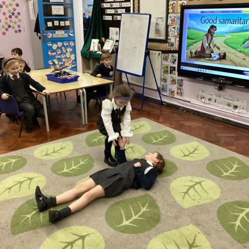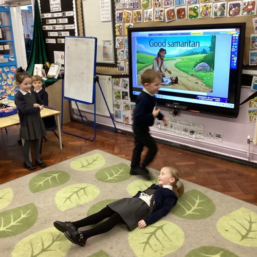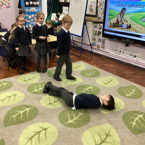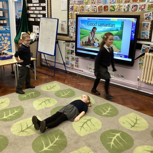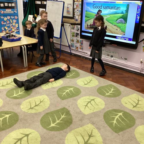 Today we re-enacted the parable of the Good Samaritan. We worked in small groups to retell the story.