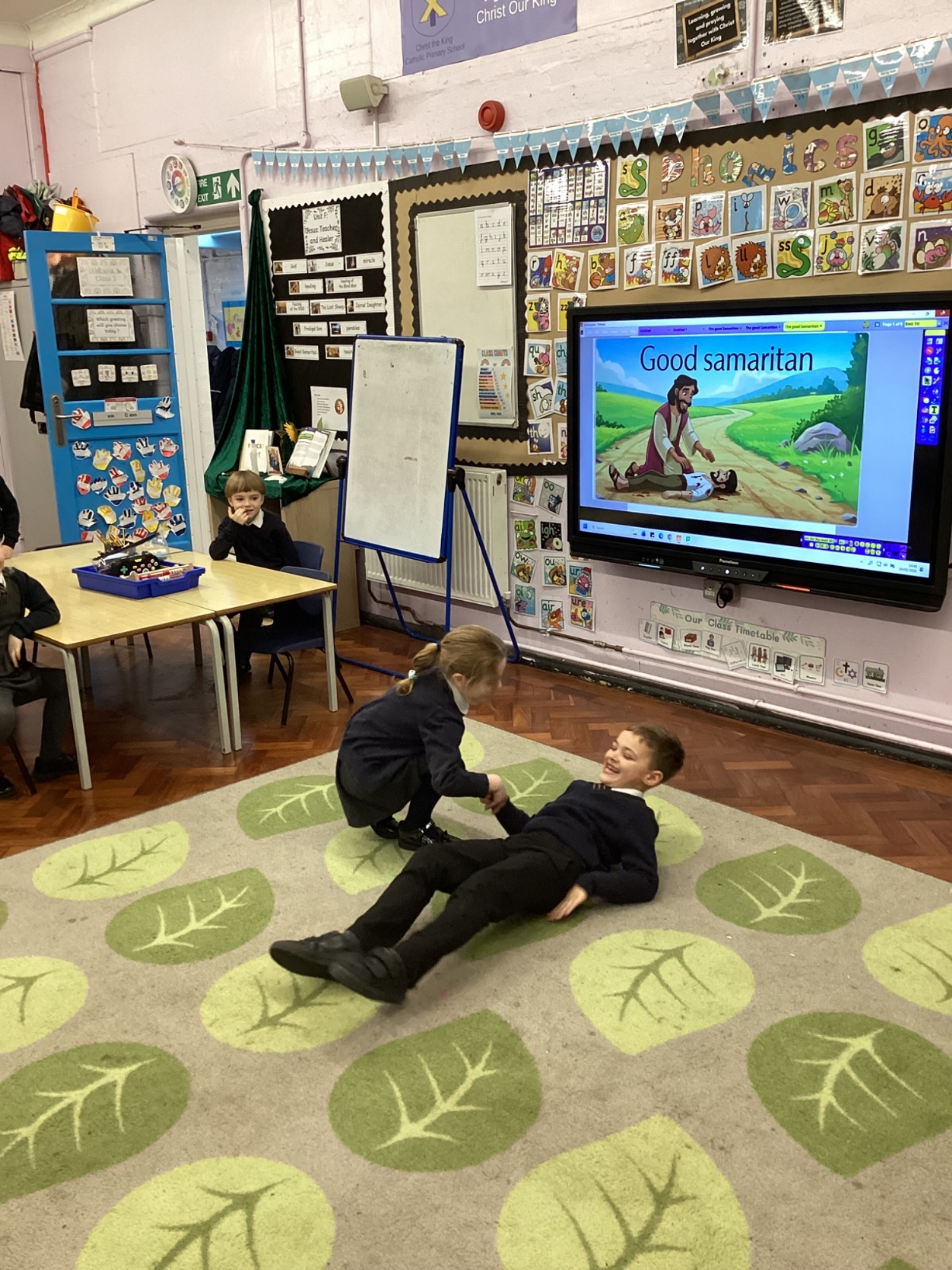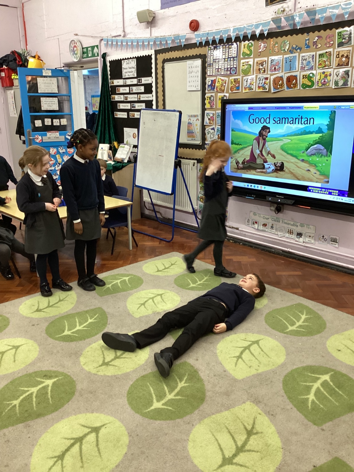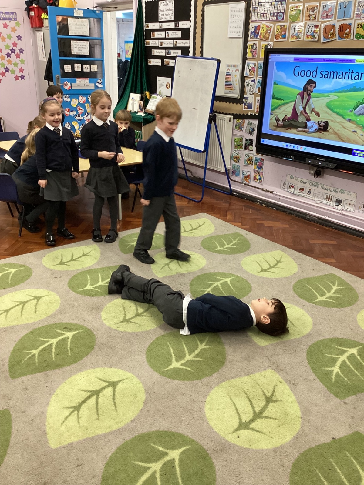 Today we re-enacted the parable of the Good Samaritan. We worked in small groups to retell the story.