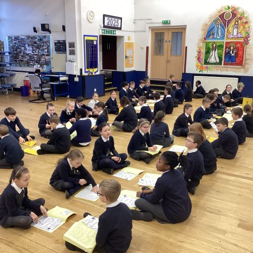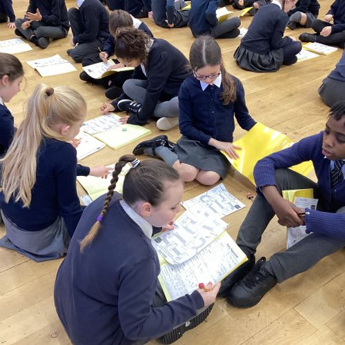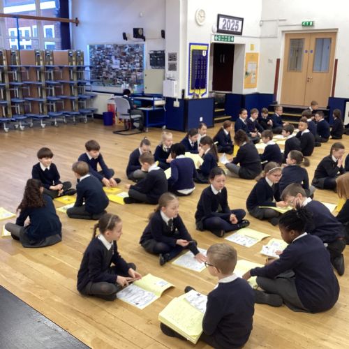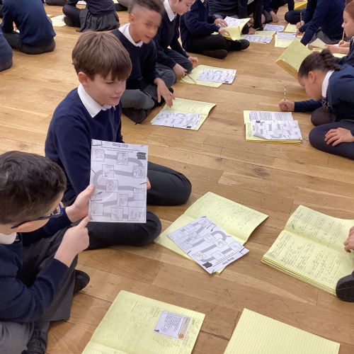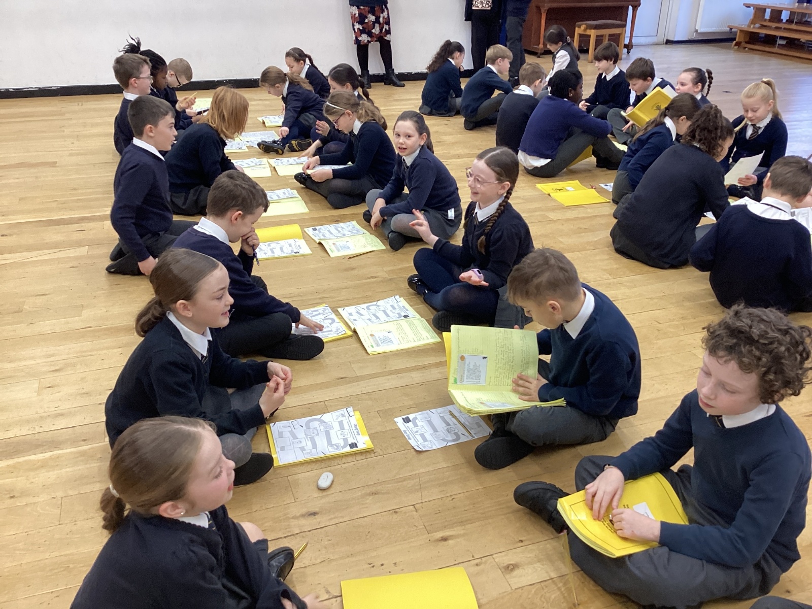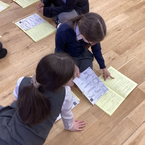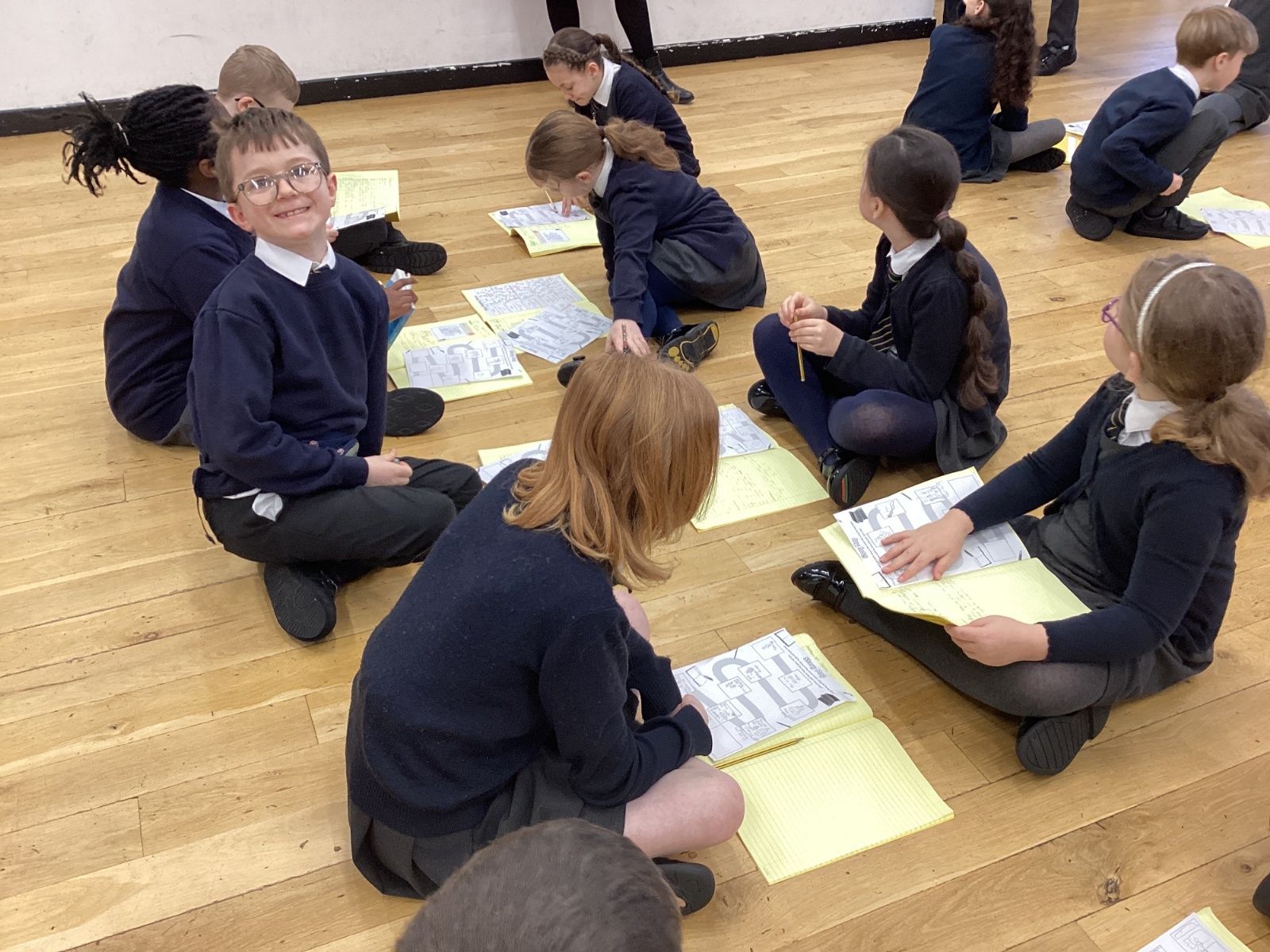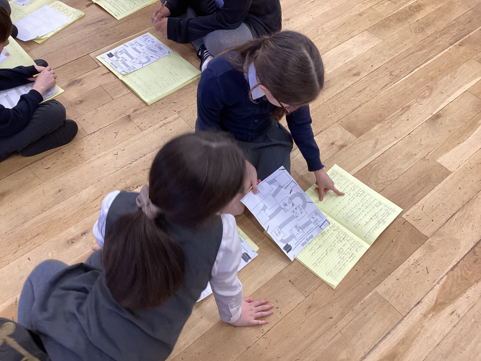 This morning we met with Class 10 in the hall to talk about our story plans so far. We listened attentively to our partner in Class 10 and offered suggestions on how to make their story even more exciting. Then we swapped, so we told our story plans to our partner and gained interesting ideas.