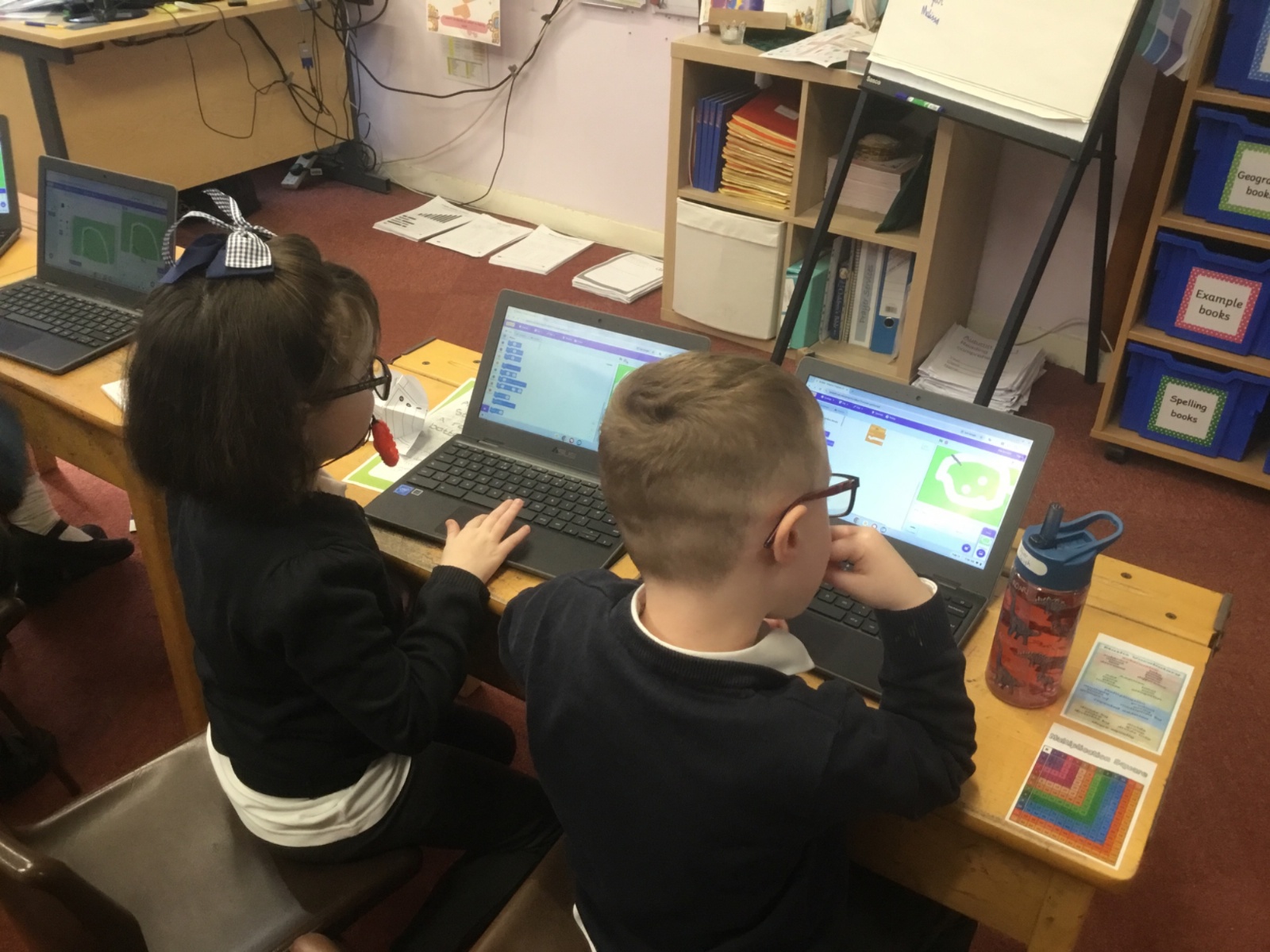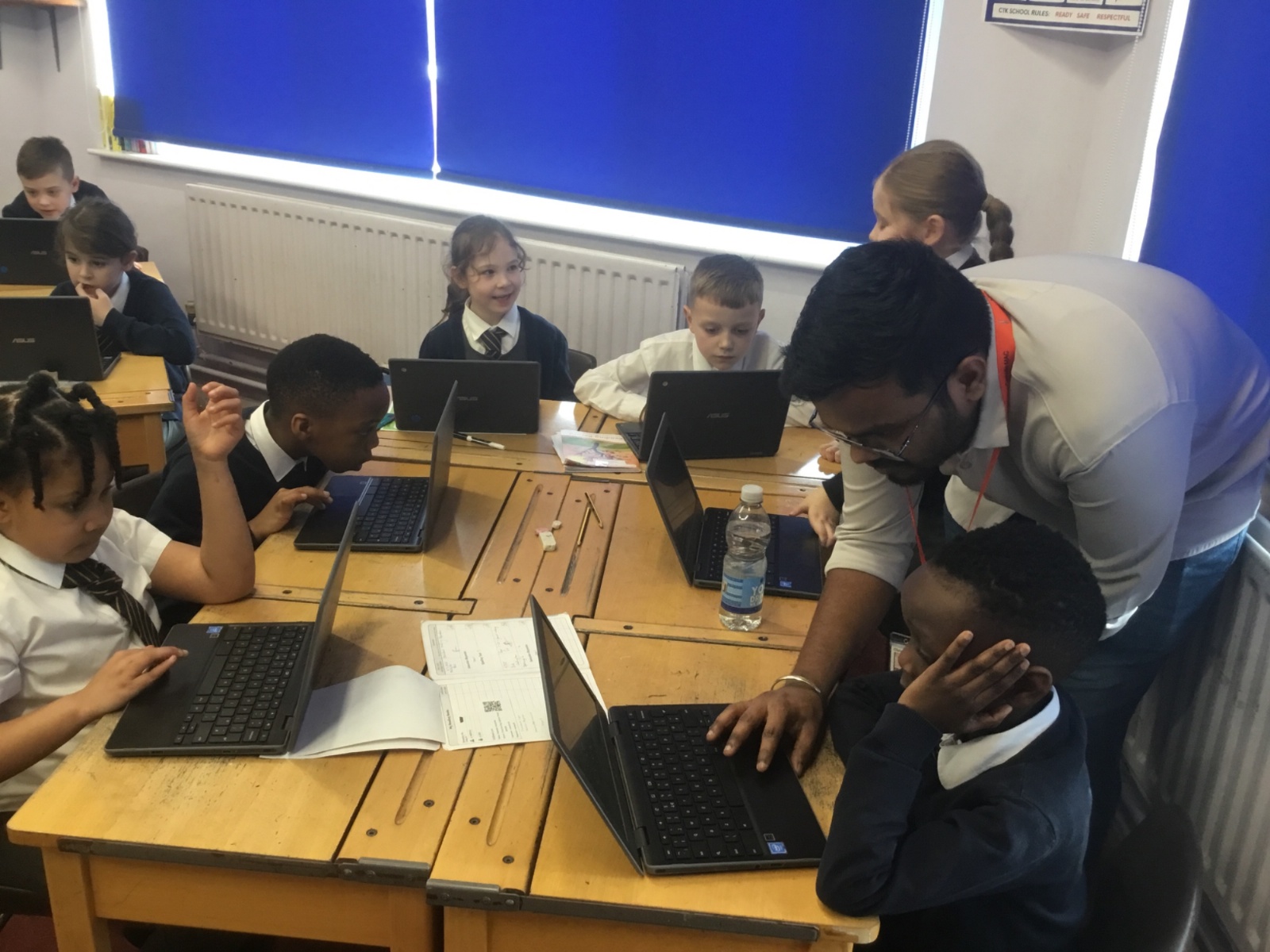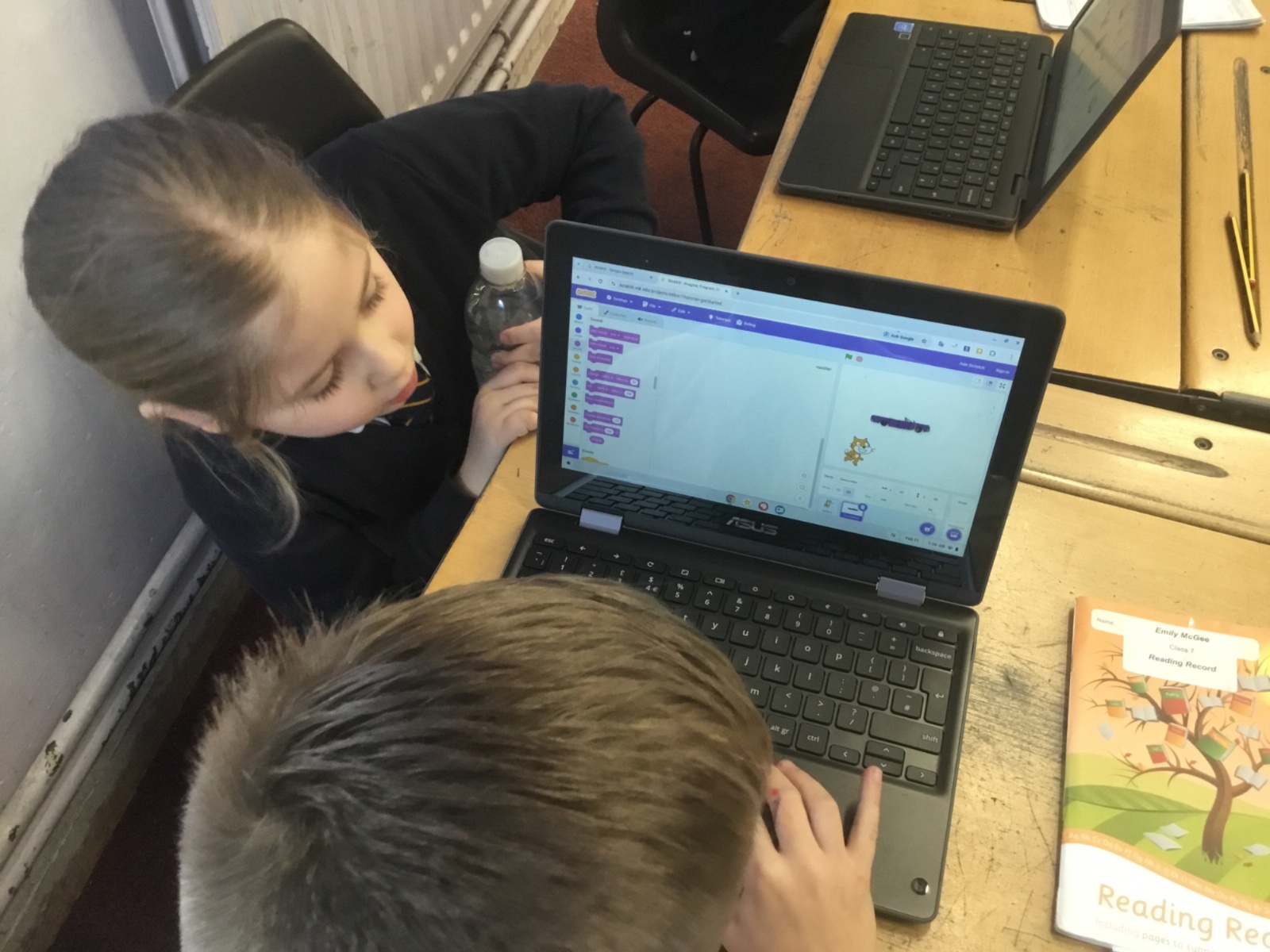 We had a great session with the Warwick University volunteers. They taught us how to use 'Scratch' to program objects to move on screen.