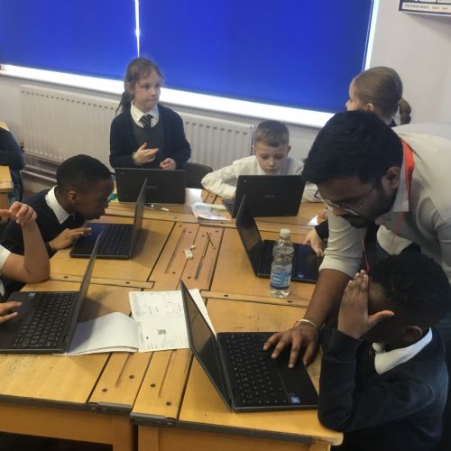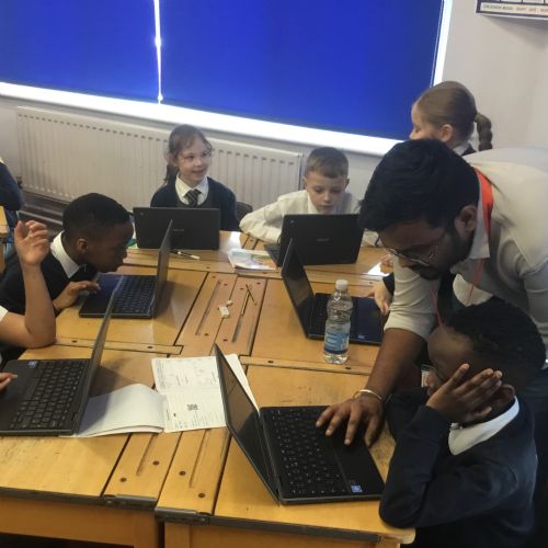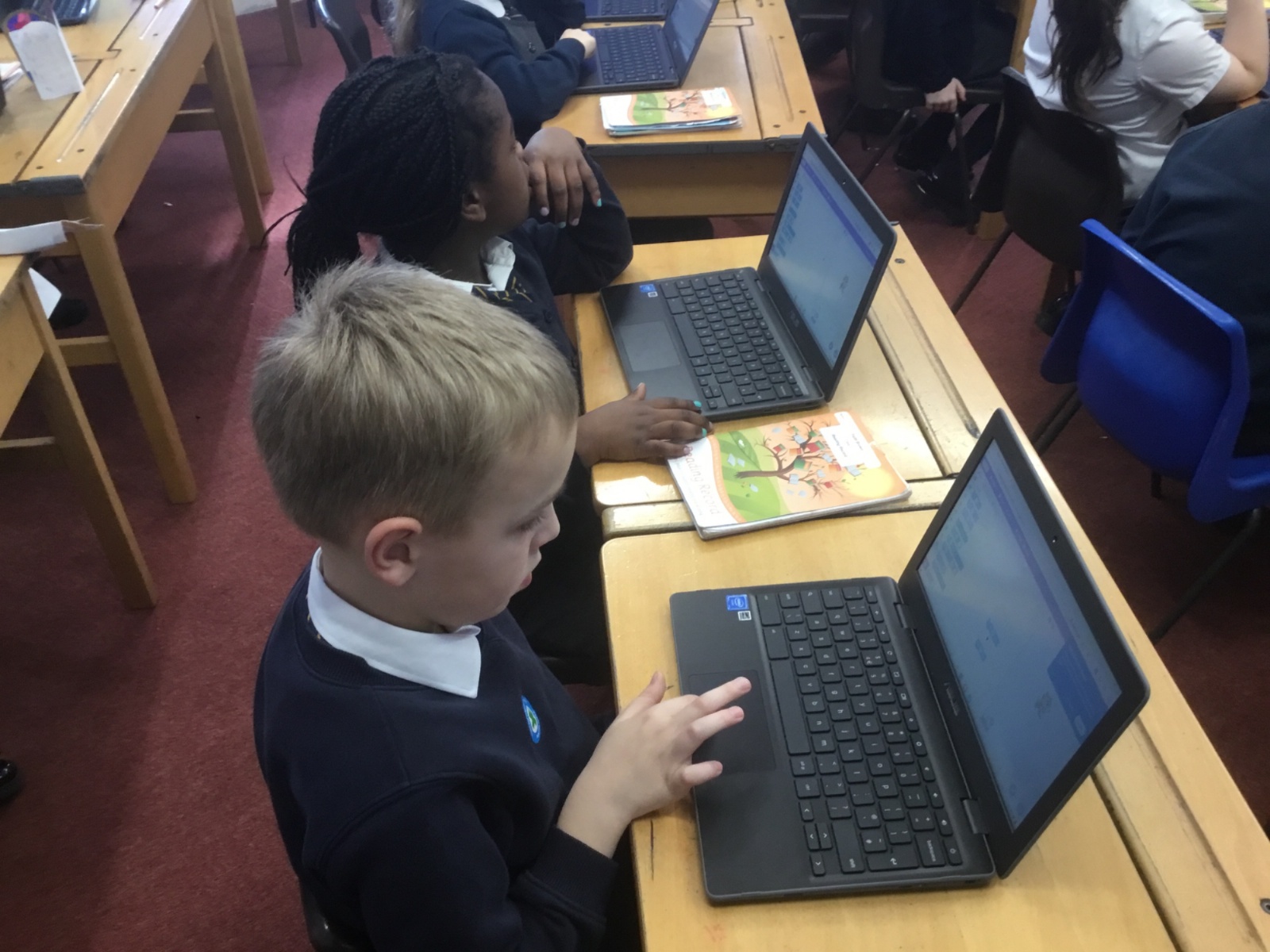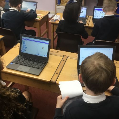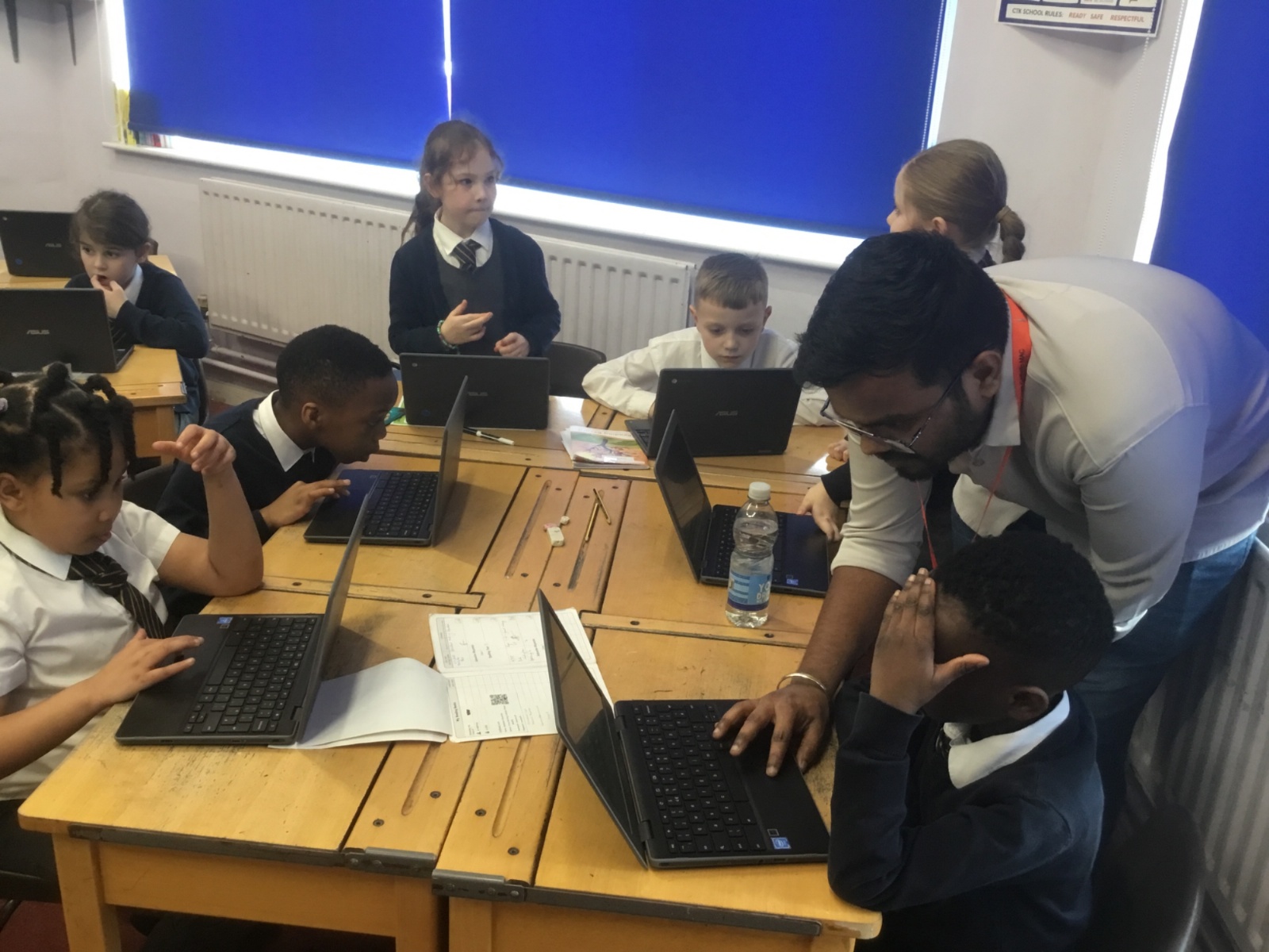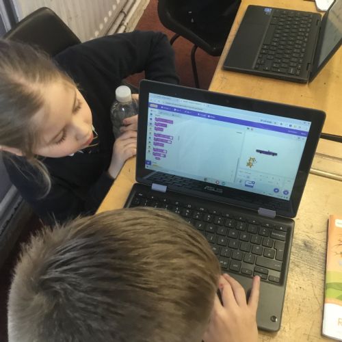 We had a great session with the Warwick University volunteers. They taught us how to use 'Scratch' to program objects to move on screen.