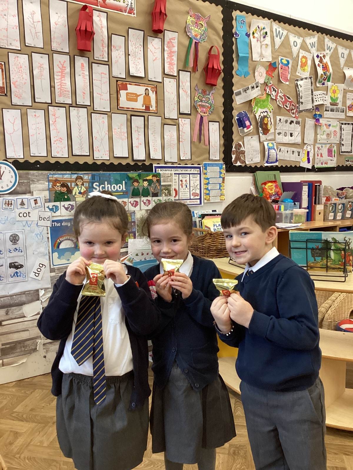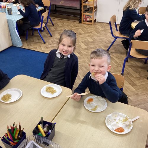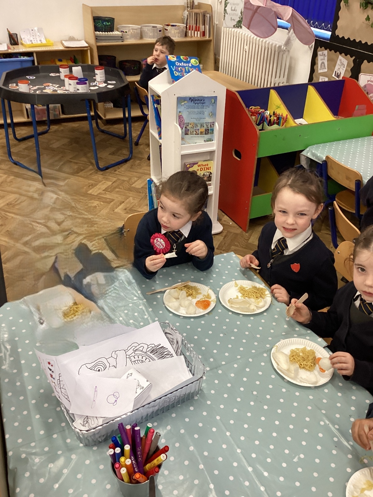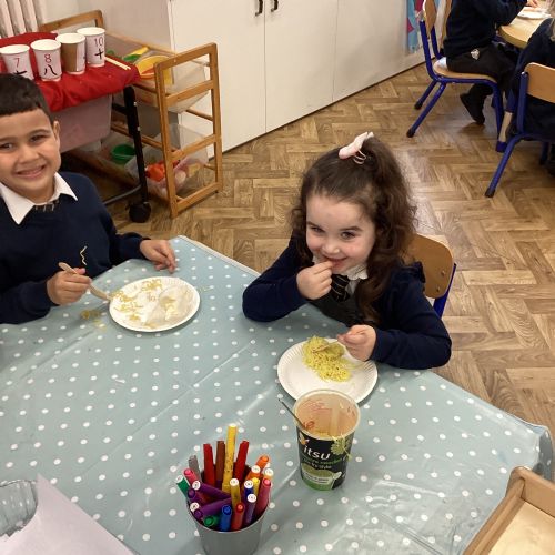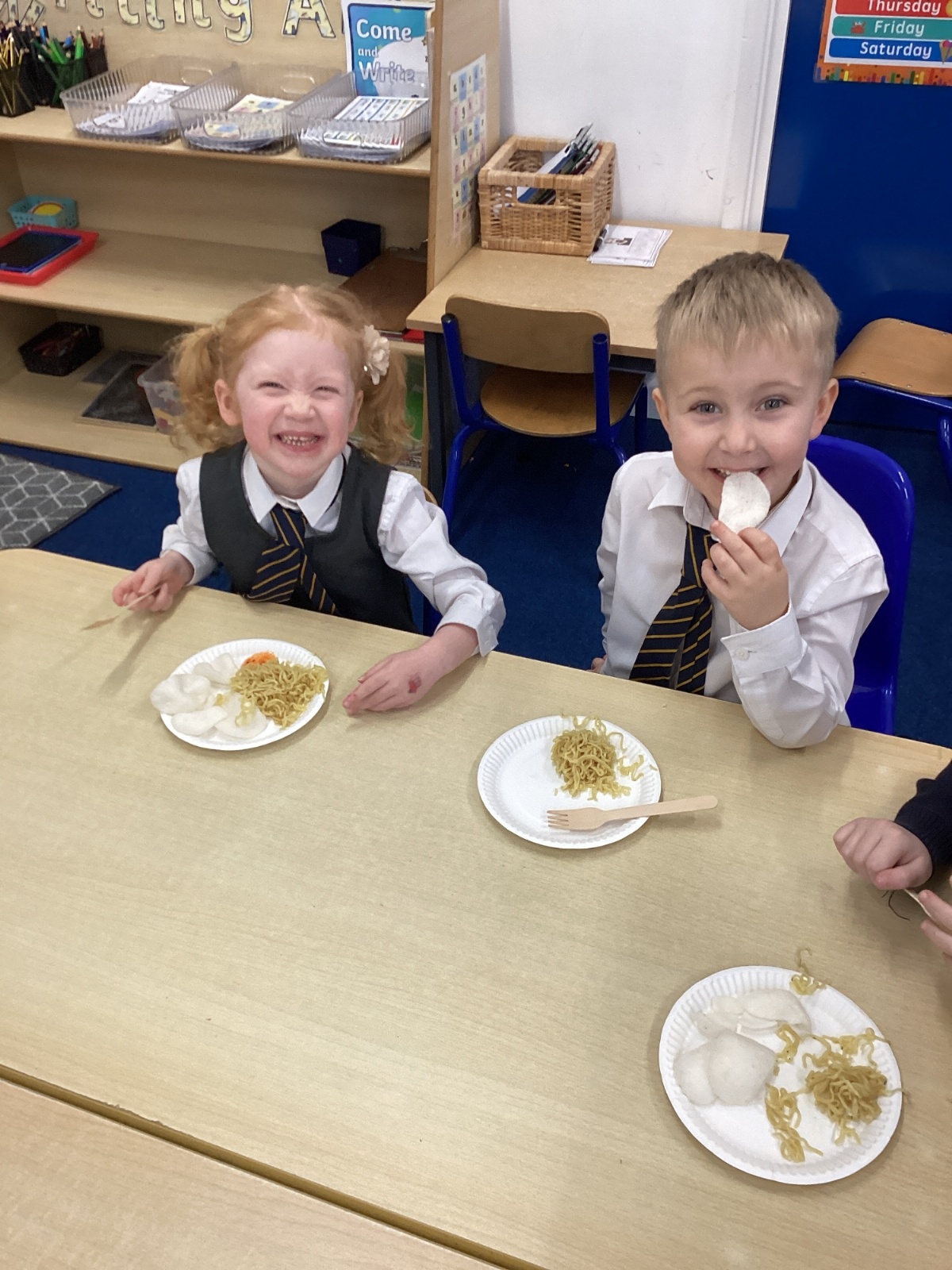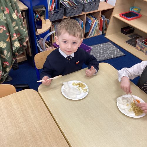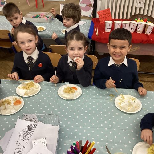 We have been learning all about Chinese New Year - The Year of the Horse. After reading the story of the Chinese Zodiac, The Great Race, we retold our favourite part of the story and also sequenced the animals in the order in which they won. We created Chinese blossom paintings and dragon masks. Using our cutting skills, we created Chinese paper lanterns. At the end of the week, we tasted noodles, prawn crackers and sweet chilli sauce and we also took home a fortune cookie. What a fun week!