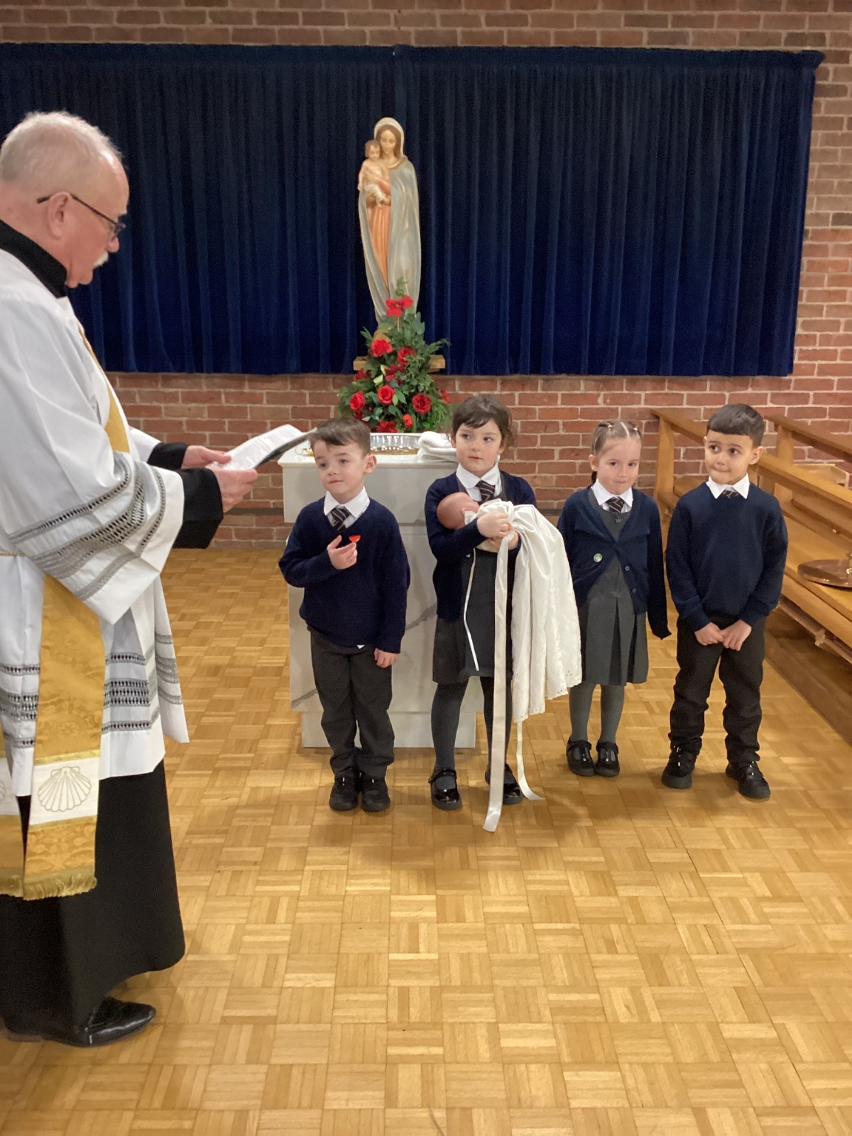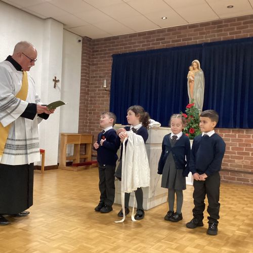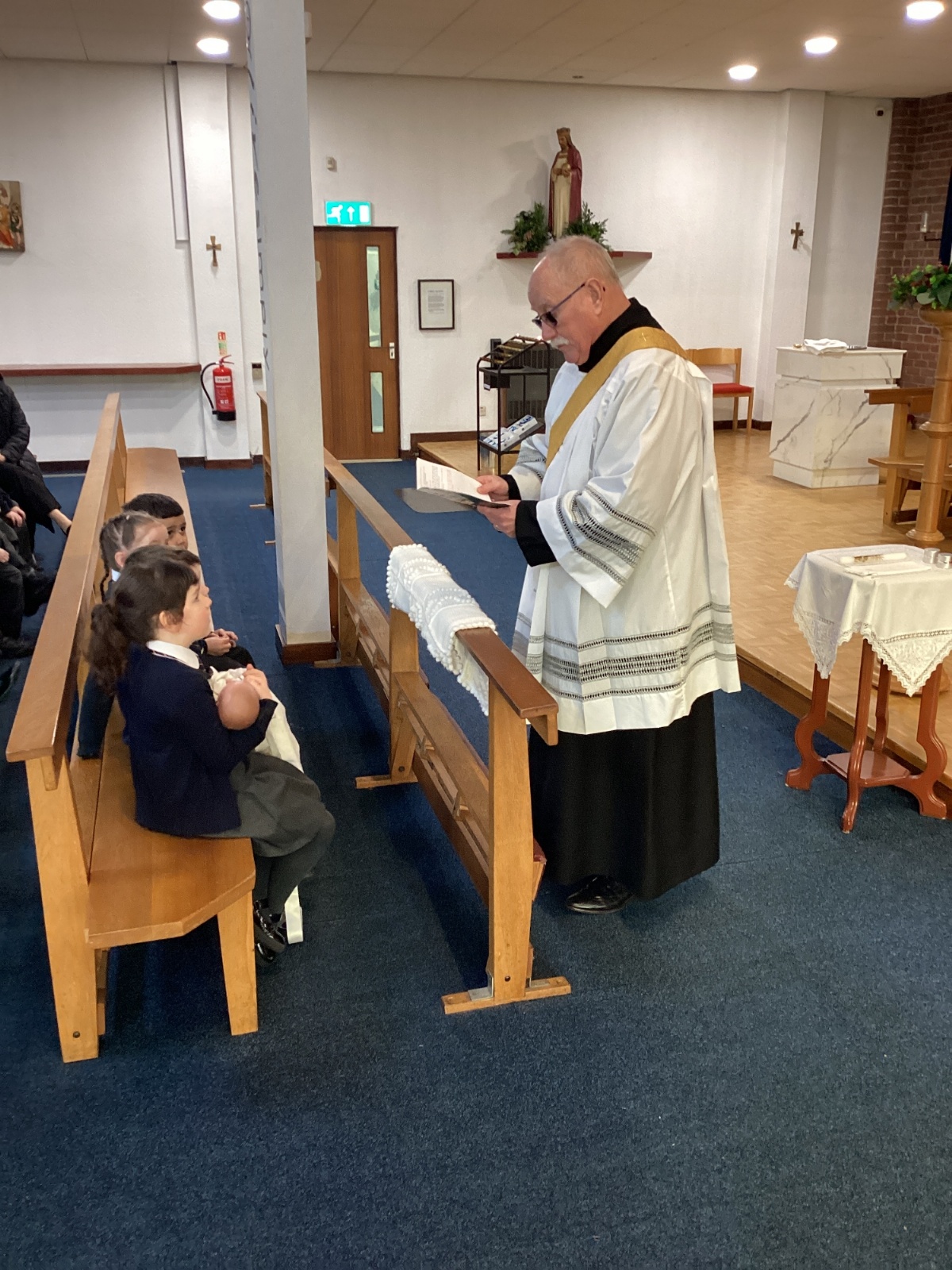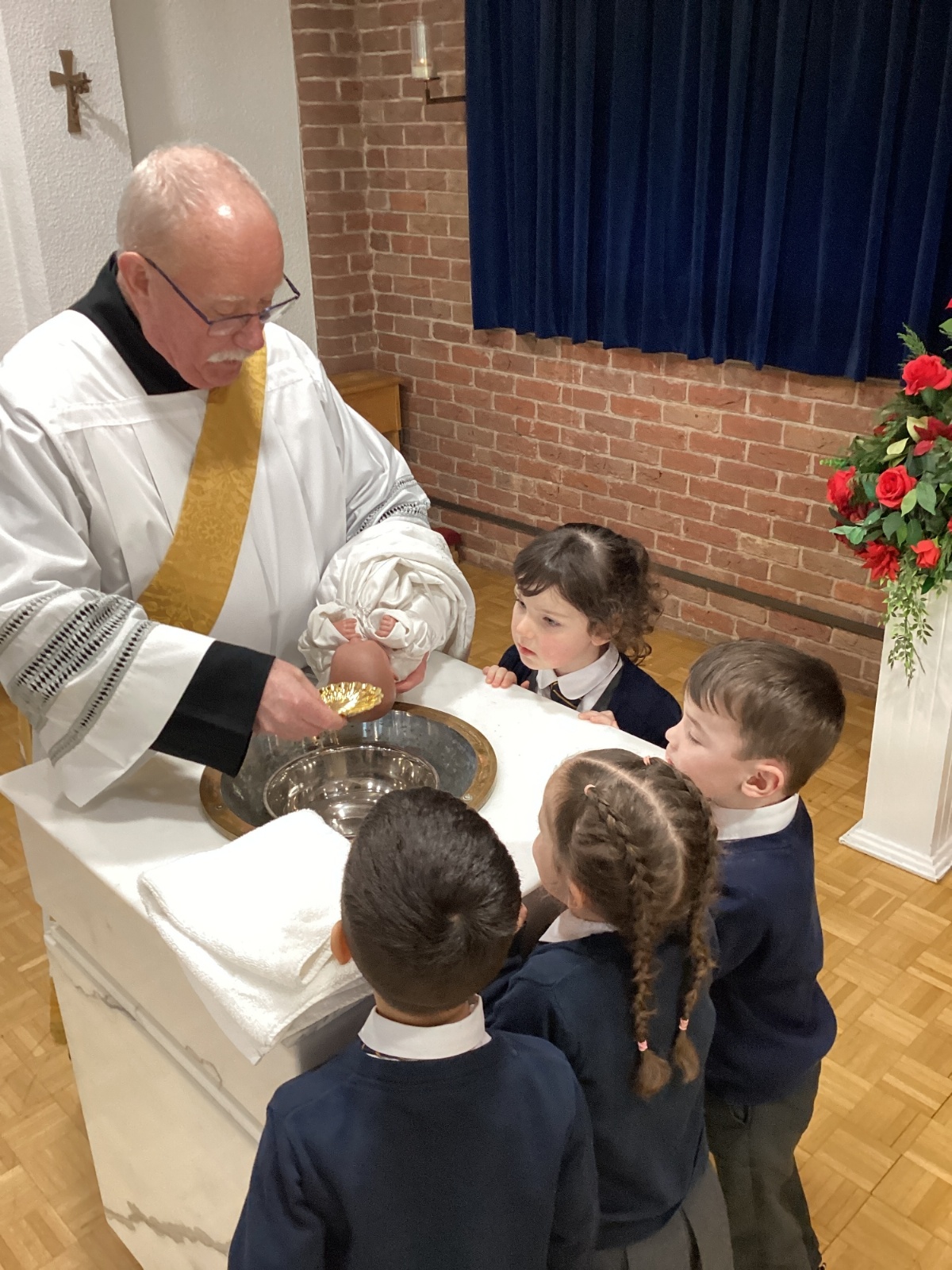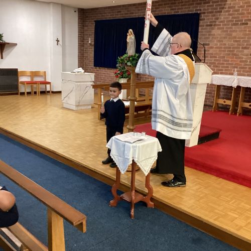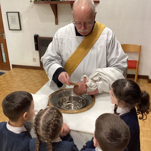 We had a special visit to Church to learn more about the sacrament of Baptism. Deacon Keith re-enacted a Baptism and baptised our class baby, Christian. We learnt about the special role of the godparents and learnt more about the special symbols used. Thank you Deacon Keith!