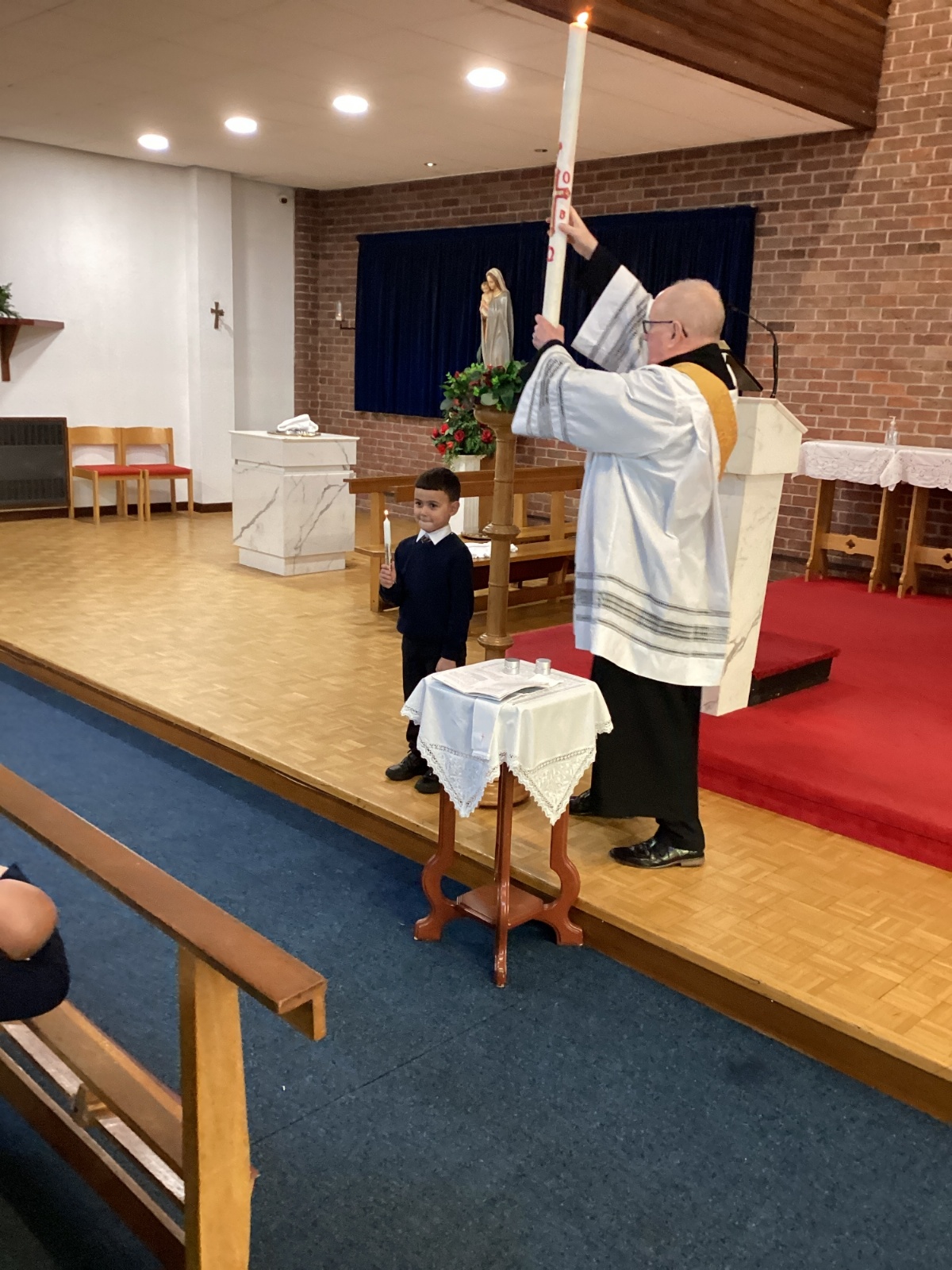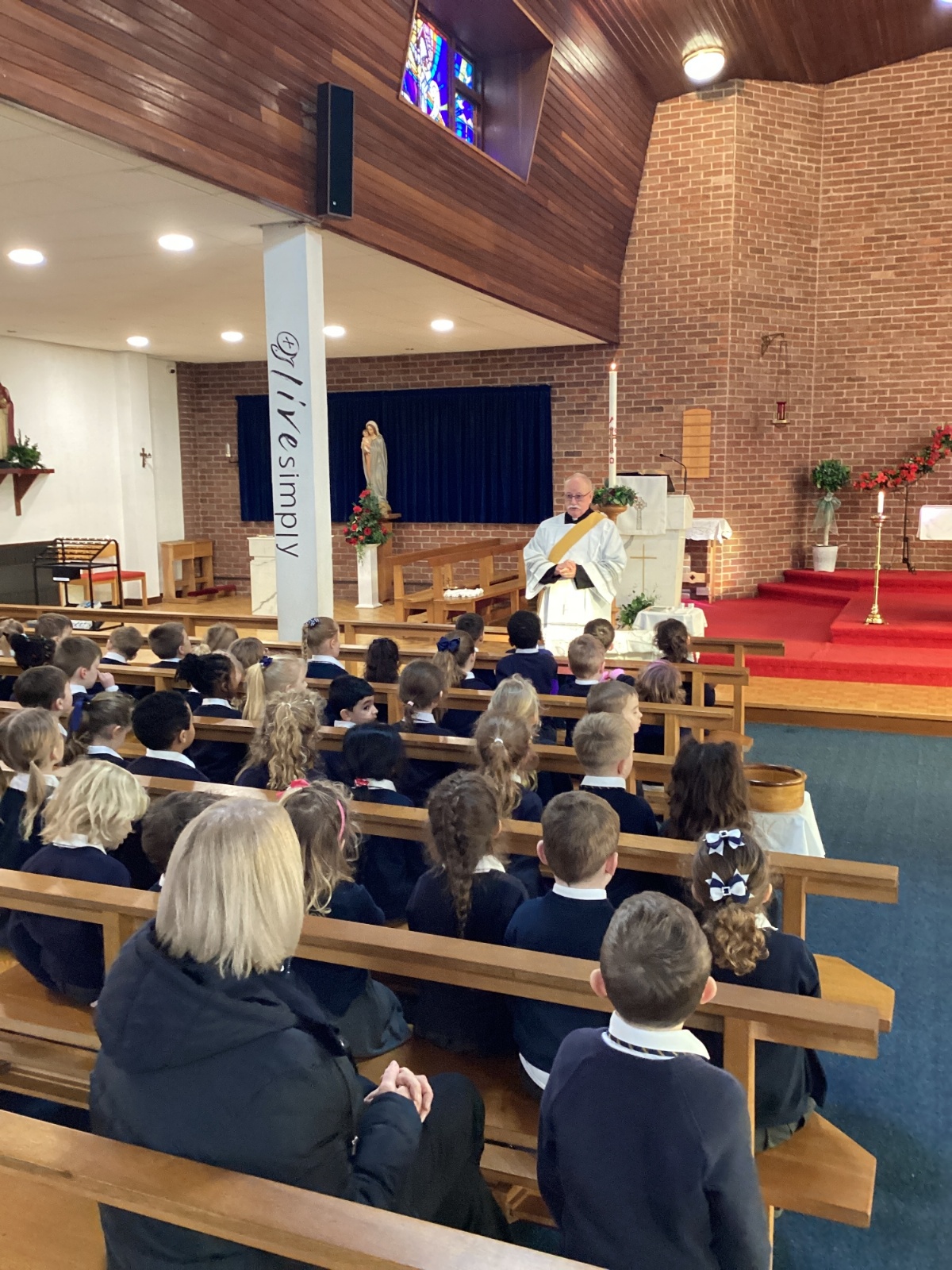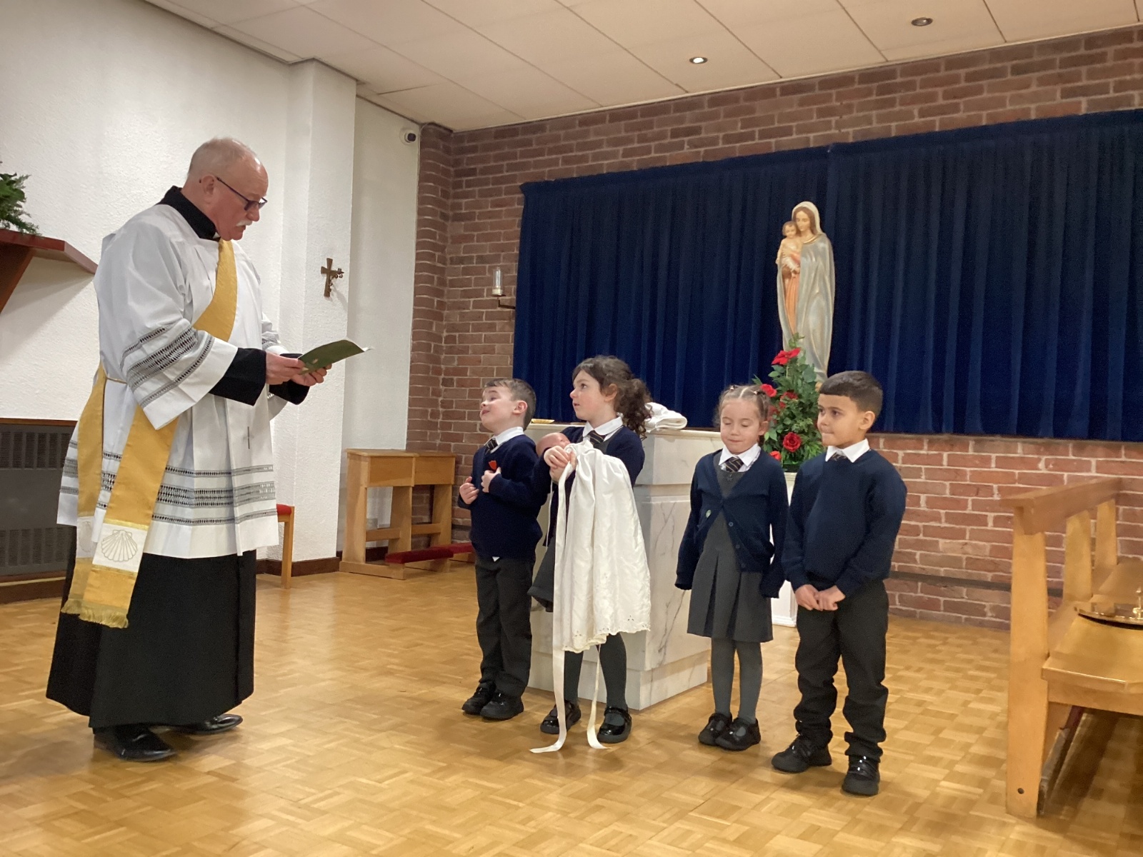 We had a special visit to Church to learn more about the sacrament of Baptism. Deacon Keith re-enacted a Baptism and baptised our class baby, Christian. We learnt about the special role of the godparents and learnt more about the special symbols used. Thank you Deacon Keith!