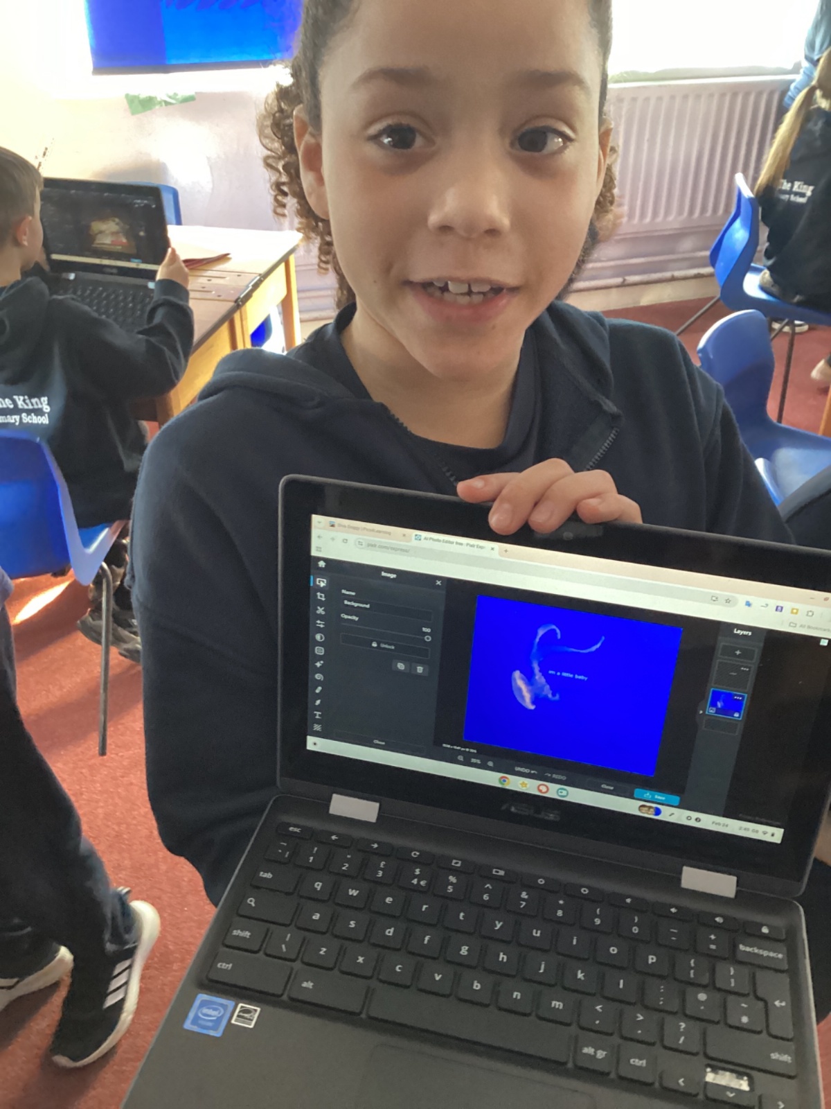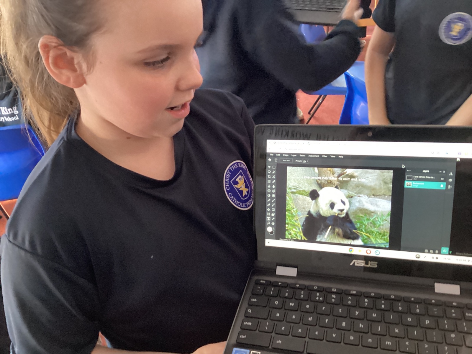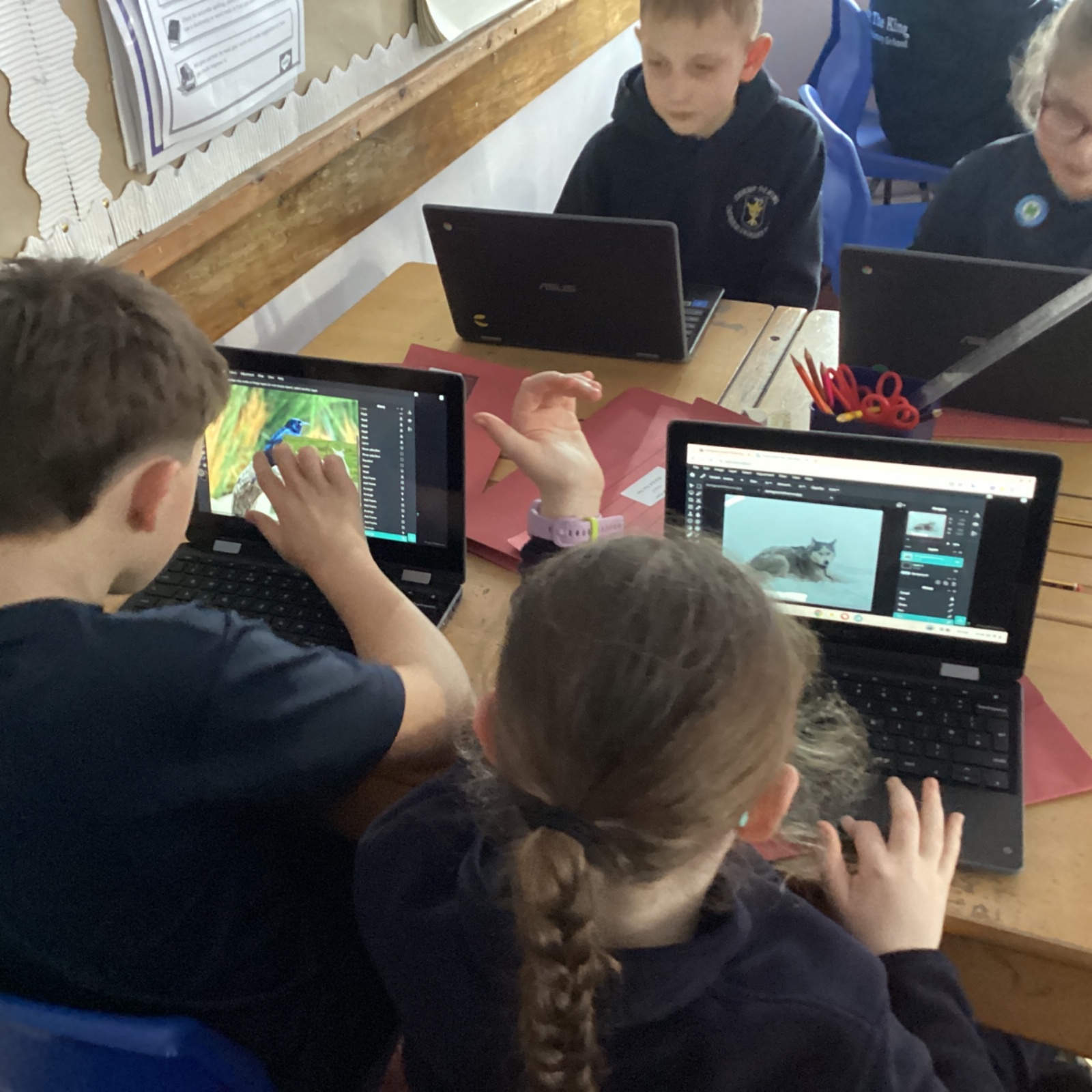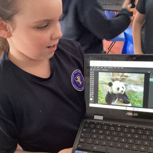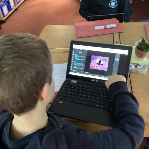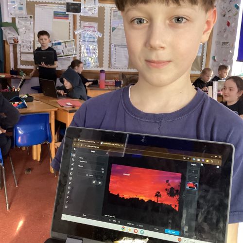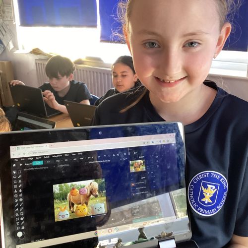 Computing in Year 4 our photo editing final projects, layering our magi-beasts and fantasy settings.