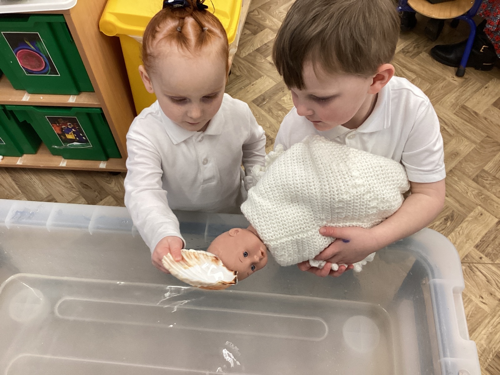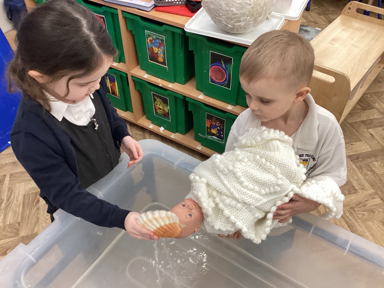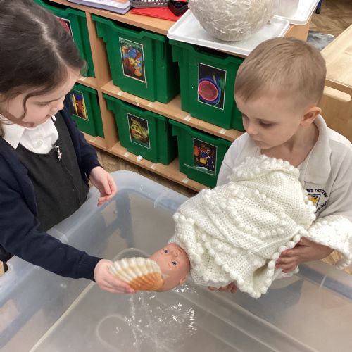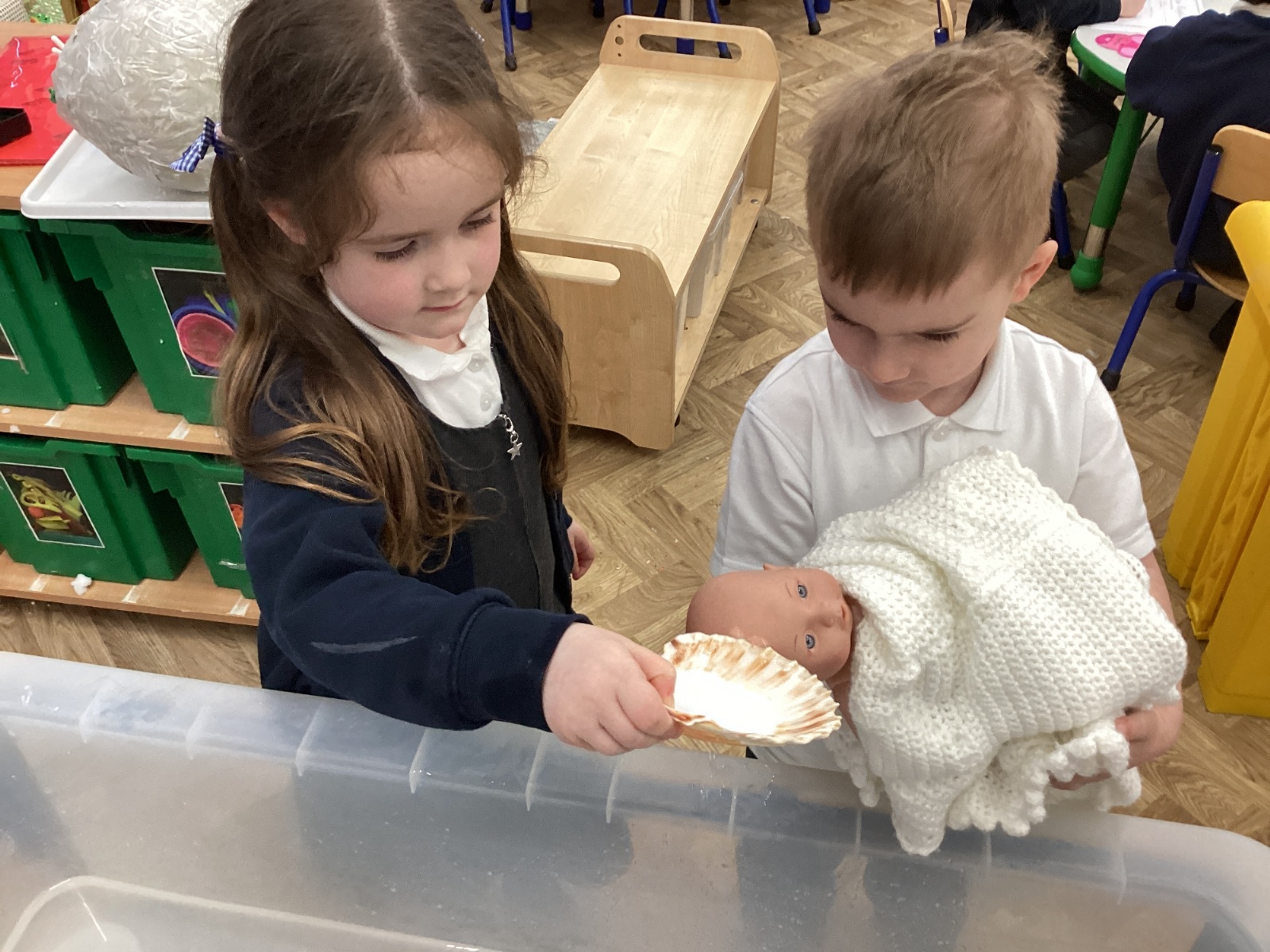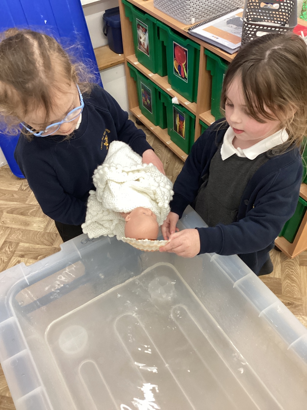 We have been learning about baptism. We re-enacted baptising a baby with holy water and choosing a very special name for them.