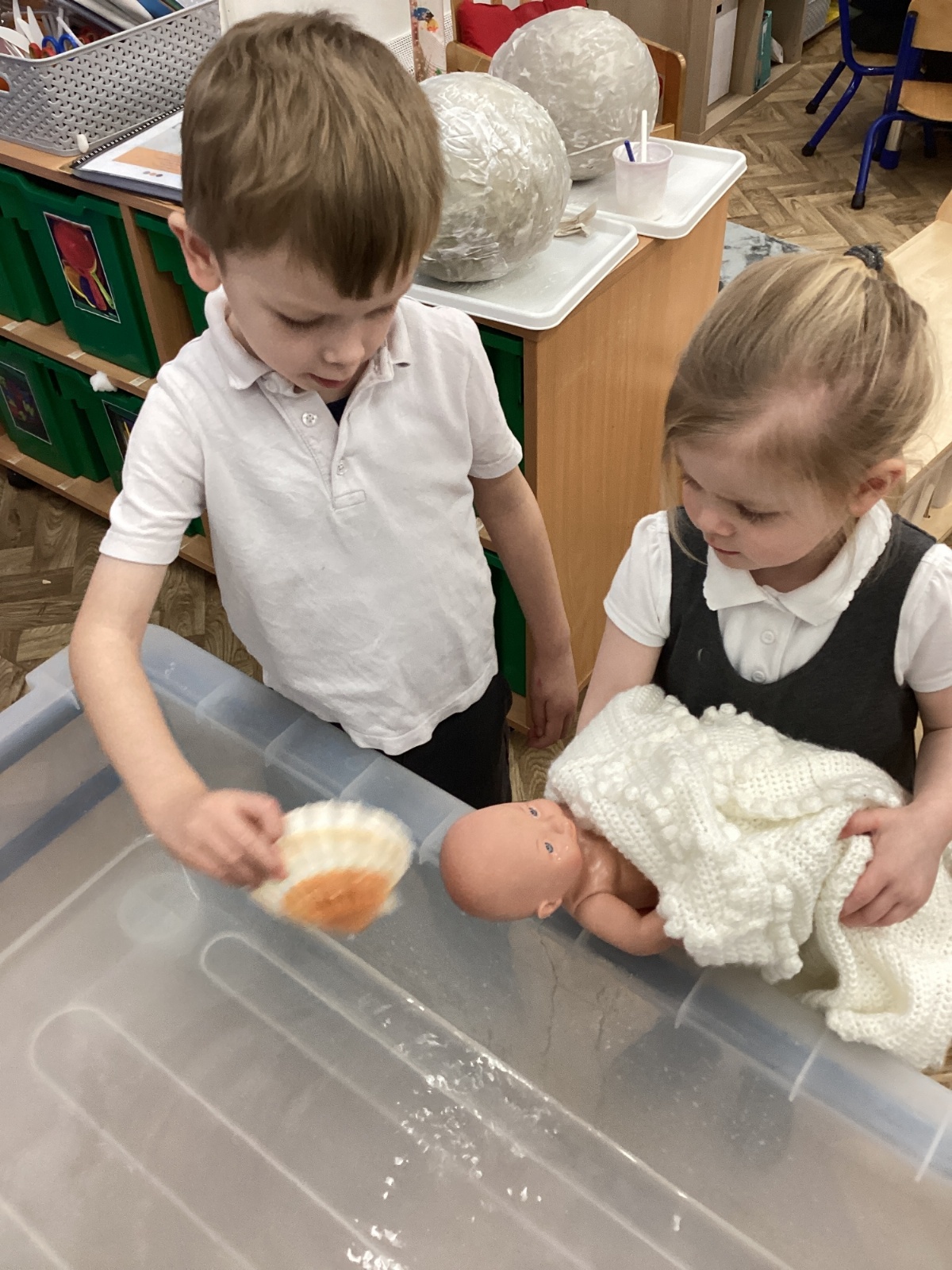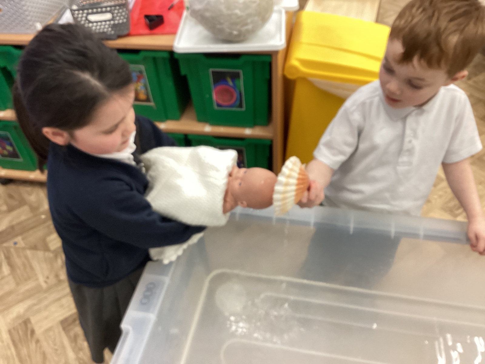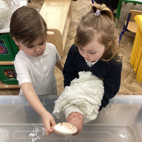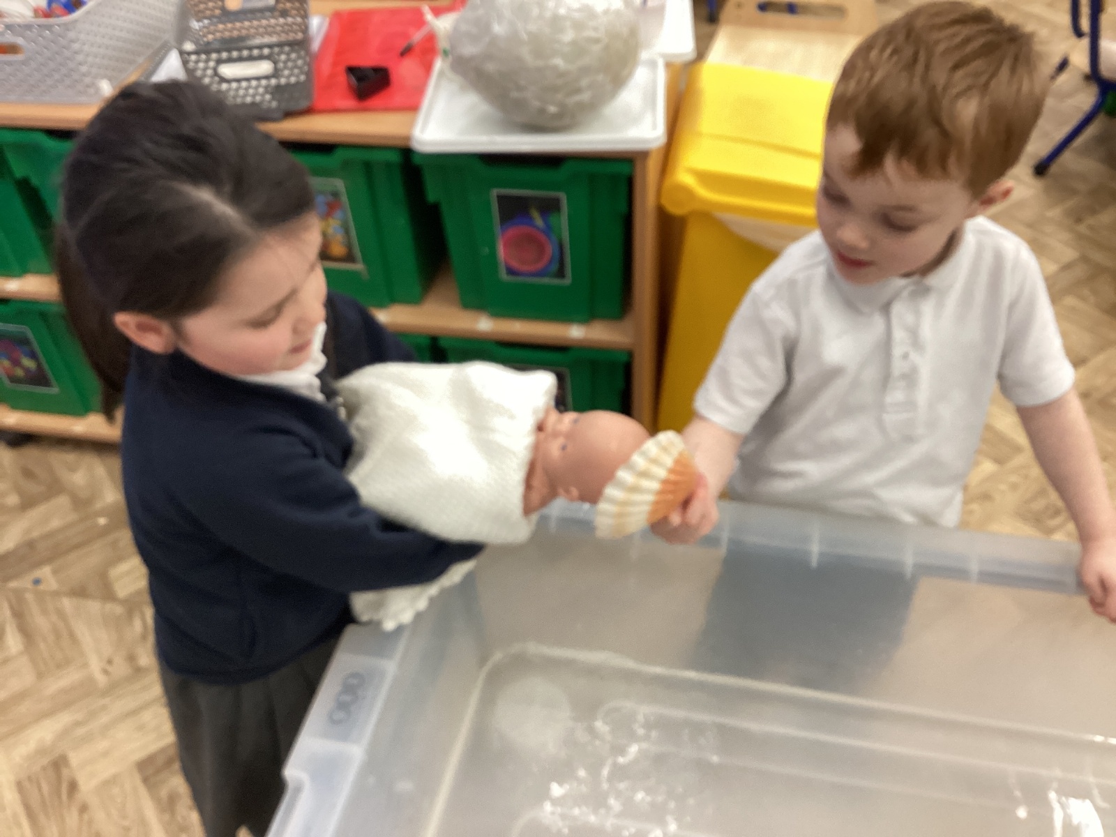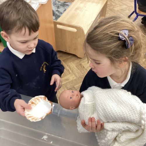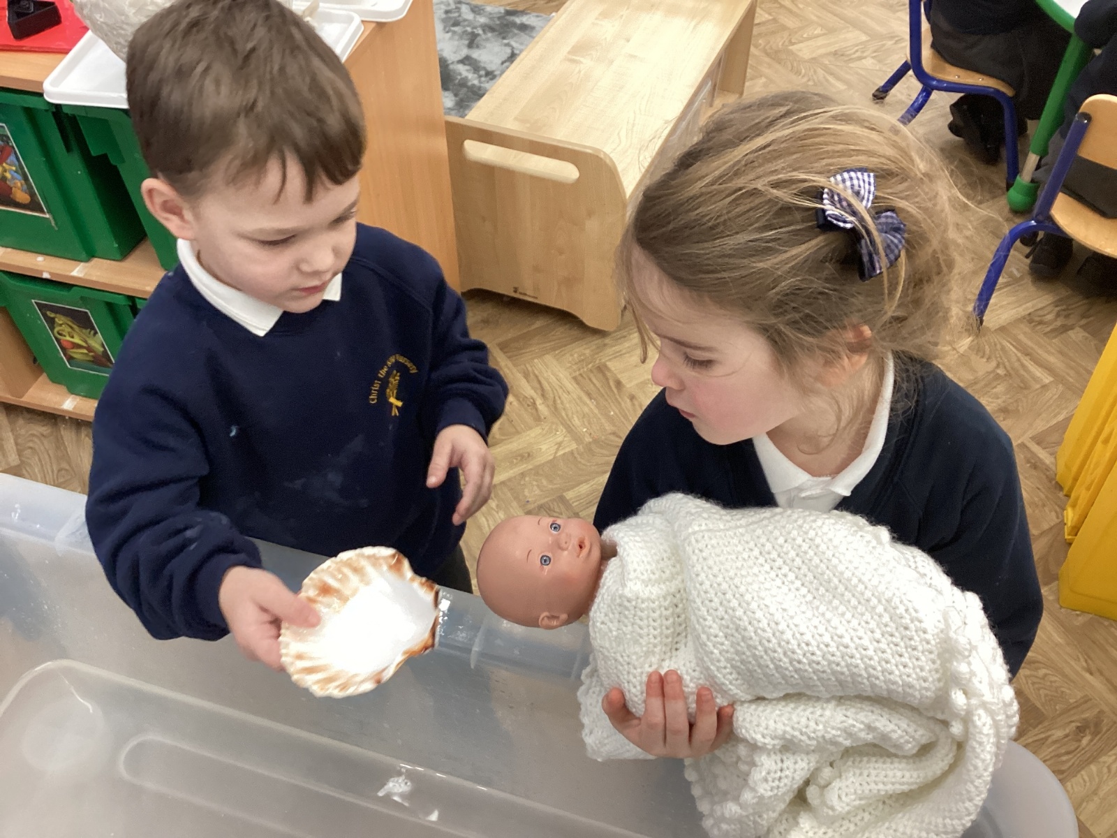 We have been learning about baptism. We re-enacted baptising a baby with holy water and choosing a very special name for them.