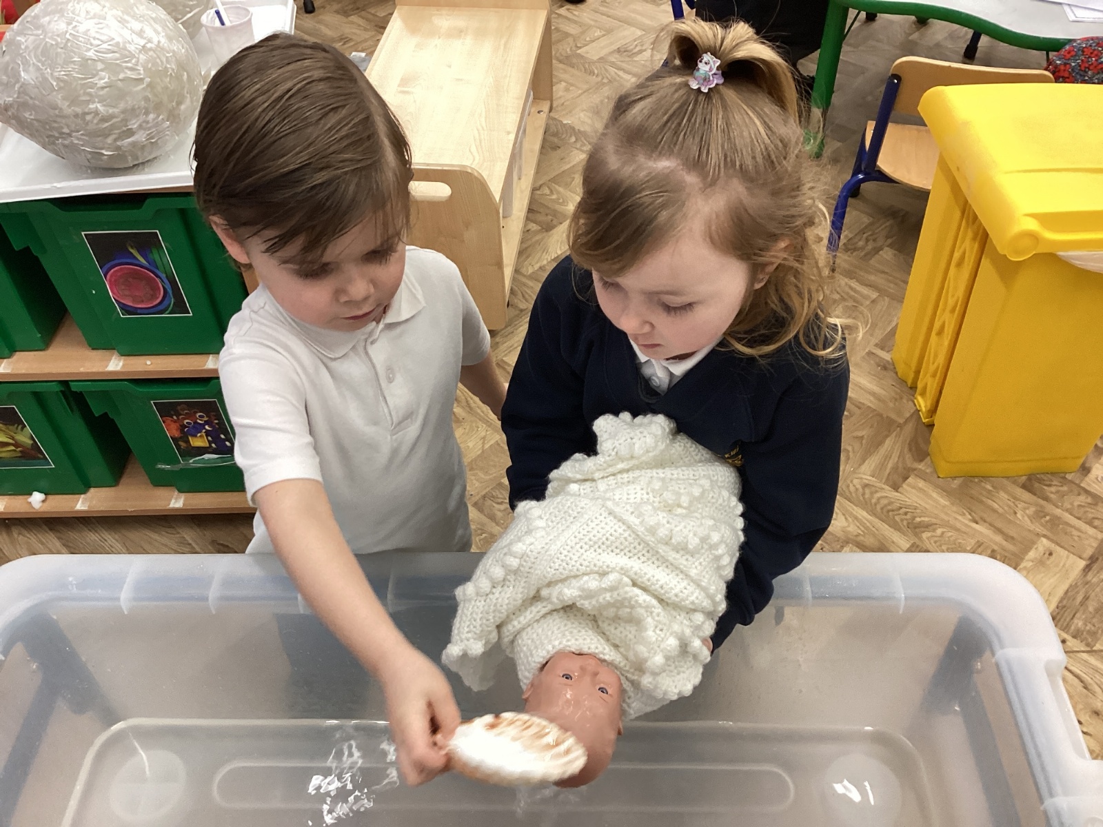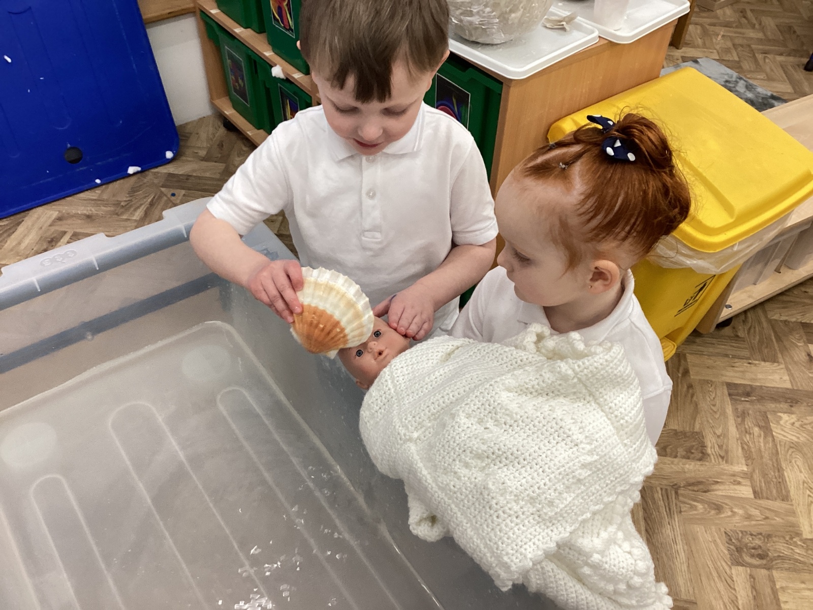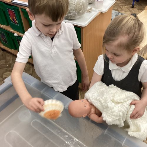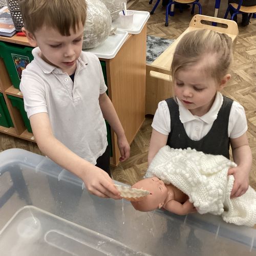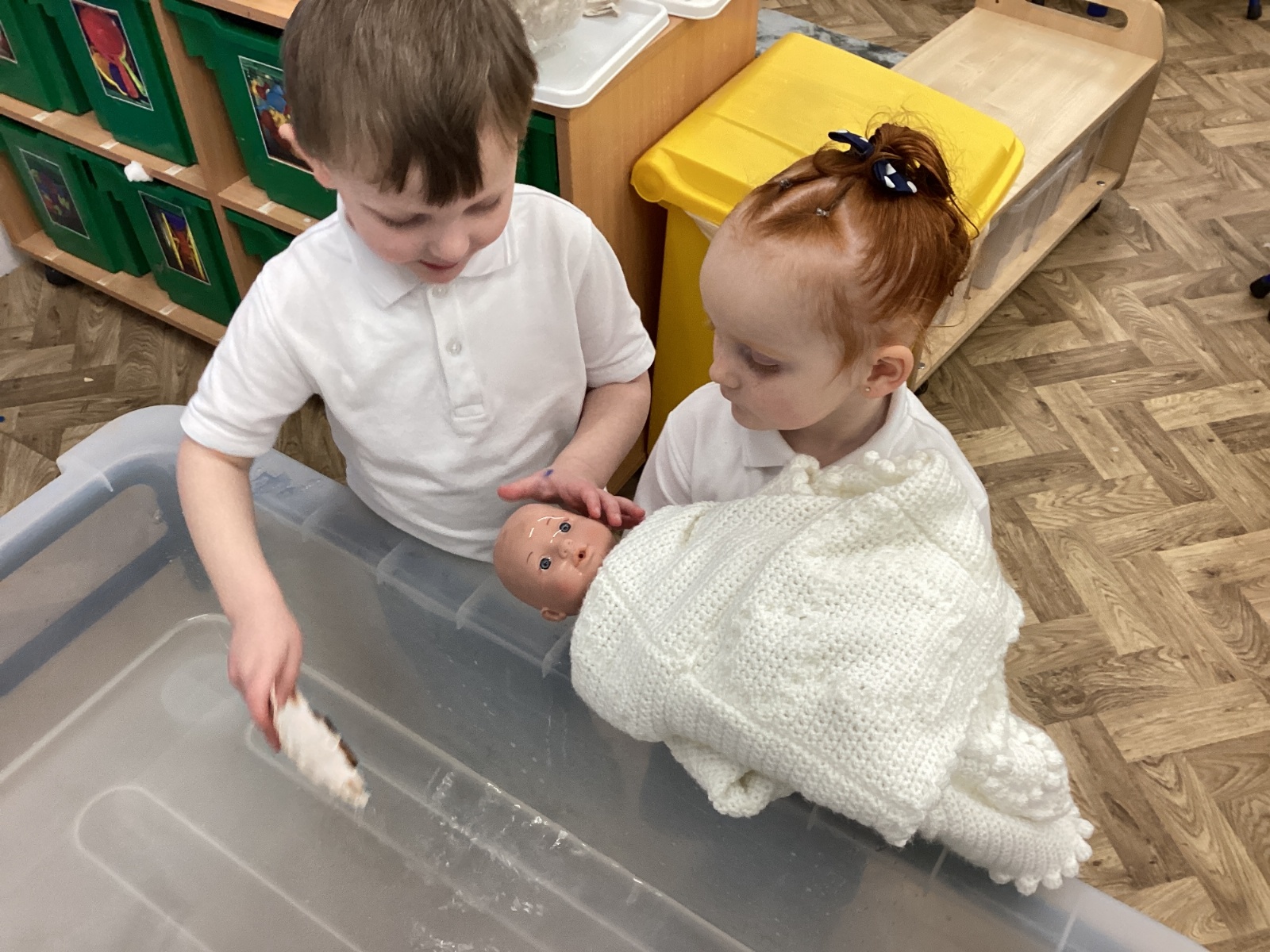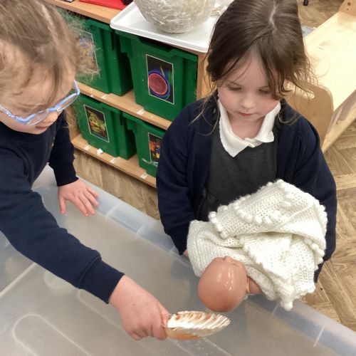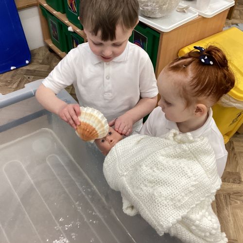 We have been learning about baptism. We re-enacted baptising a baby with holy water and choosing a very special name for them.