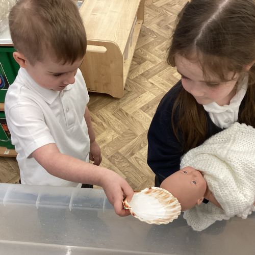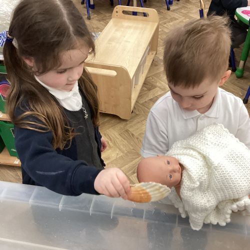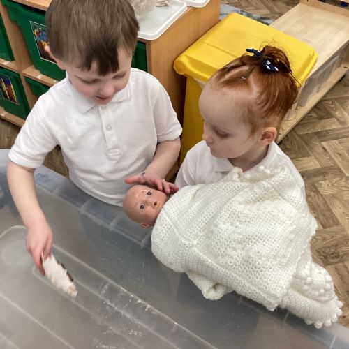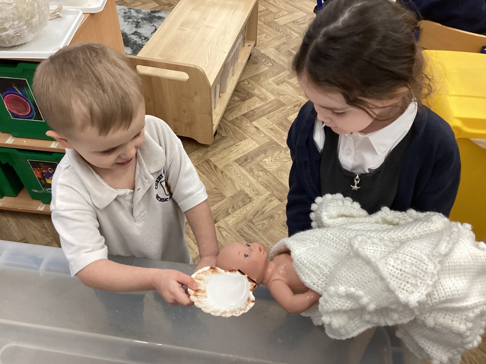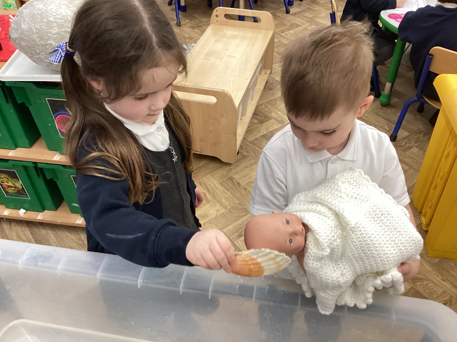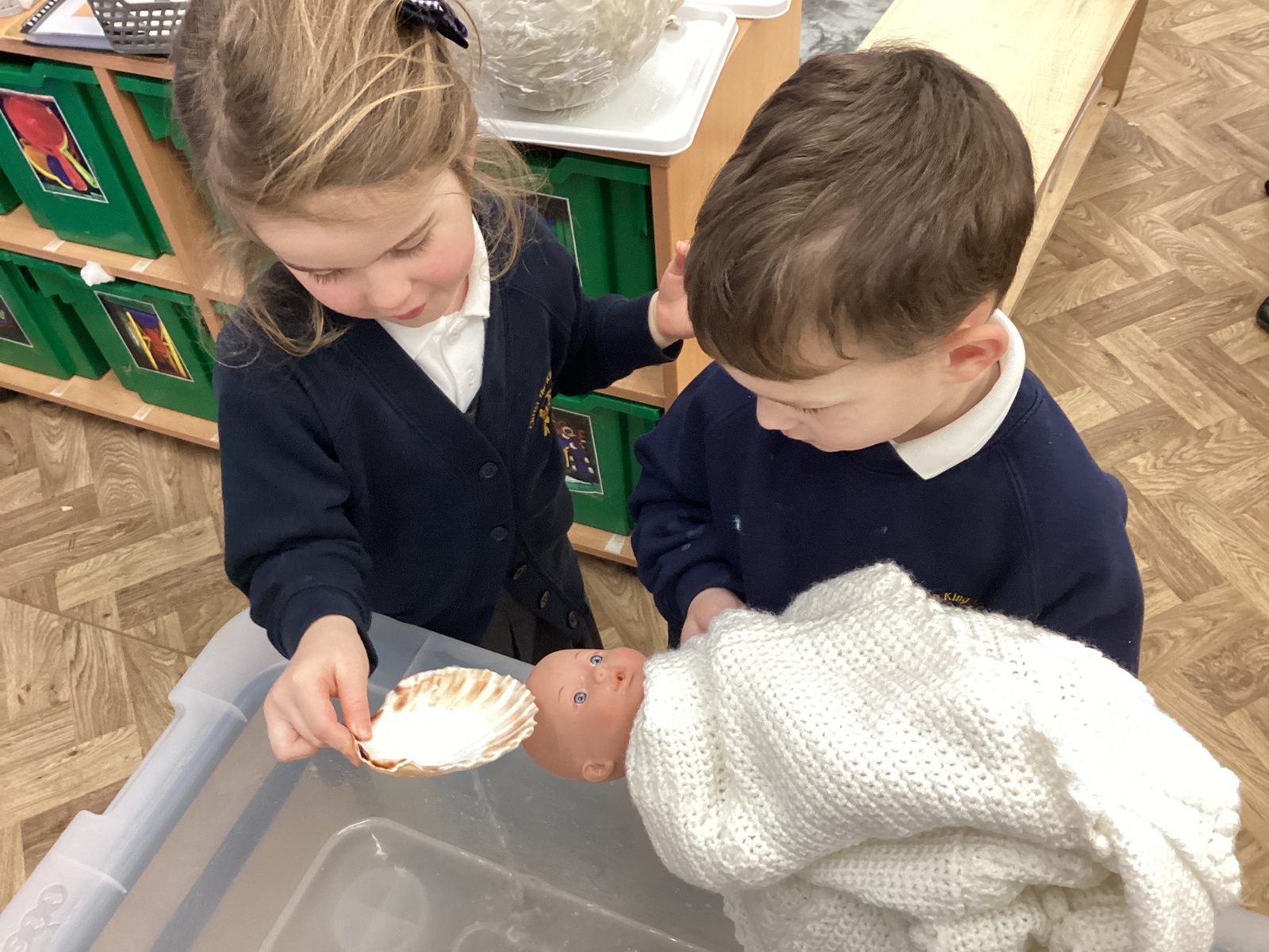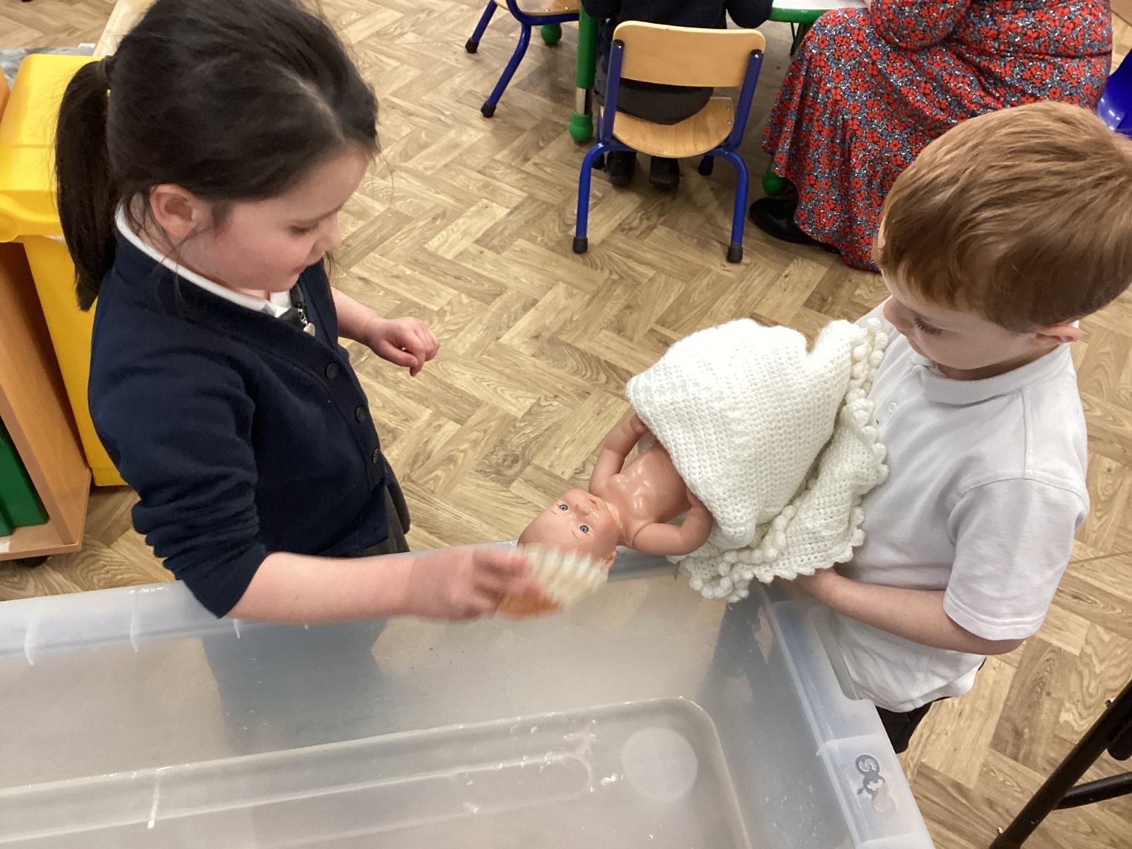We have been learning about baptism. We re-enacted baptising a baby with holy water and choosing a very special name for them.