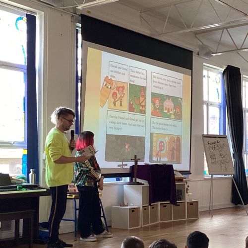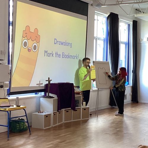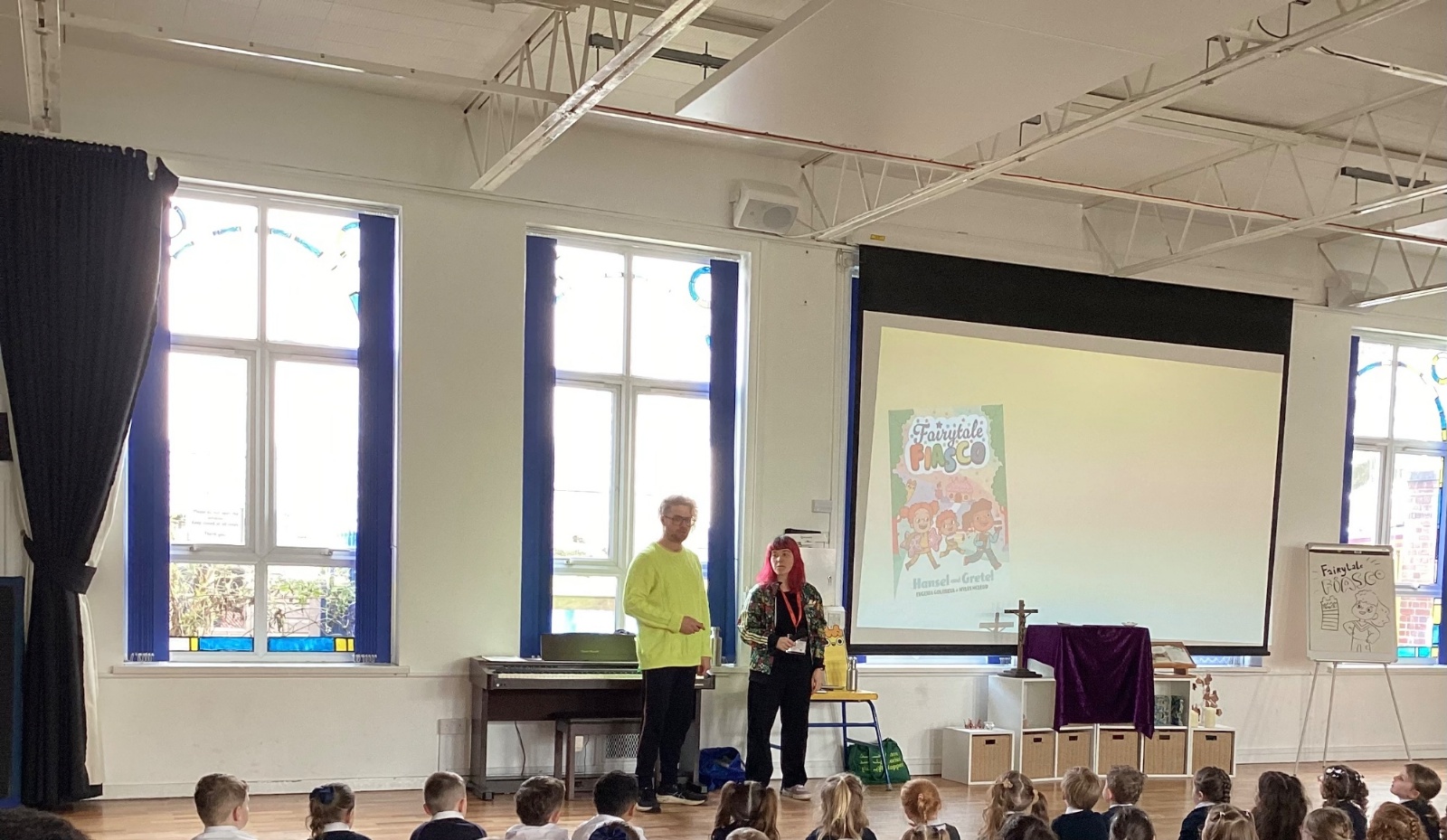 We had a very exciting visit from the authors of the new story, Fairytale Fiasco. We got to hear the new stories and draw our very own characters.