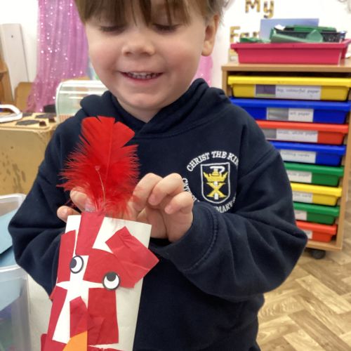 Nursery enjoyed creating their own Little Red Hen using a range of materials.