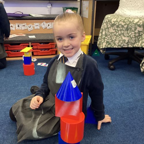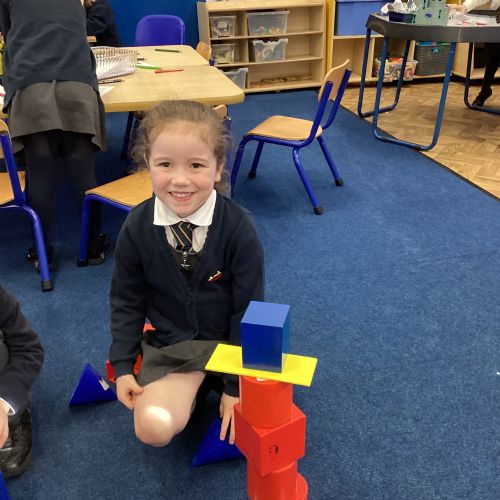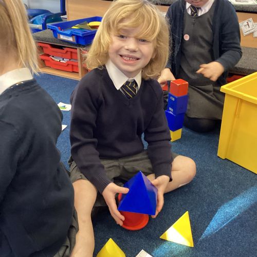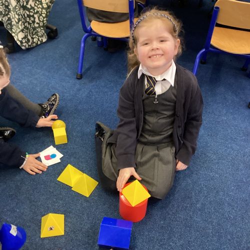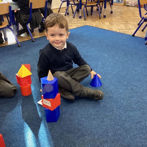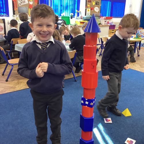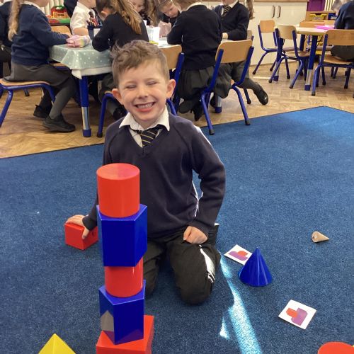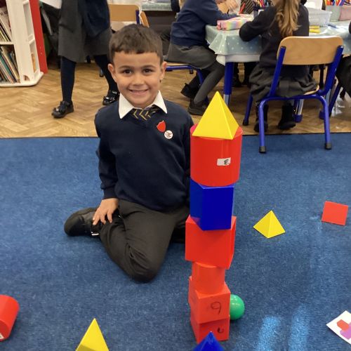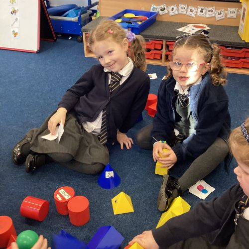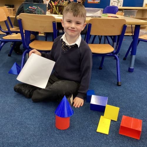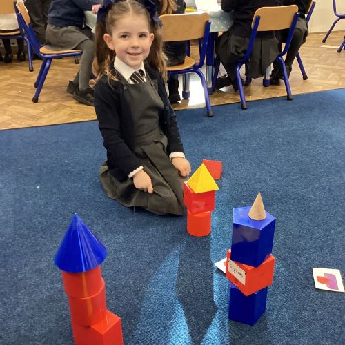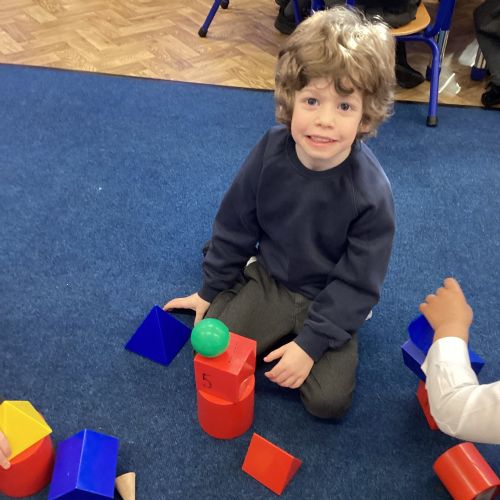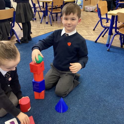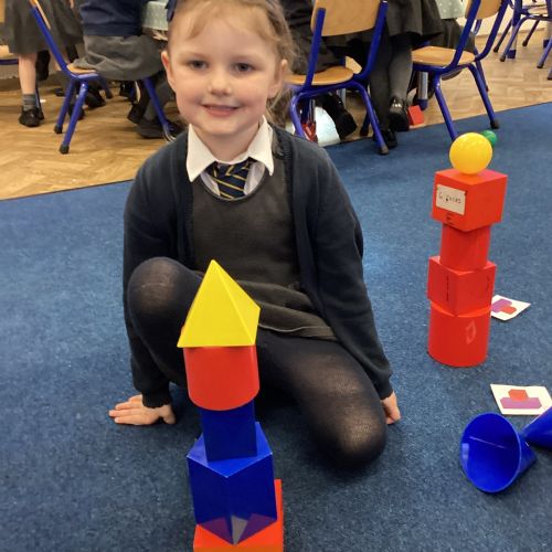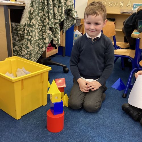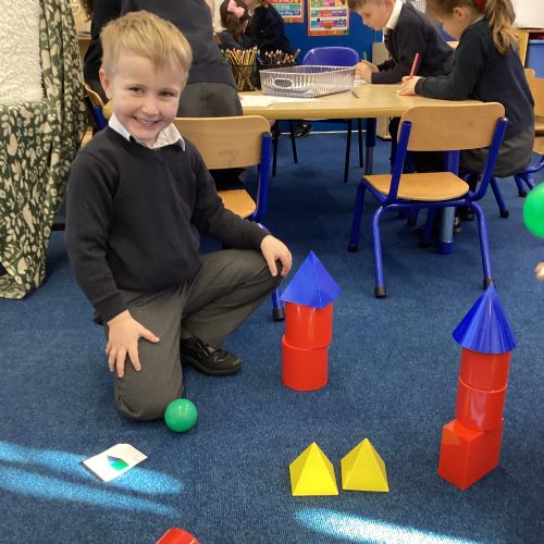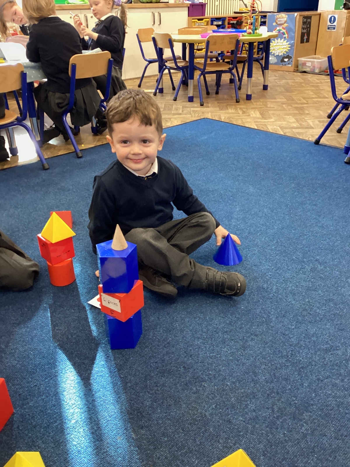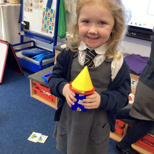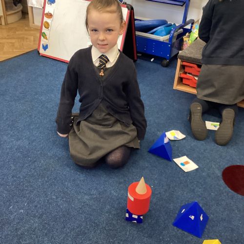 We have been exploring 3D shapes and their properties. We made models using a variety of 3D shapes.
