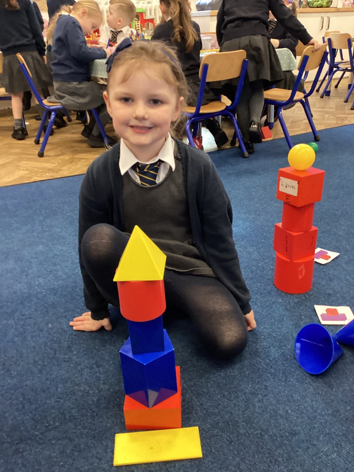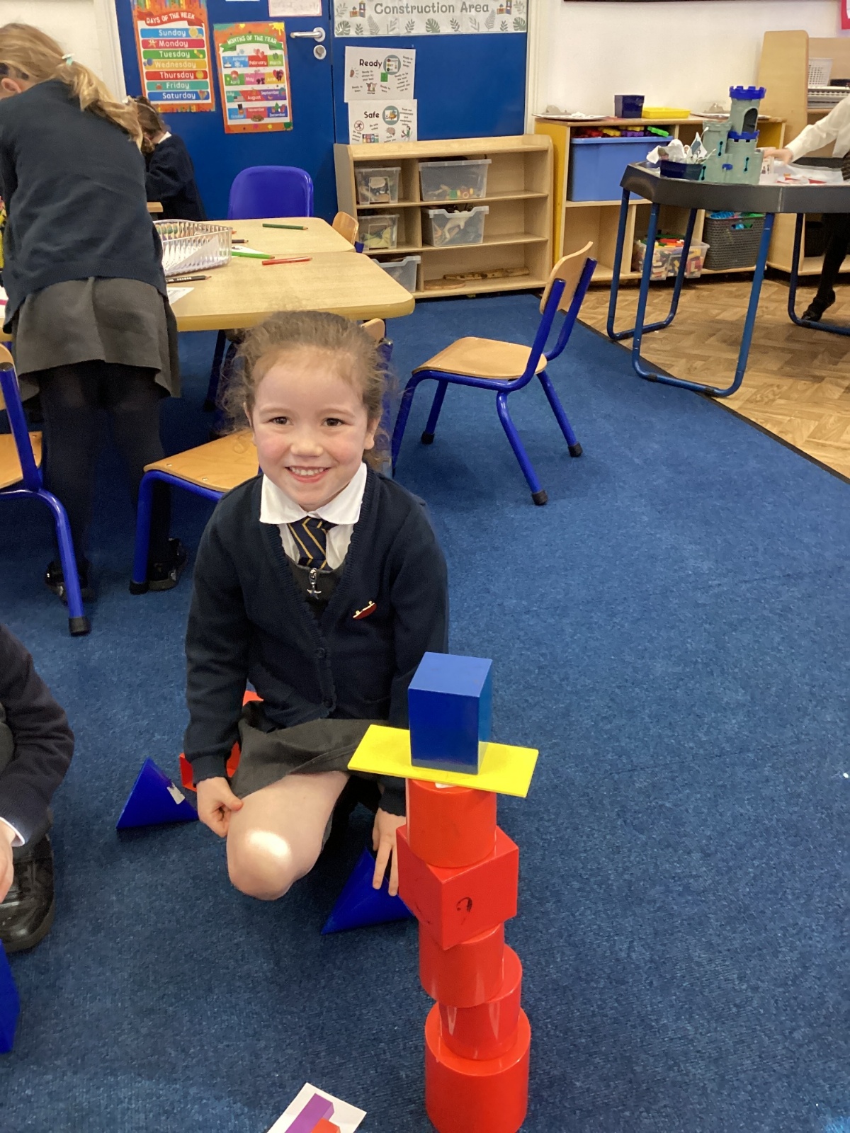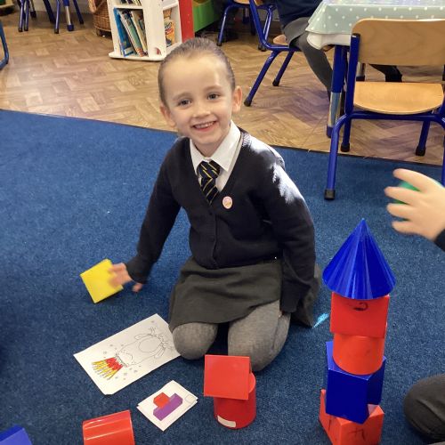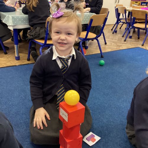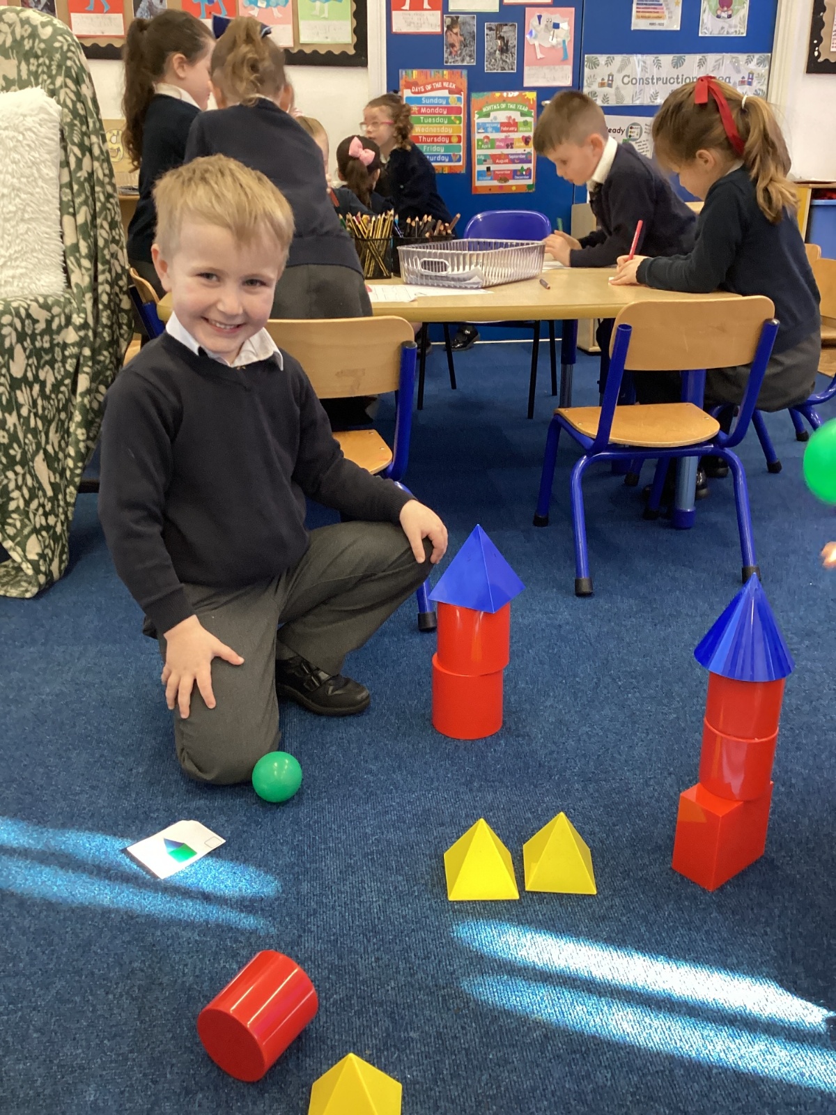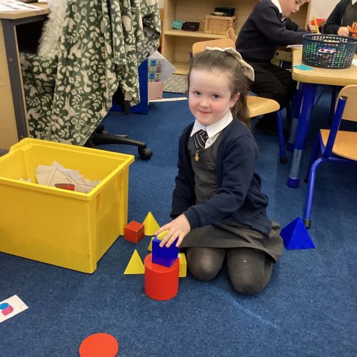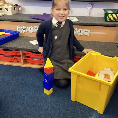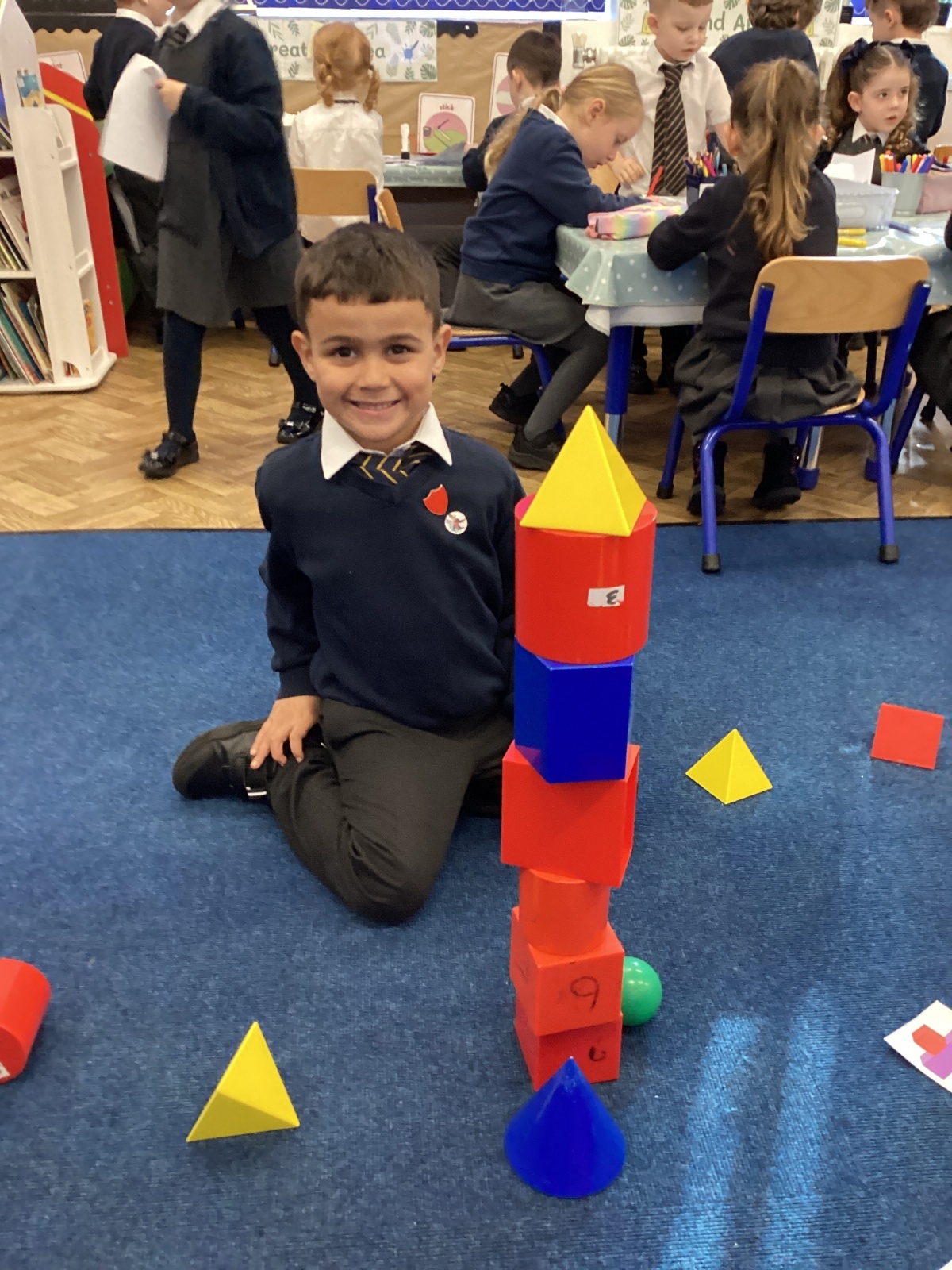 We have been exploring 3D shapes and their properties. We made models using a variety of 3D shapes.