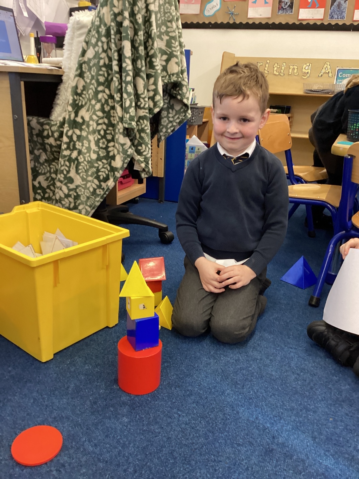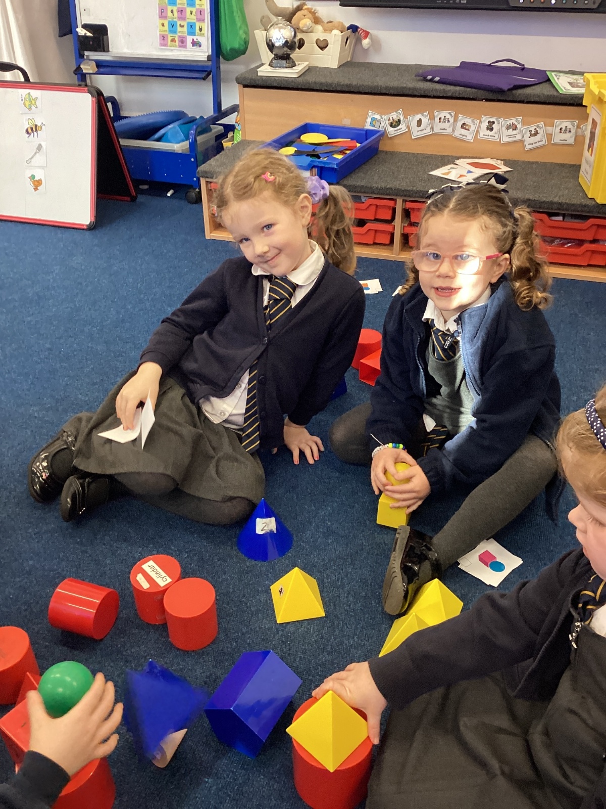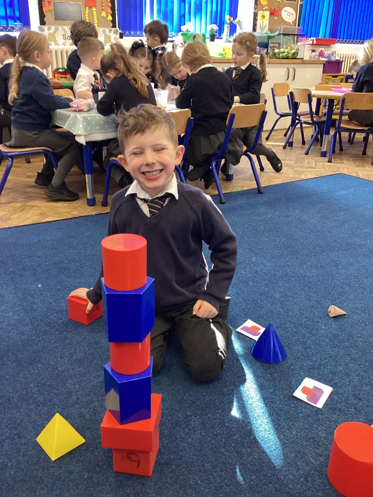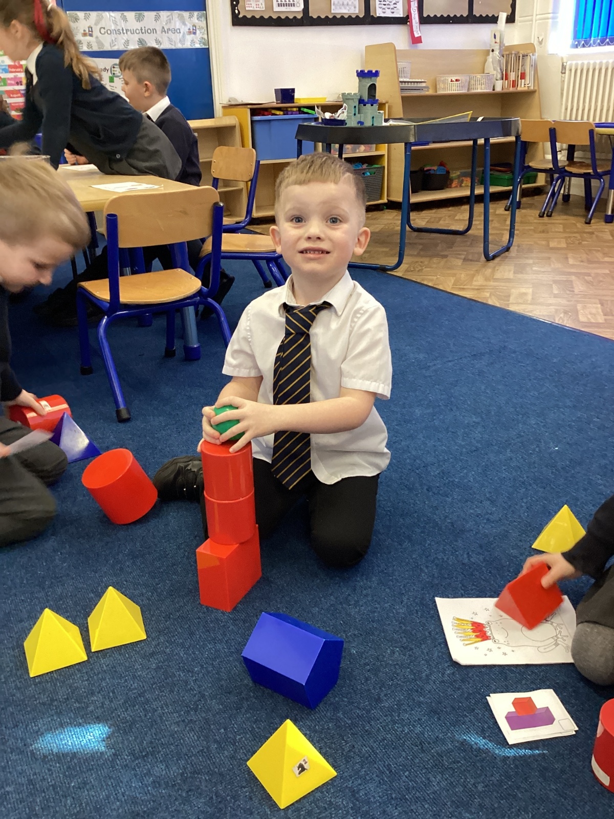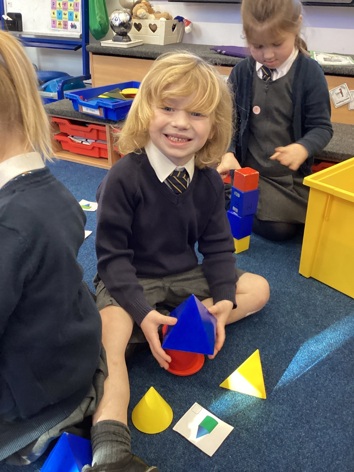 We have been exploring 3D shapes and their properties. We made models using a variety of 3D shapes.