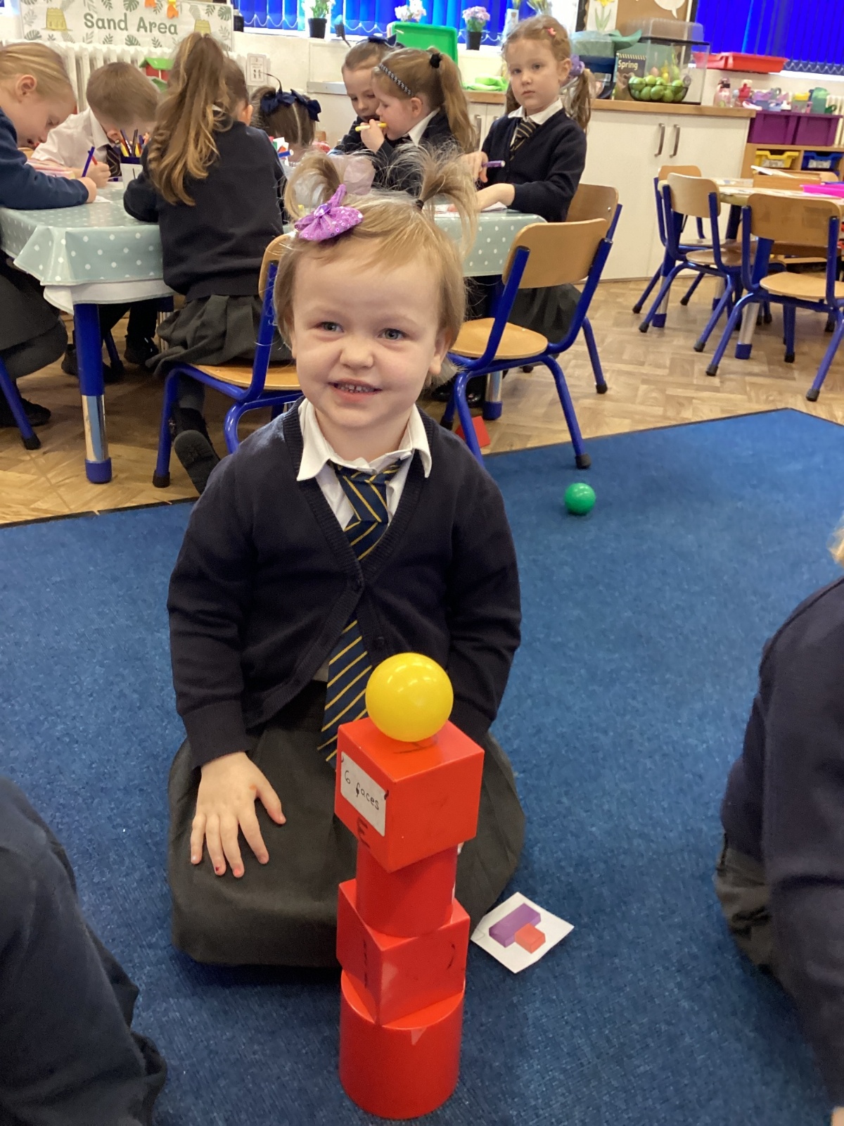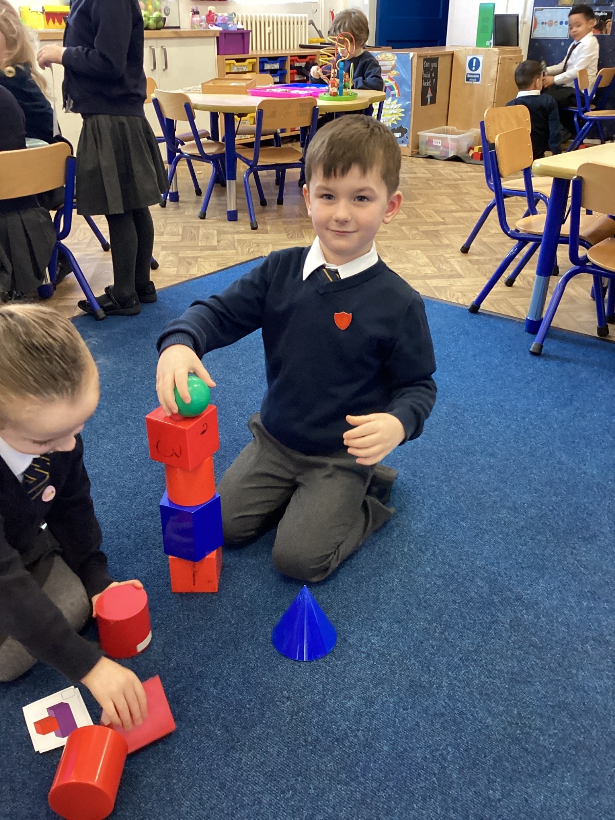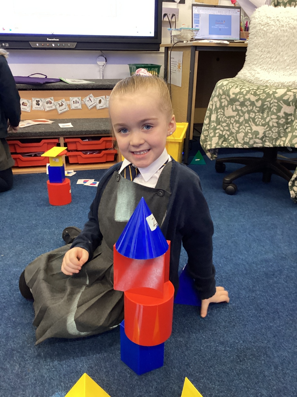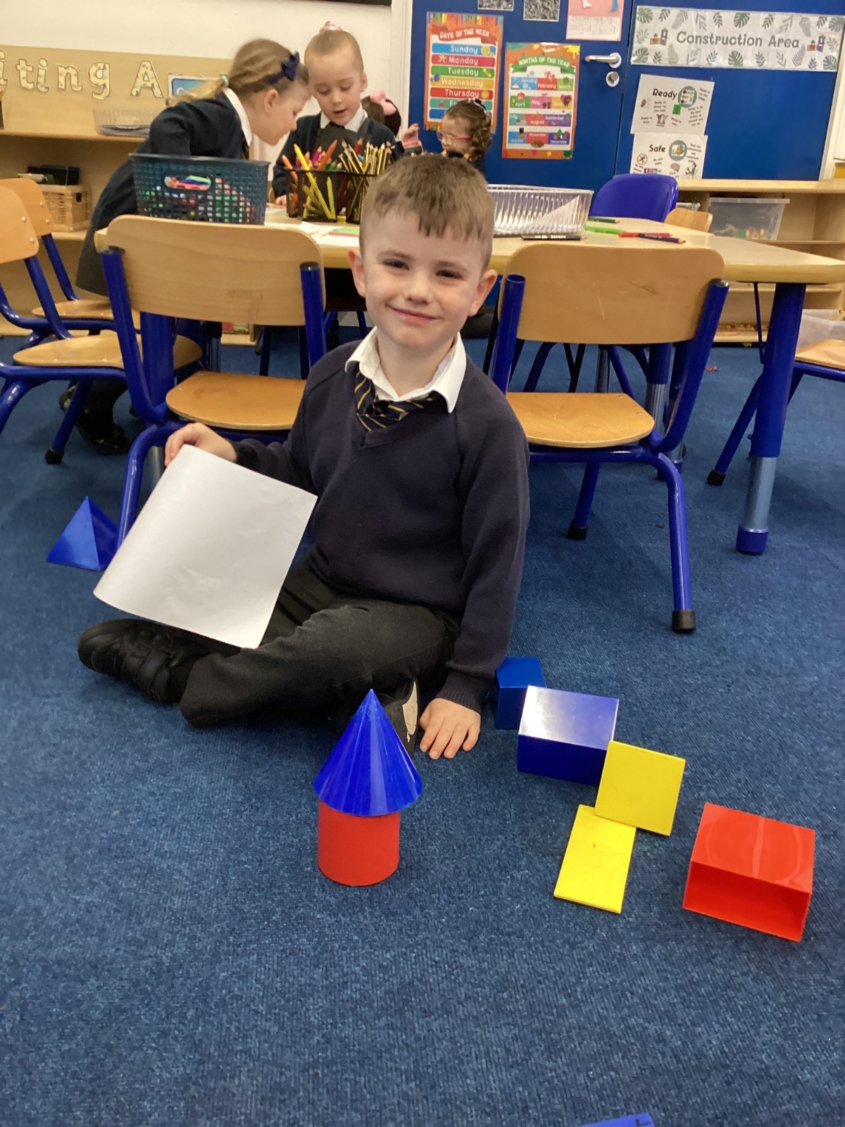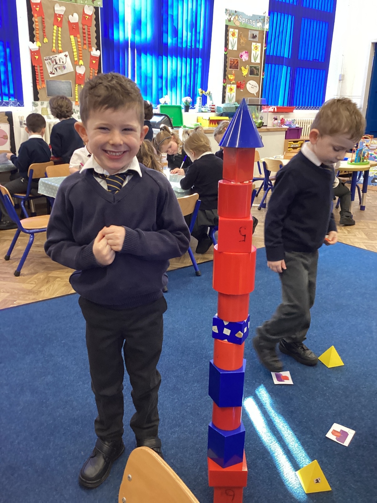 We have been exploring 3D shapes and their properties. We made models using a variety of 3D shapes.