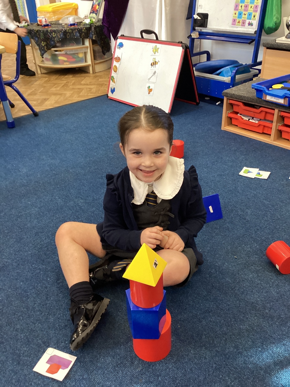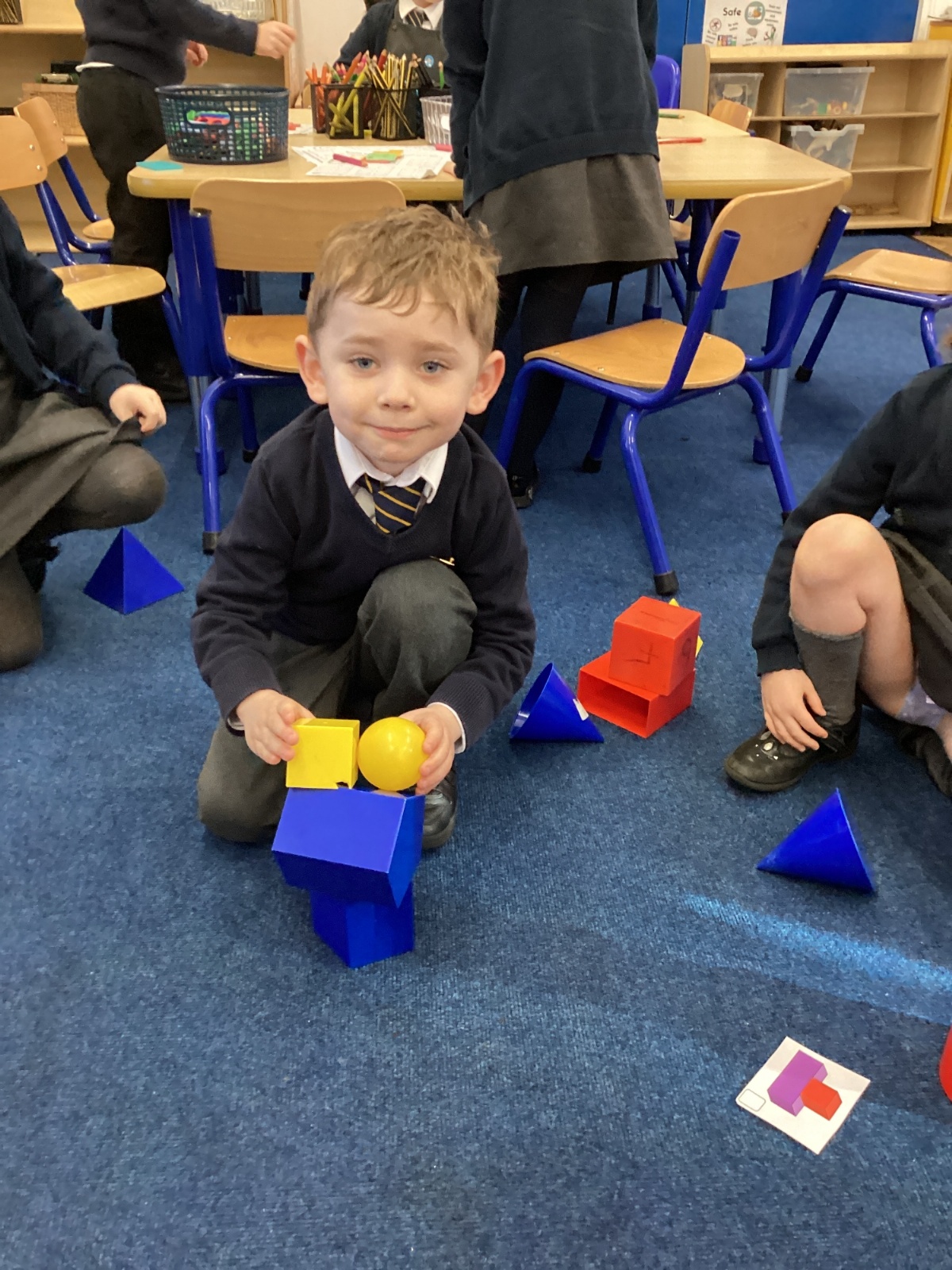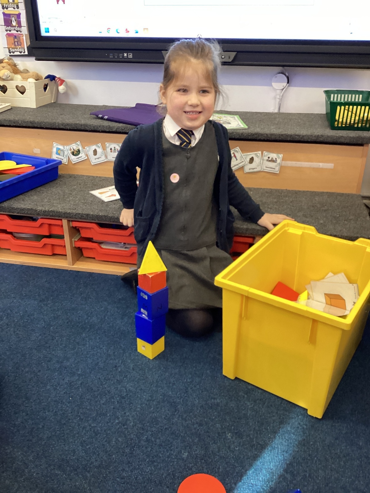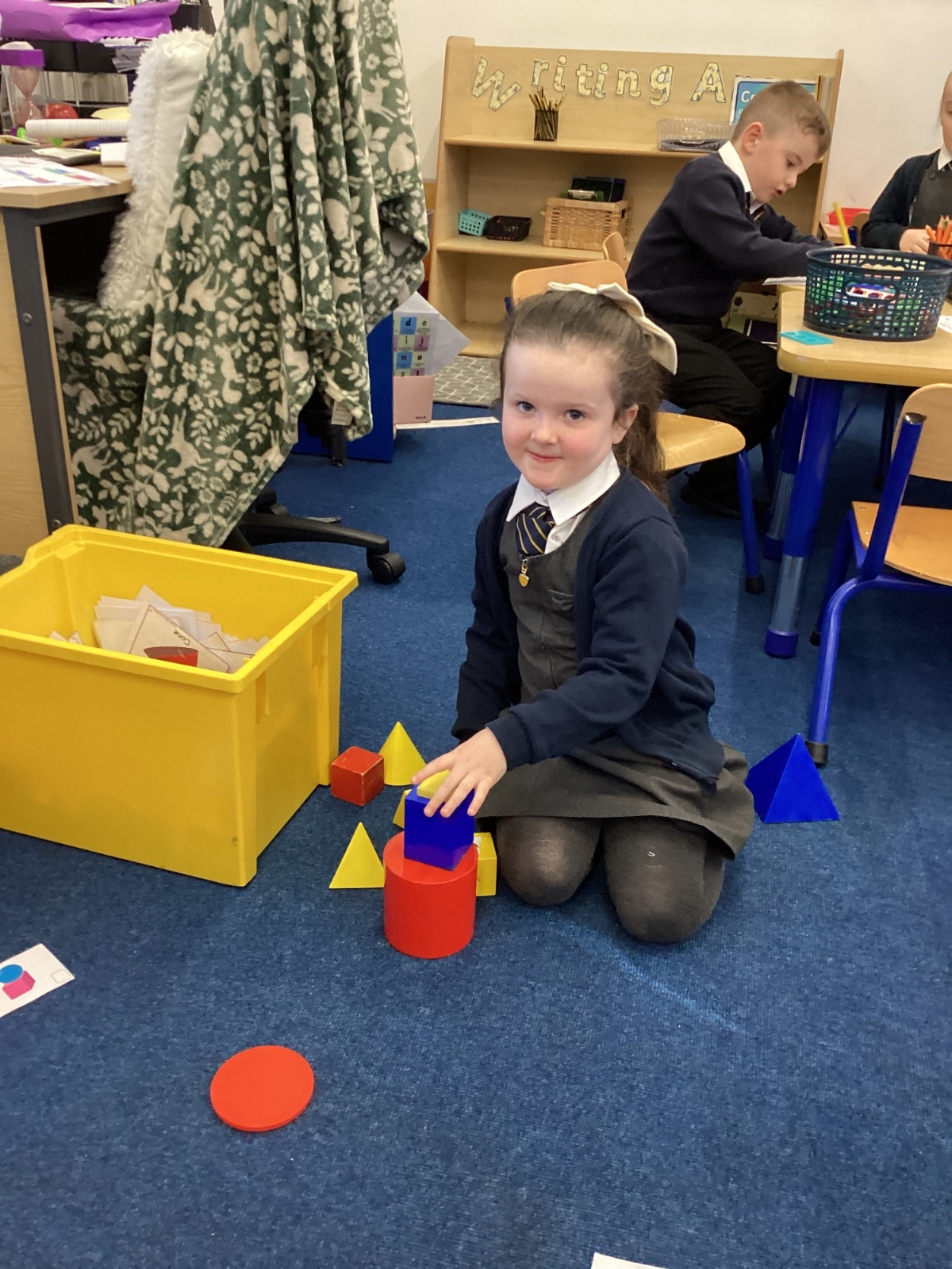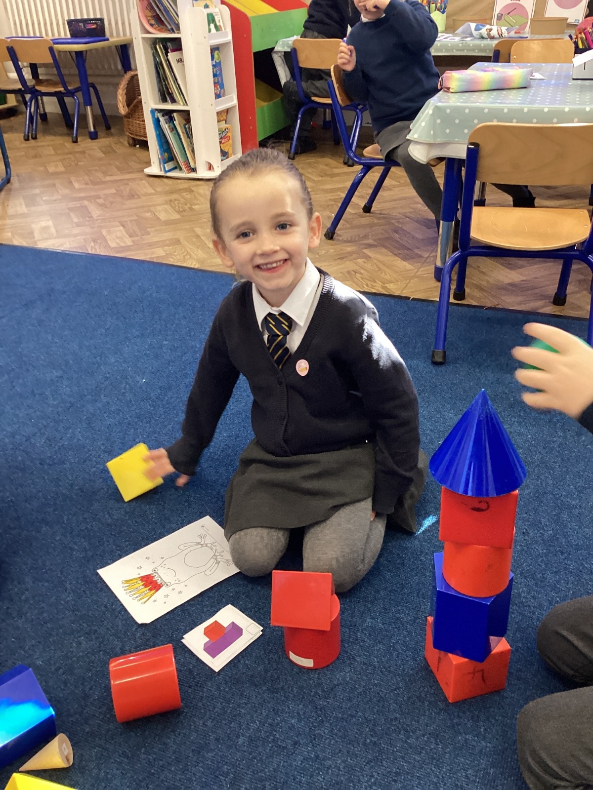 We have been exploring 3D shapes and their properties. We made models using a variety of 3D shapes.