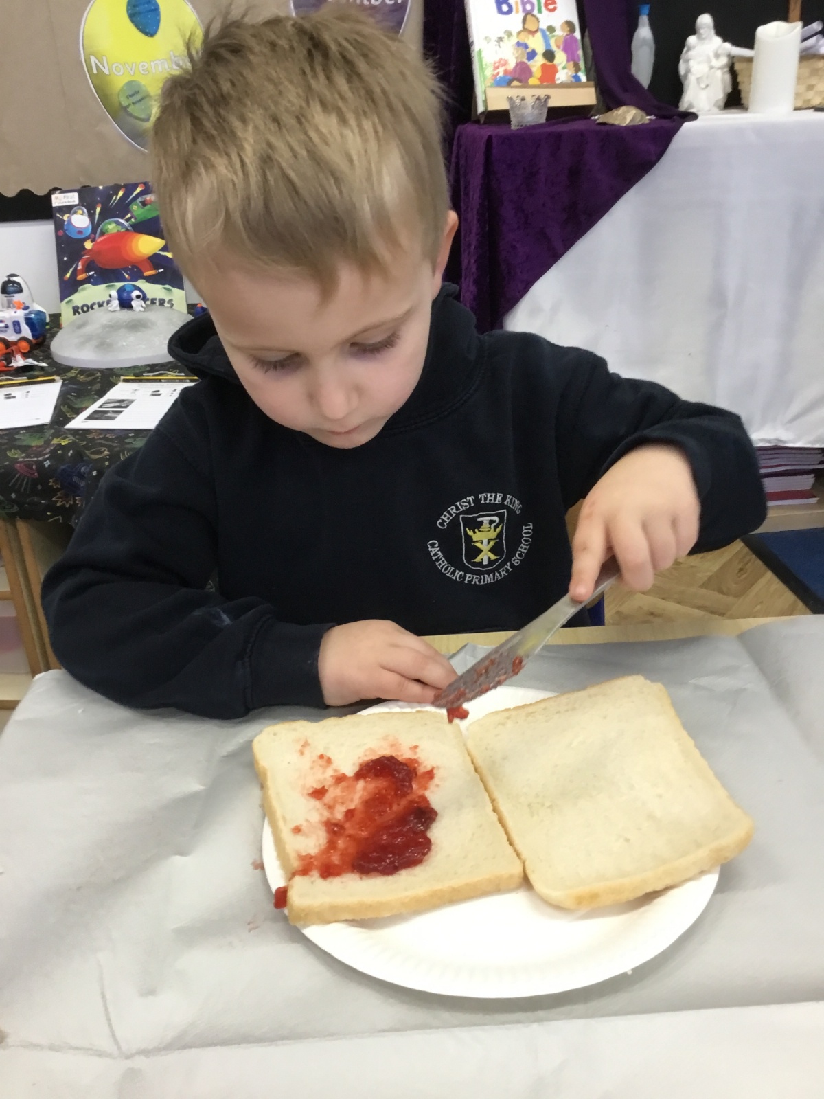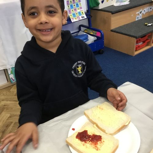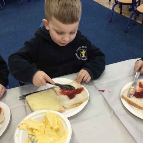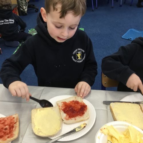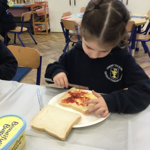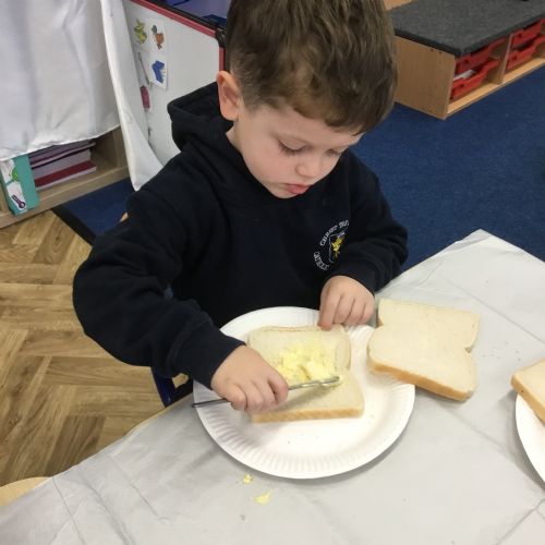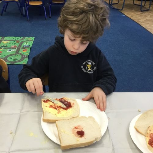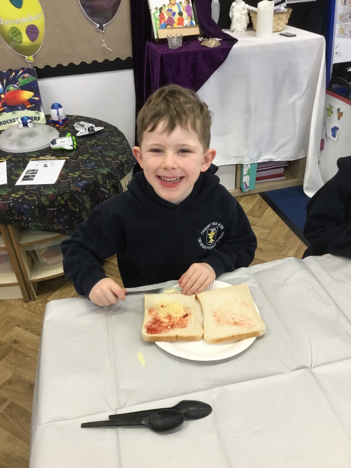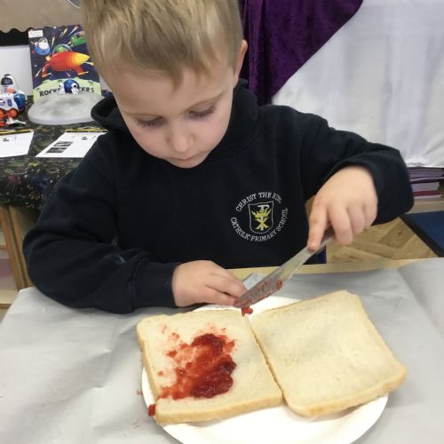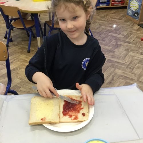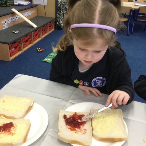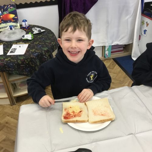 After reading the story, Whatever Next by Jill Murphy, we decided to have our own picnic on the moon - just like Baby Bear. We made our own sandwiches and took them into space!