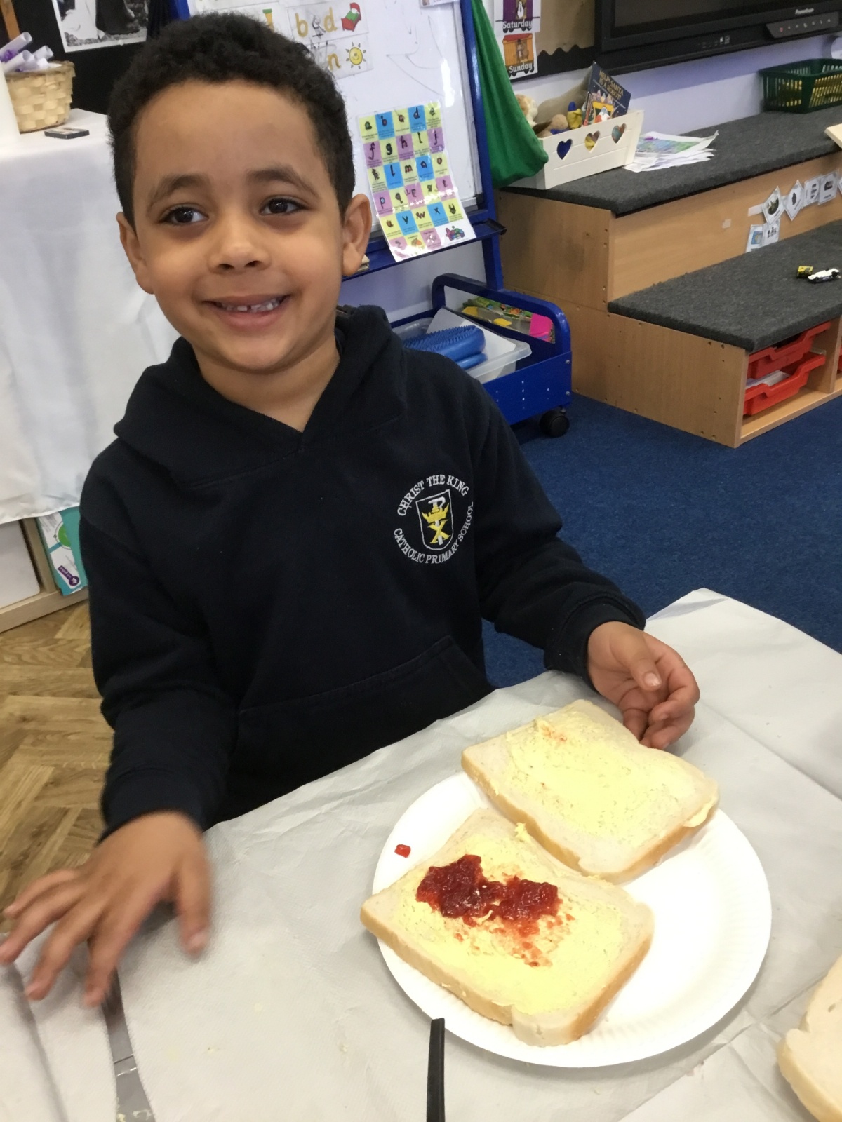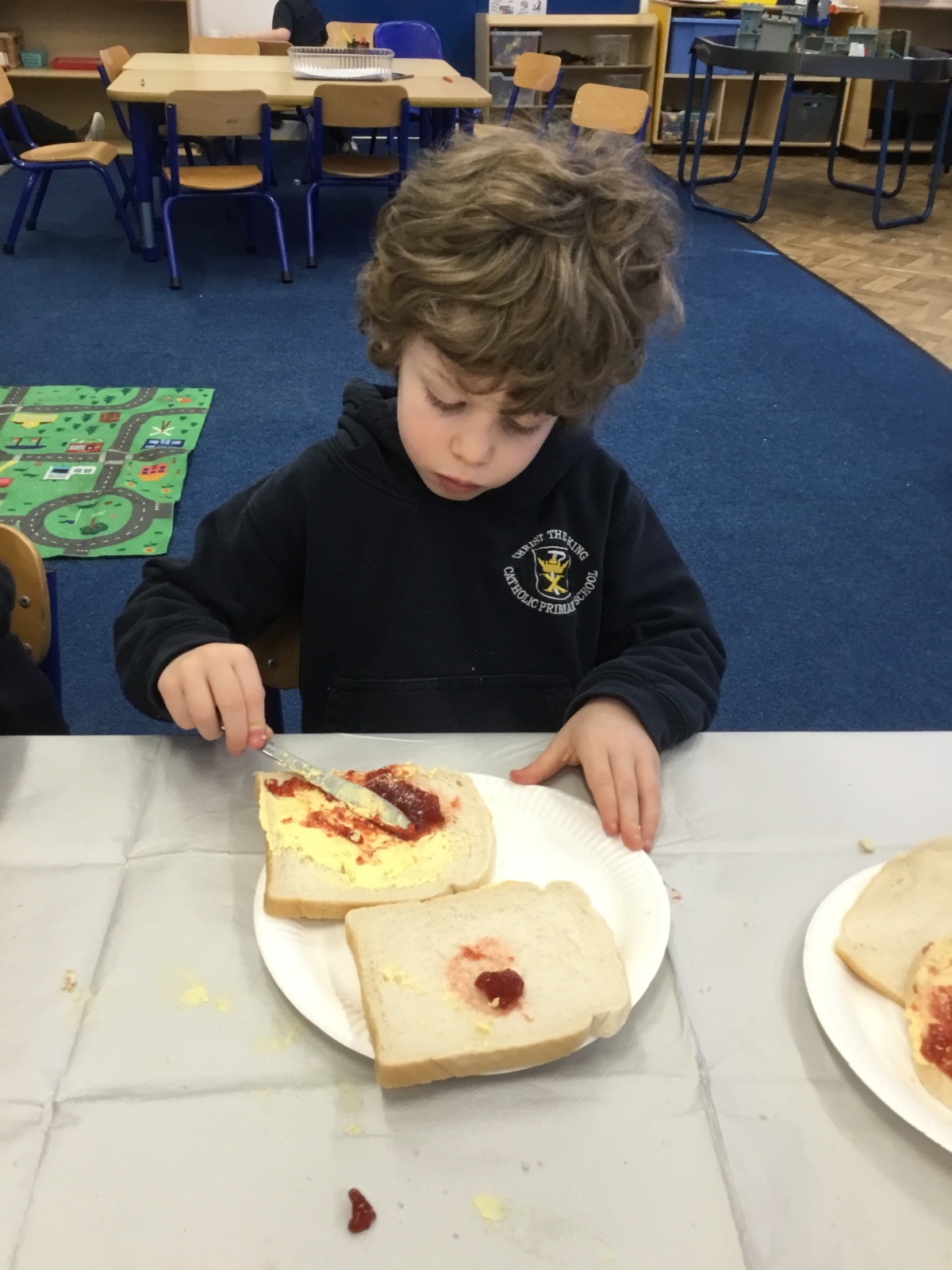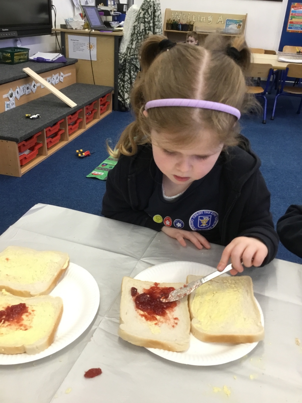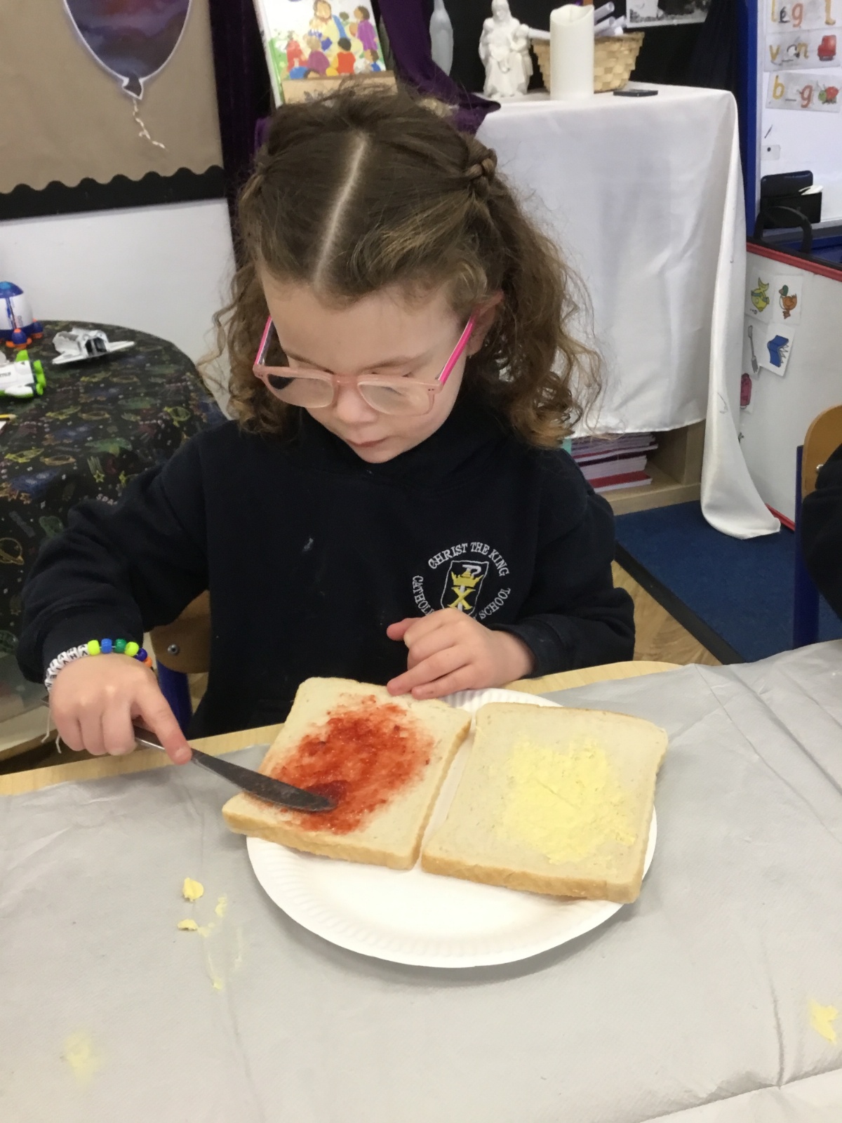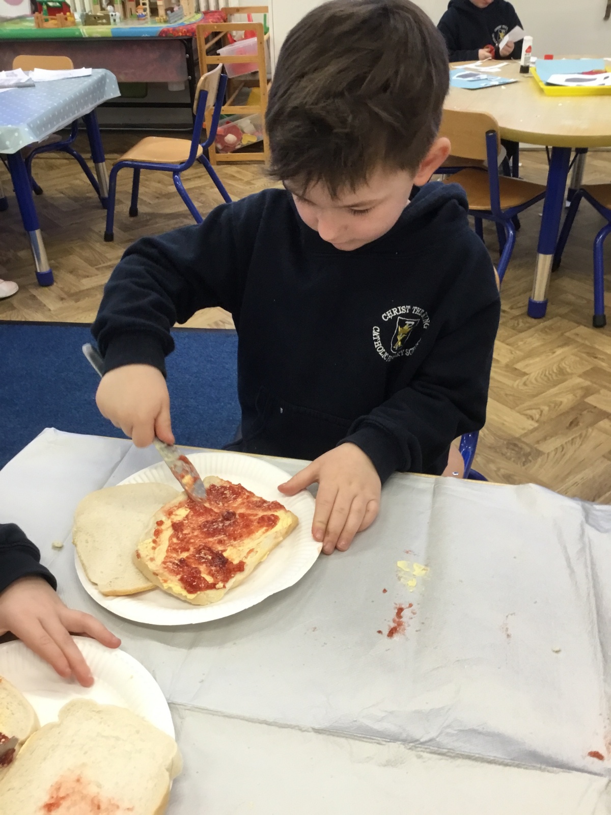 After reading the story, Whatever Next by Jill Murphy, we decided to have our own picnic on the moon - just like Baby Bear. We made our own sandwiches and took them into space!