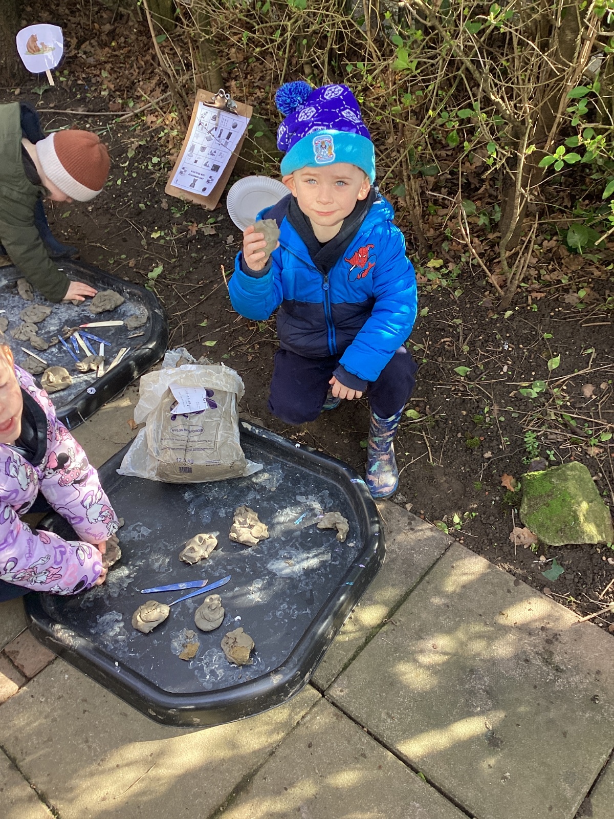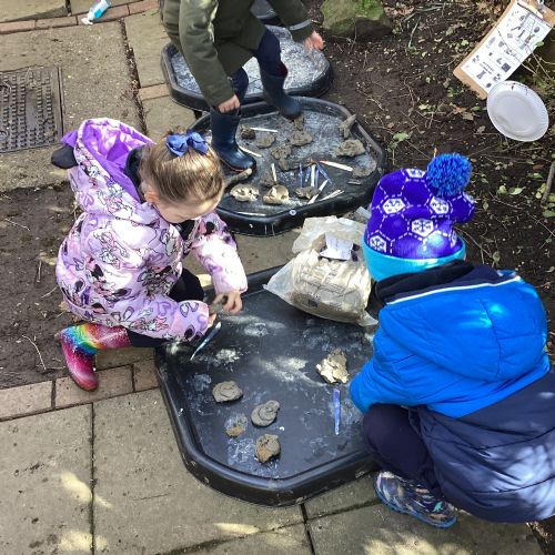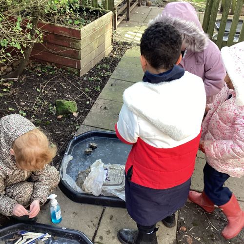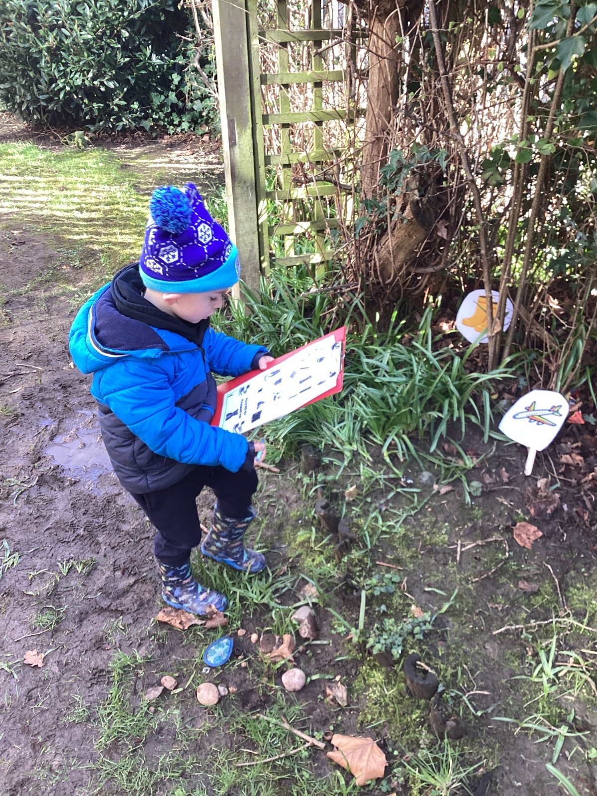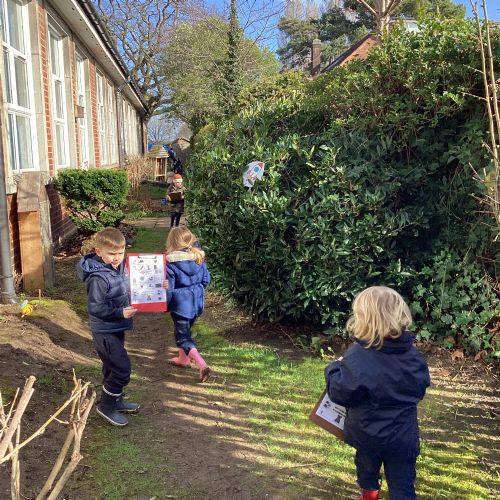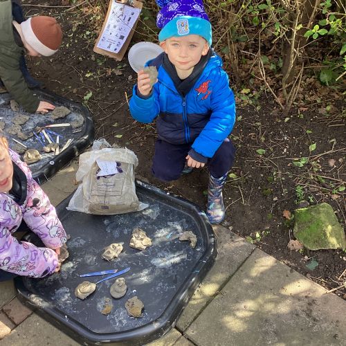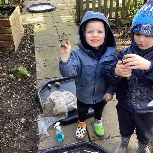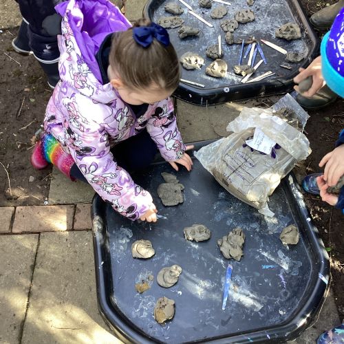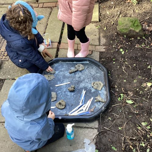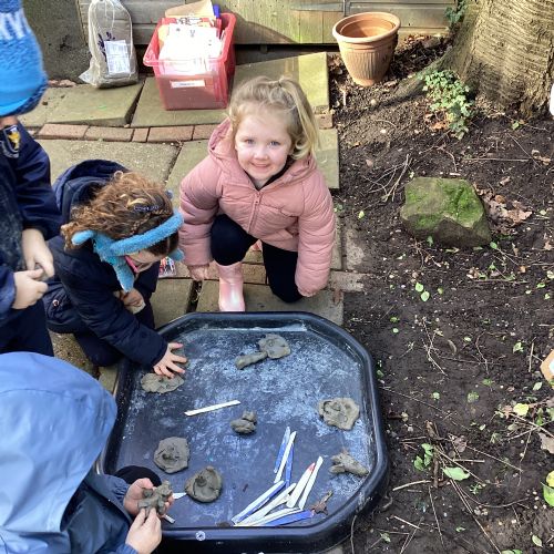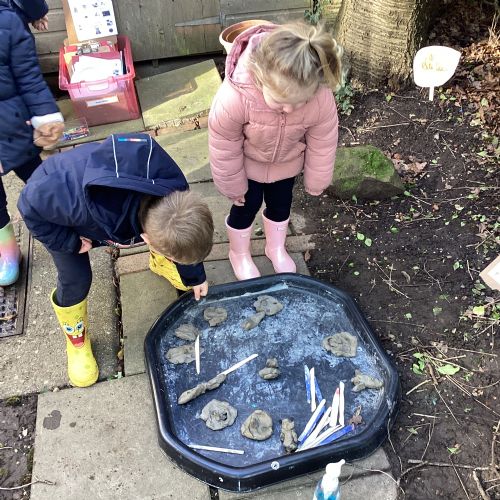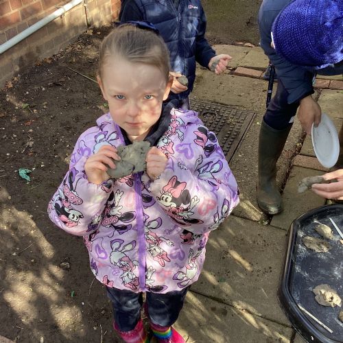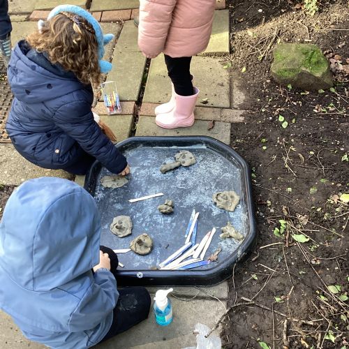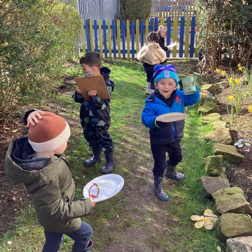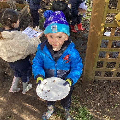 For our forest school morning, we did lots of activities linked to our core story, Whatever Next. We completed a scavenger hunt, made moon faces and rockets out of clay and made a picnic using natural objects. What a fun morning!