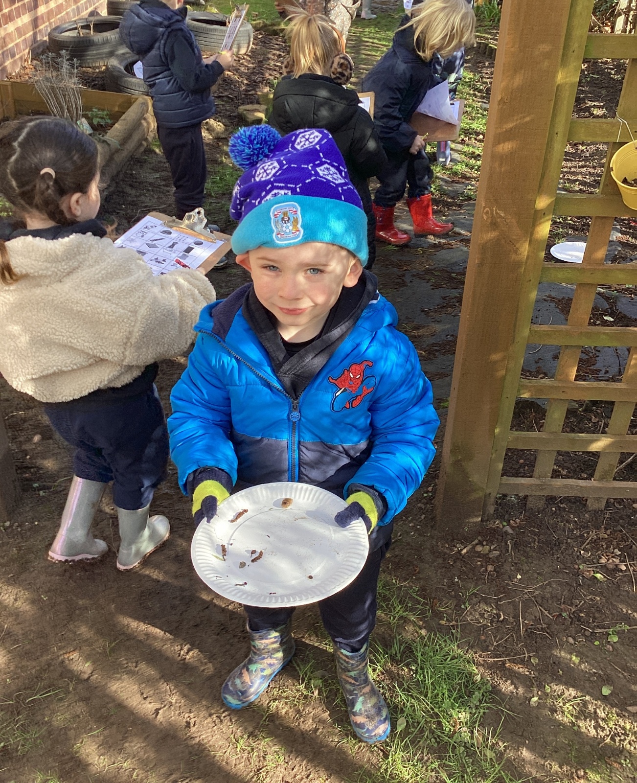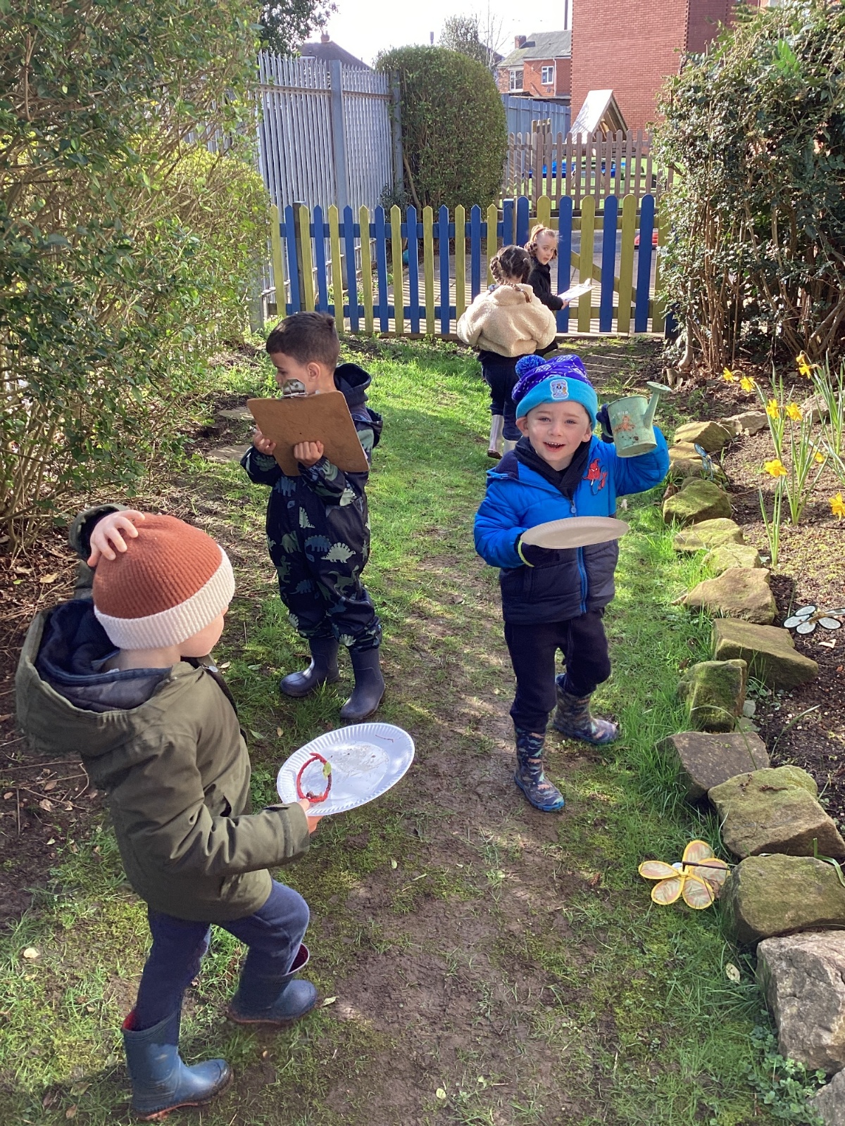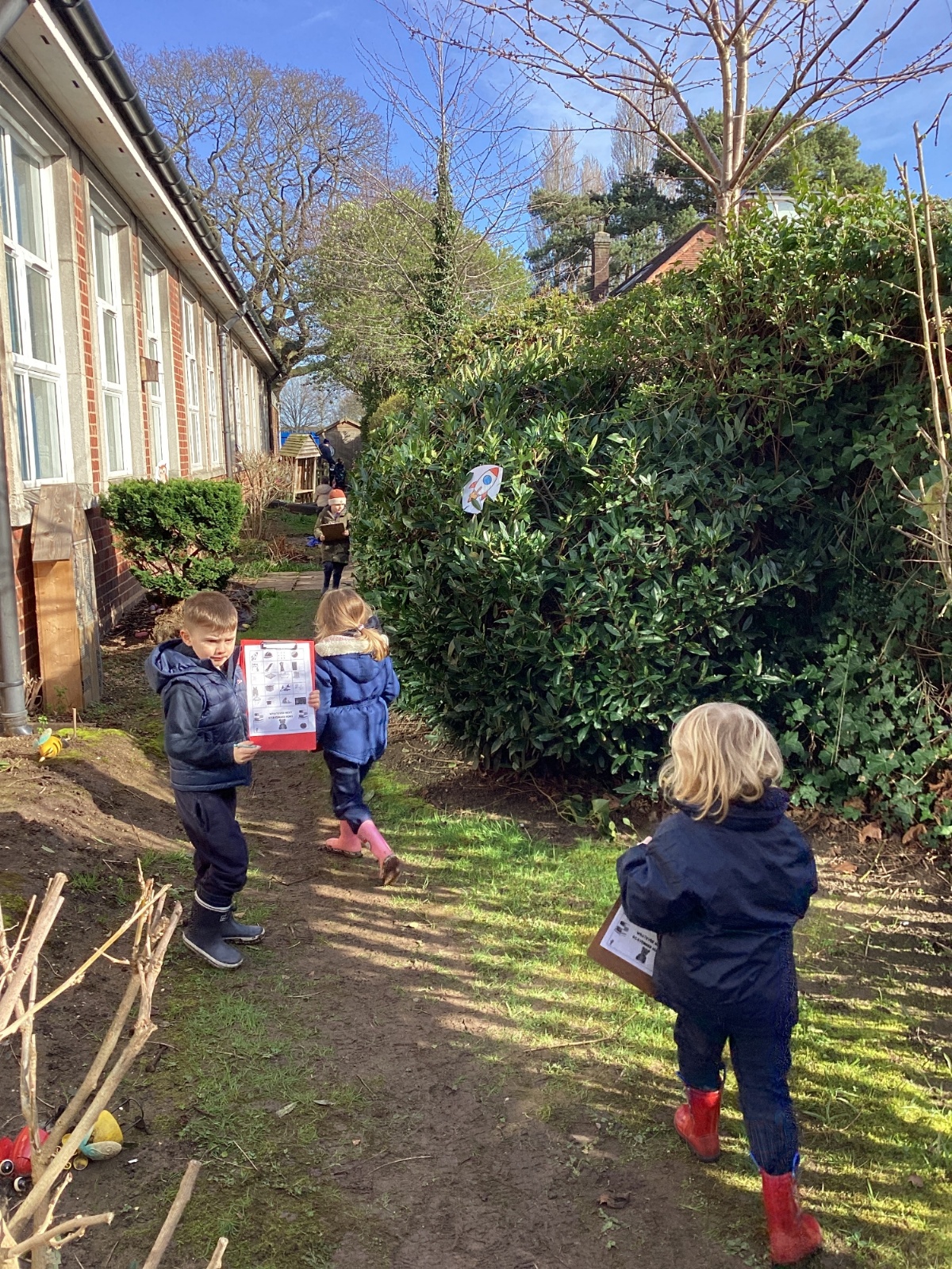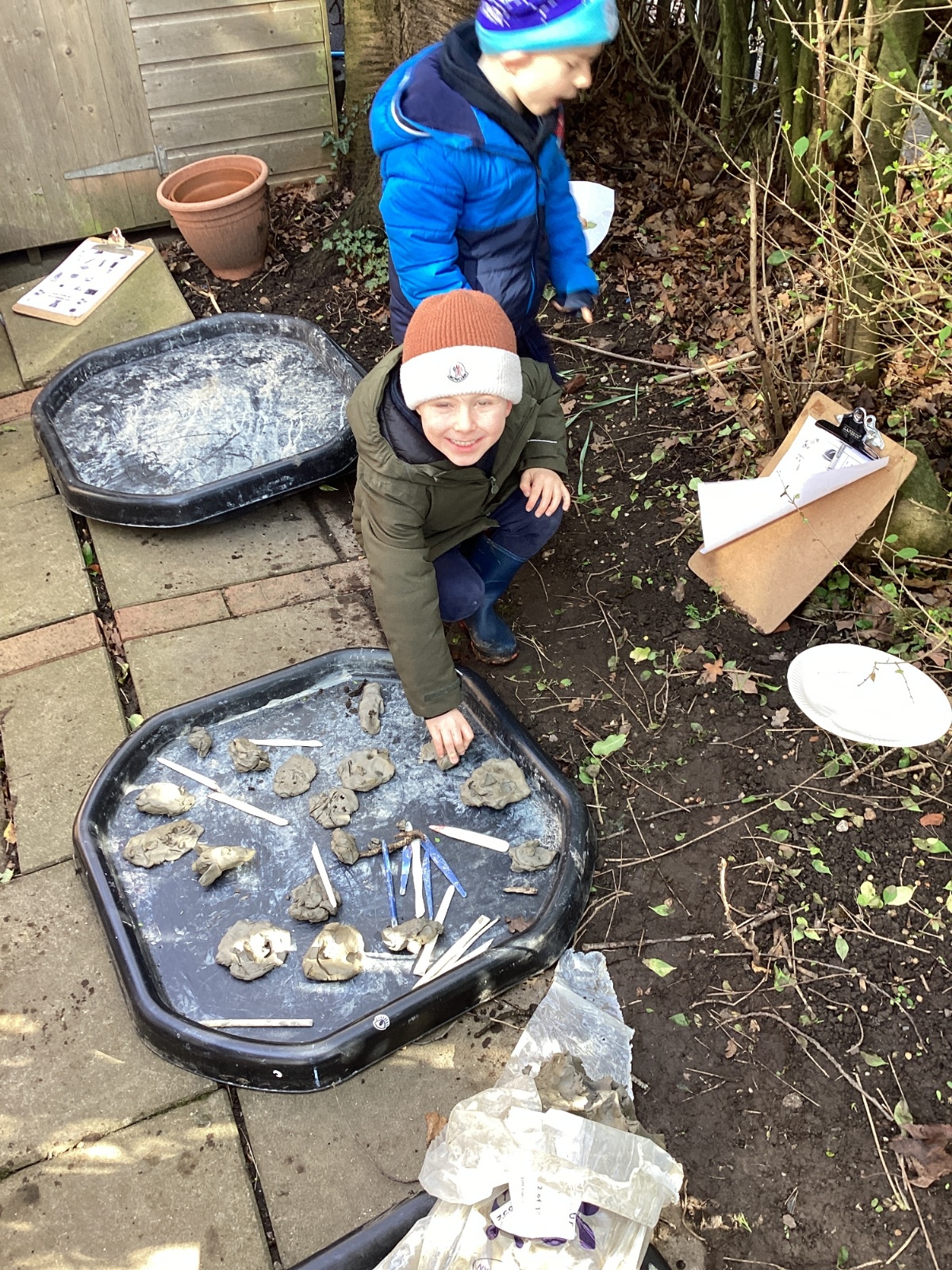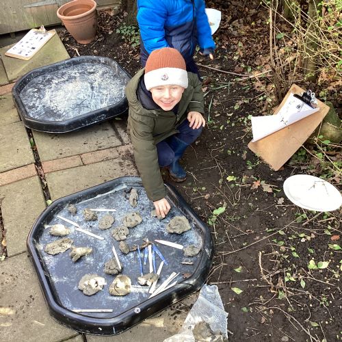 For our forest school morning, we did lots of activities linked to our core story, Whatever Next. We completed a scavenger hunt, made moon faces and rockets out of clay and made a picnic using natural objects. What a fun morning!