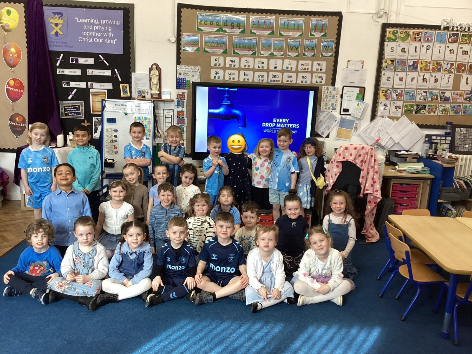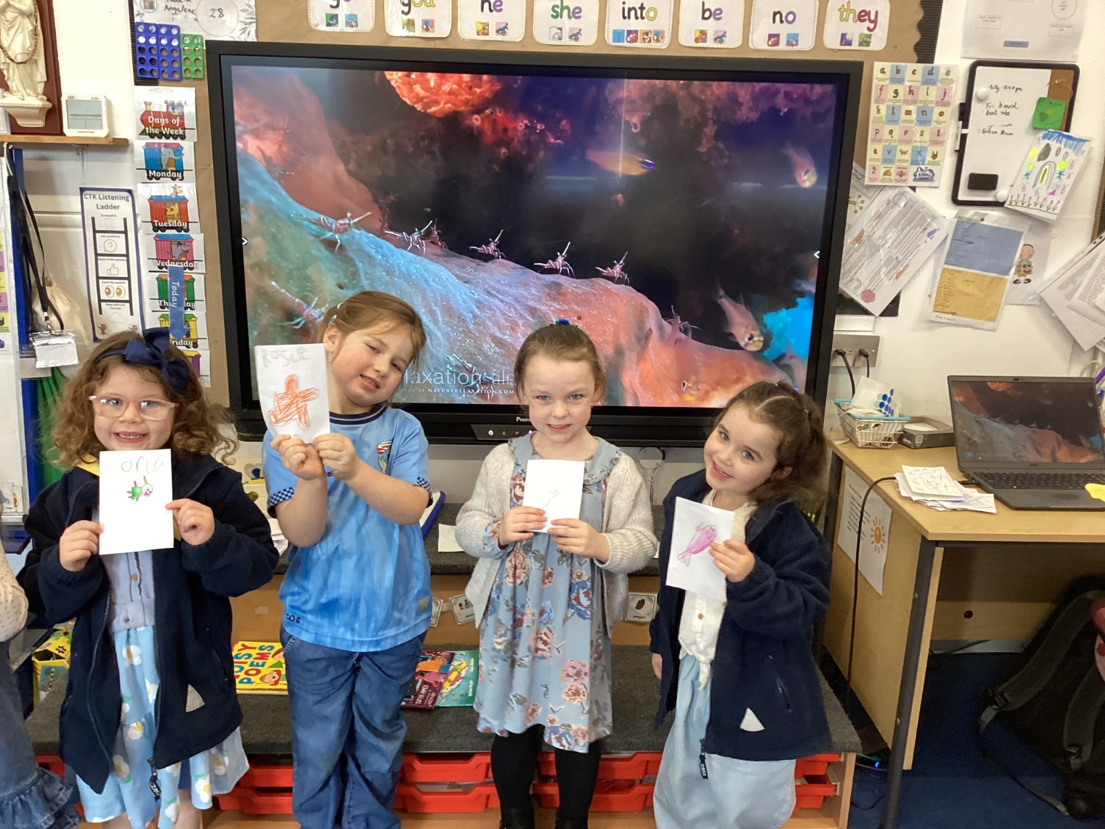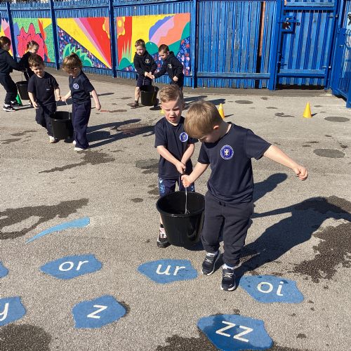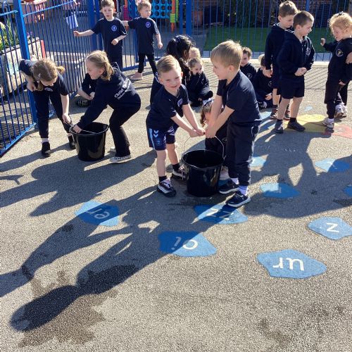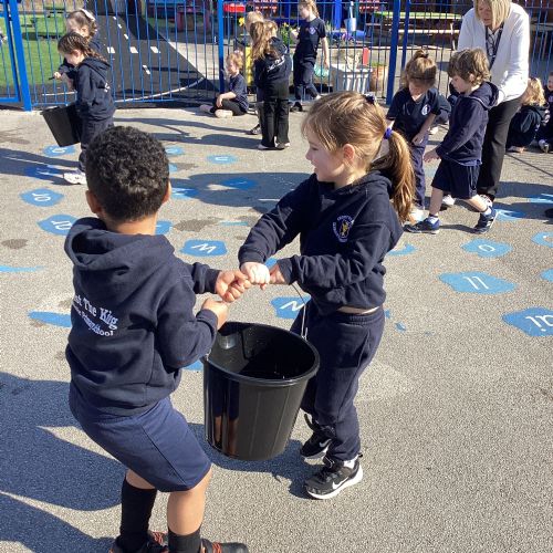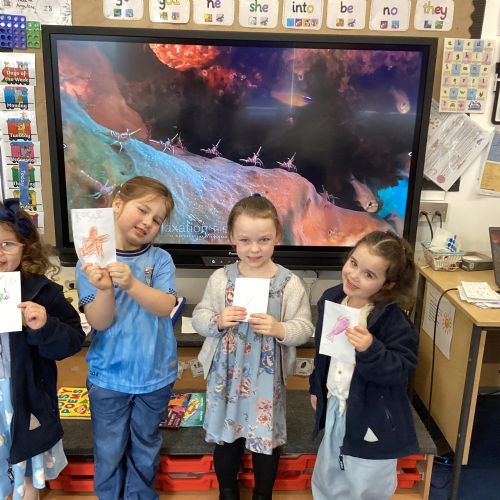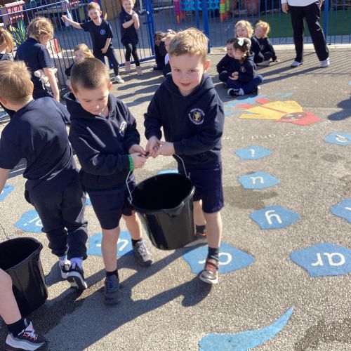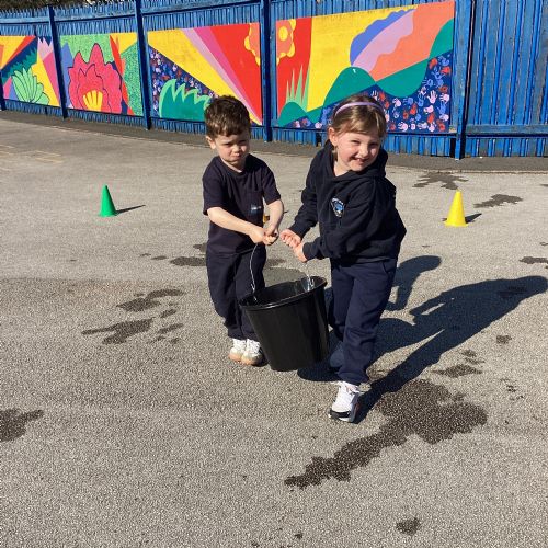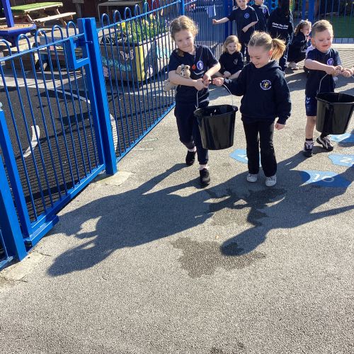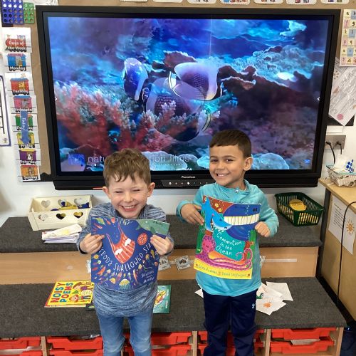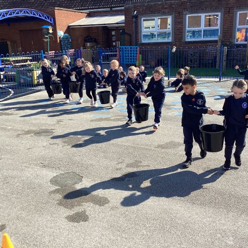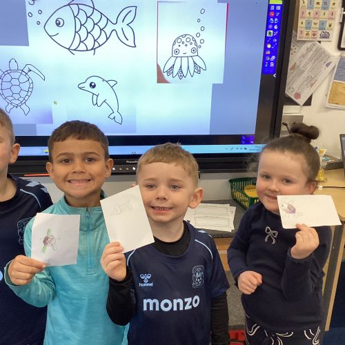 We celebrated World Water Day with a range of activities to raise awareness about the importance of making clean water accessible to everyone. We took part in water awareness activities and thought about how far some people have to travel to get water. We dressed in blue for World Water Day and after reading Commotion in the Ocean, we drew pictures of our favourite sea creatures for a collaborative art activity.