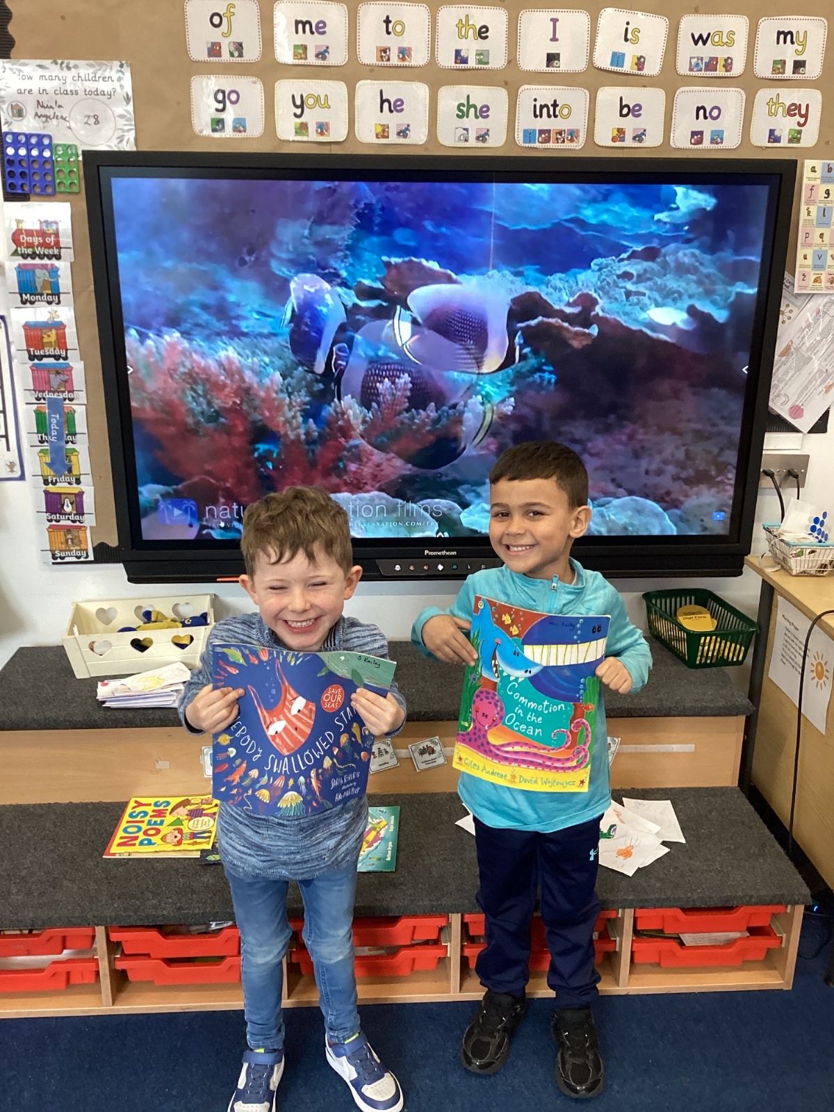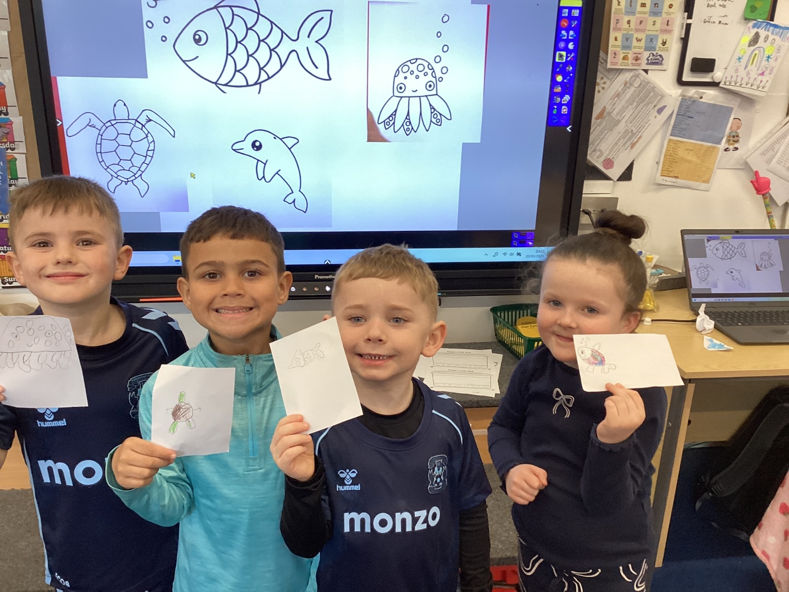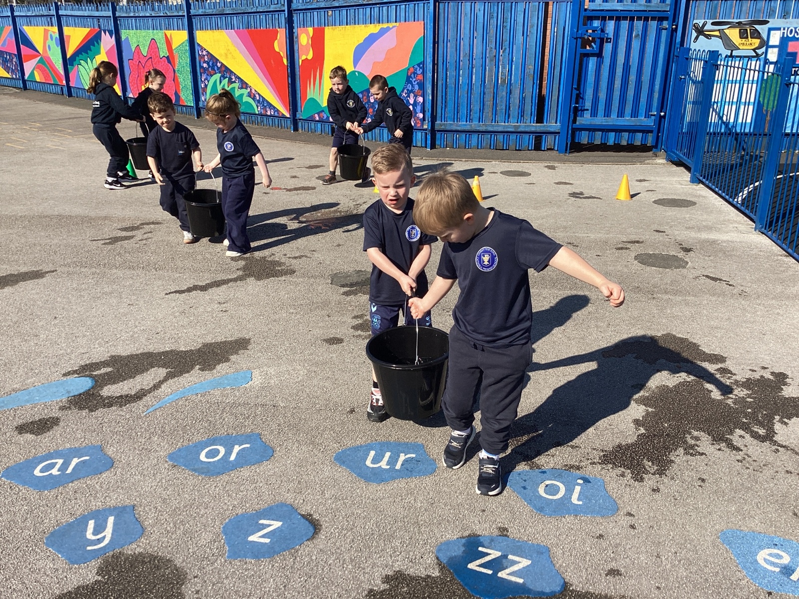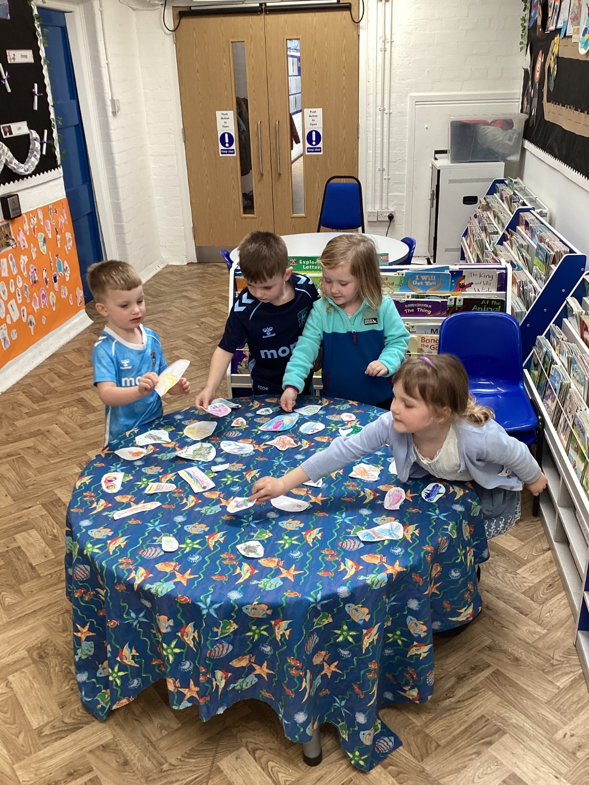 We celebrated World Water Day with a range of activities to raise awareness about the importance of making clean water accessible to everyone. We took part in water awareness activities and thought about how far some people have to travel to get water. We dressed in blue for World Water Day and after reading Commotion in the Ocean, we drew pictures of our favourite sea creatures for a collaborative art activity.