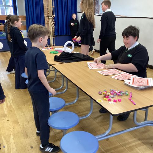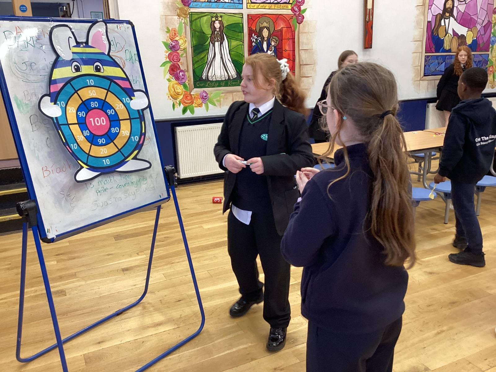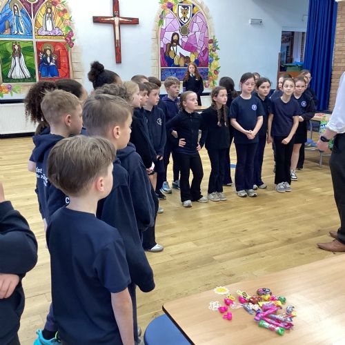 This afternoon, some staff members and pupils from Cardinal Newman School came into school to present the Charity Roadshow 2026. They had lots of fun activities to try and raised lots of money towards the Lenten Charity Pot for Hudson's and Caritas Collection.