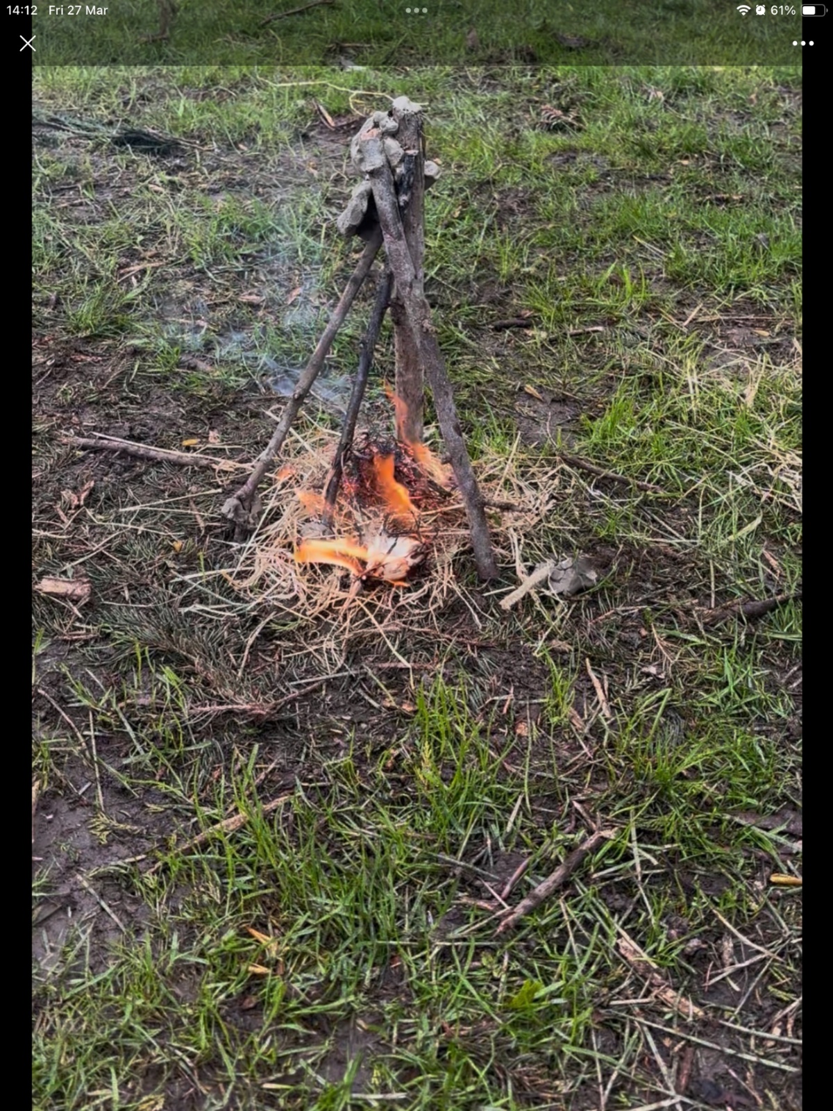 We had a lovely time at forest school with Mr Hadlum. We made houses from wood, clay and straw. We then set them alight. This was linked to our learning about The Great Fire of London.