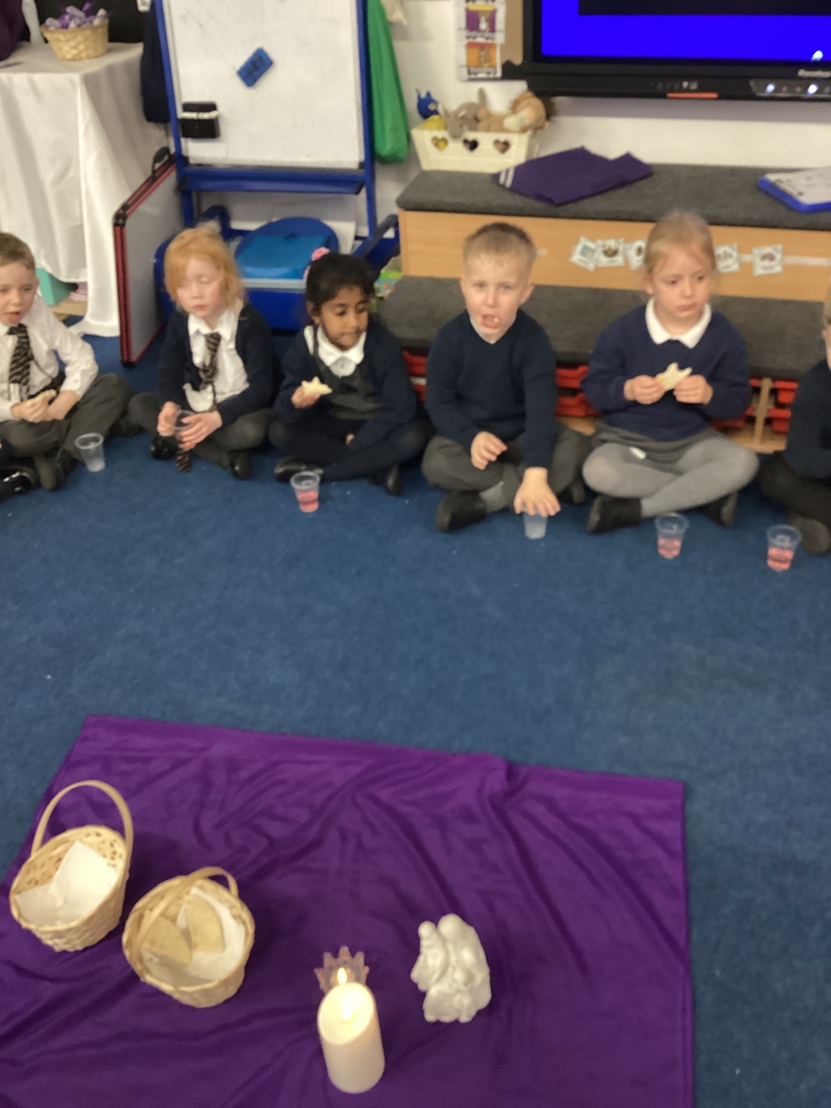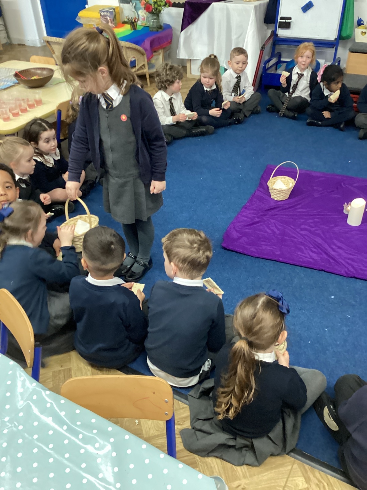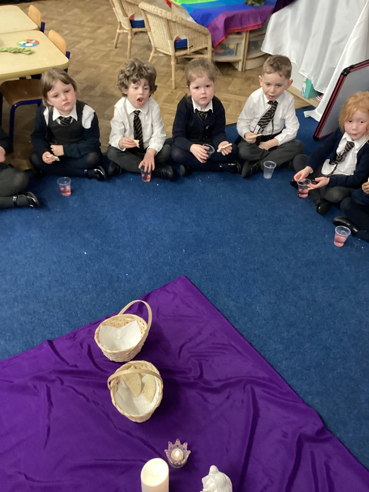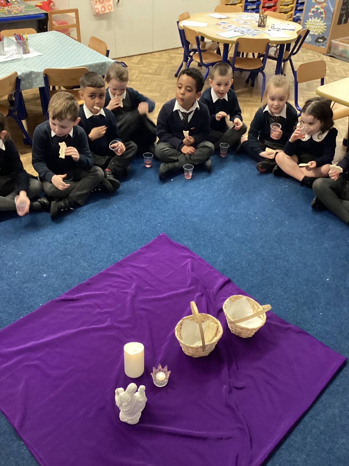 For our learning about The Last Supper, we discussed how this was the last meal Jesus was going to have with the disciples. We learnt how Jesus explained that he knew that one of his friends was going to betray him. We then shared bread and juice with our friends, just like Jesus did.