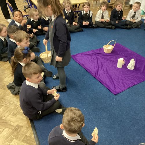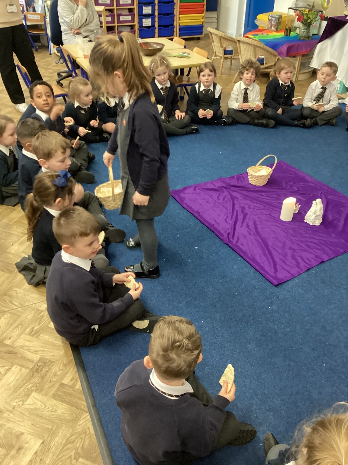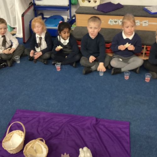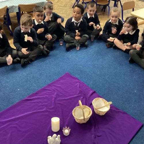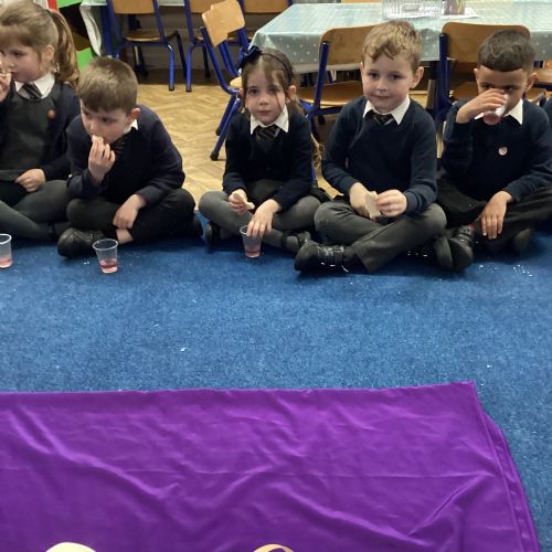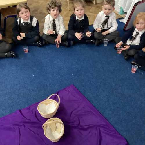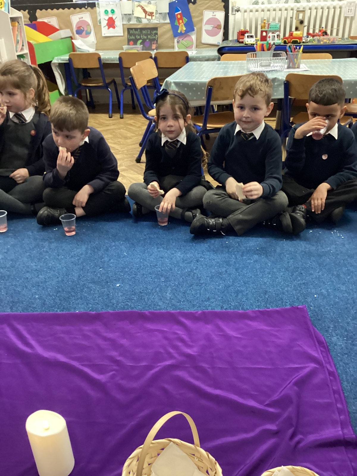 For our learning about The Last Supper, we discussed how this was the last meal Jesus was going to have with the disciples. We learnt how Jesus explained that he knew that one of his friends was going to betray him. We then shared bread and juice with our friends, just like Jesus did.