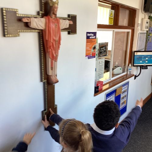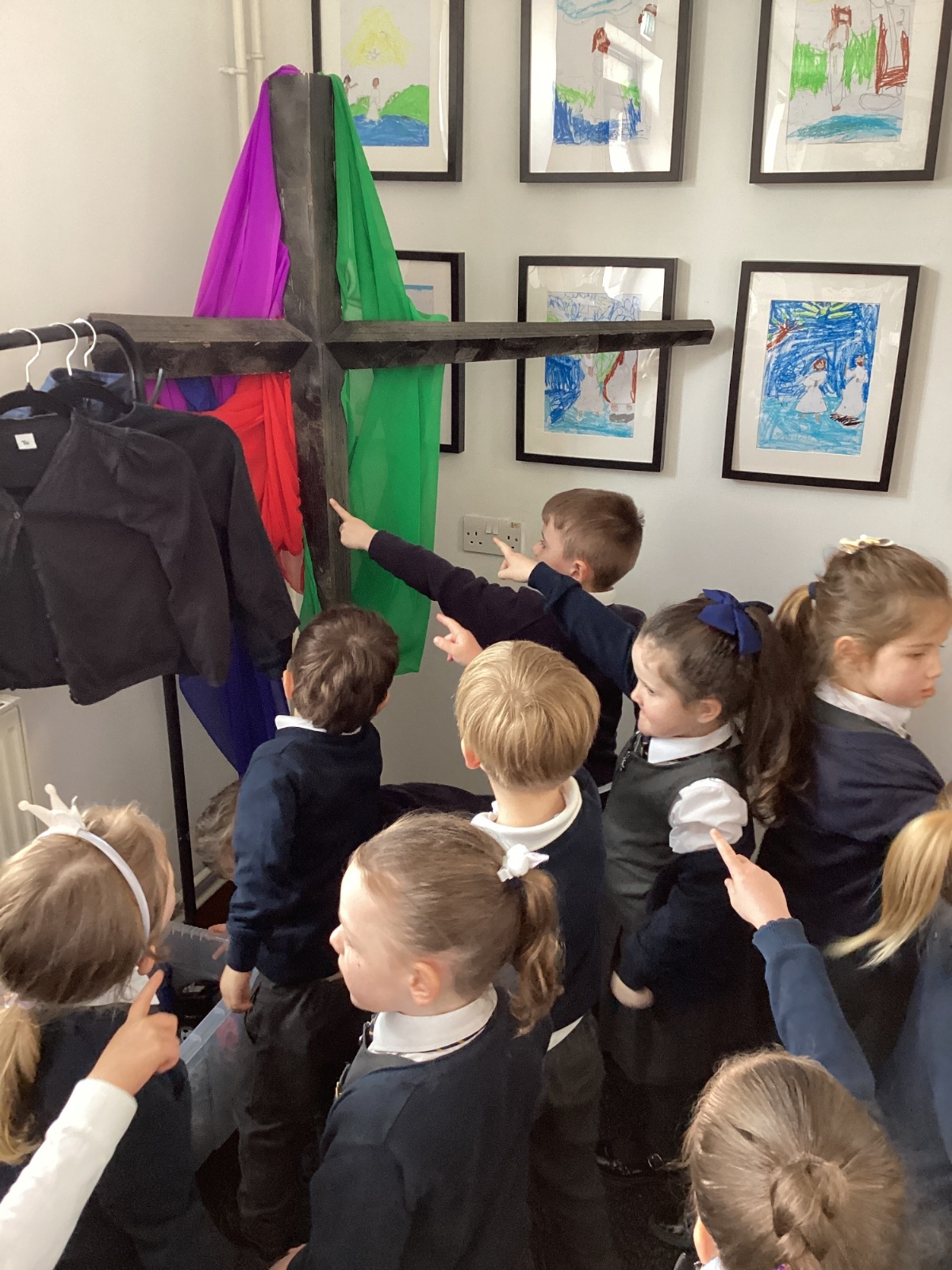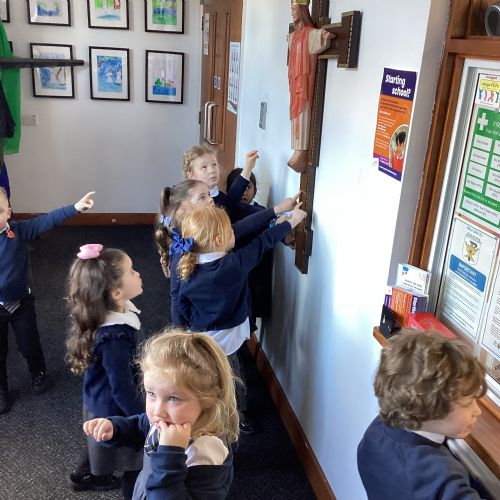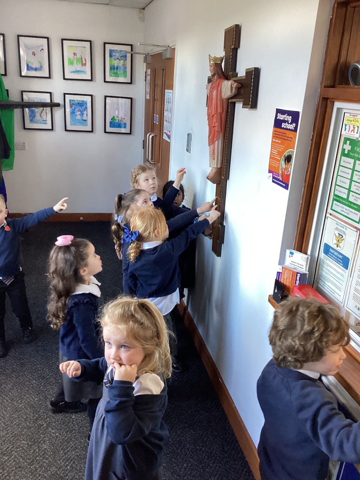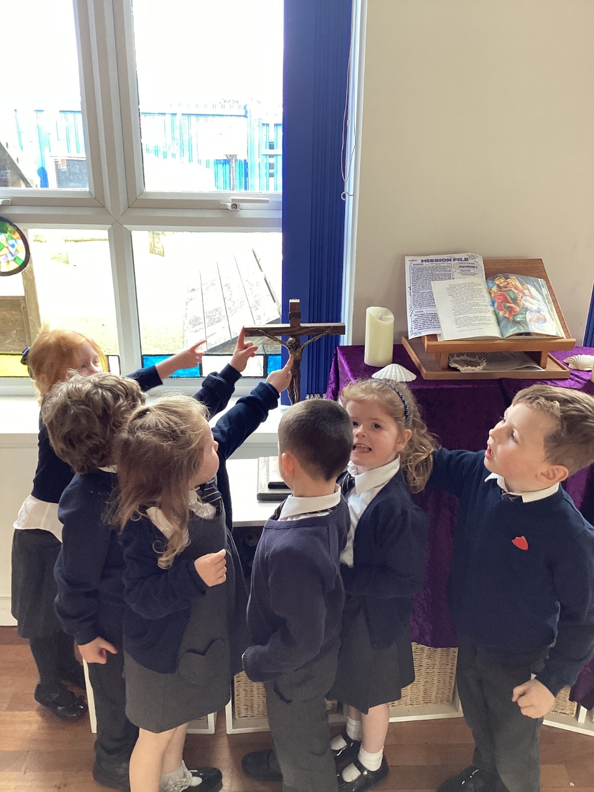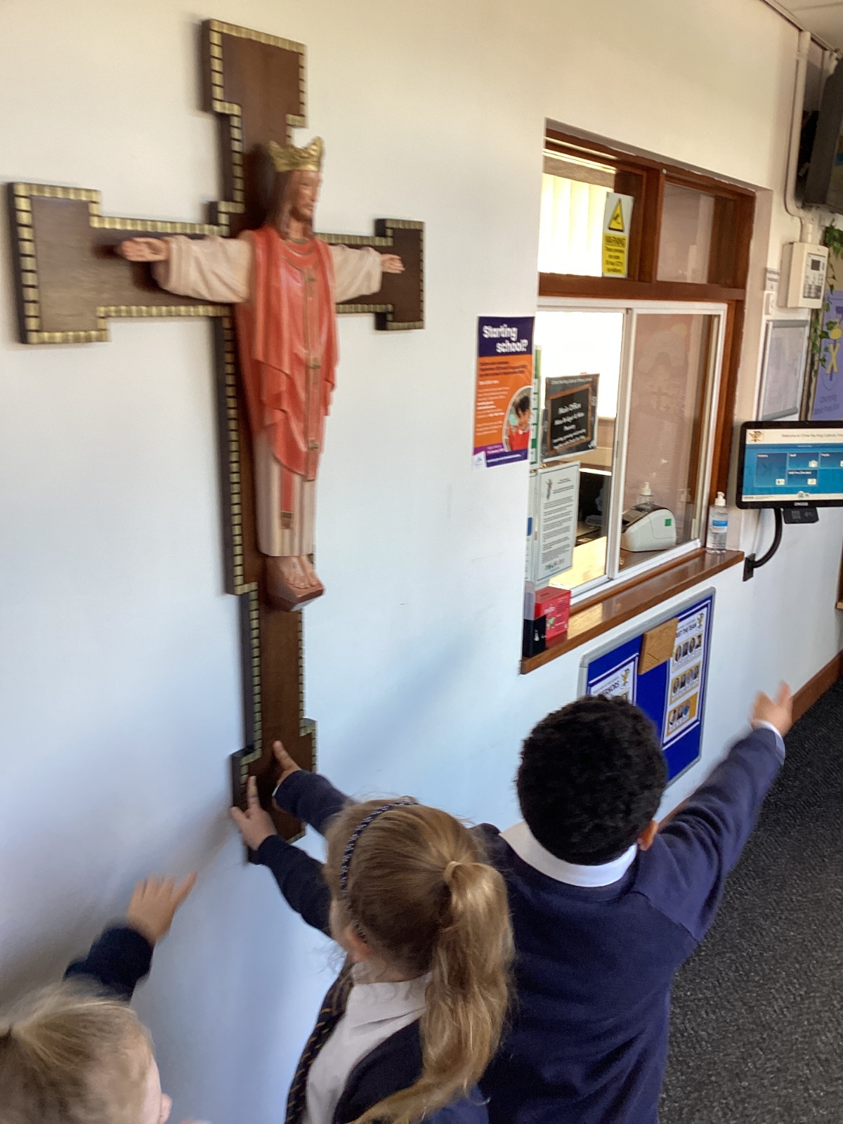 After reading about the events of Good Friday, we held a special prayer time. We discussed how Jesus died for us on the cross and how the cross is the special symbol of our faith. We went on a walk in our school environment to identify all the crucifixes and crosses that we can see.