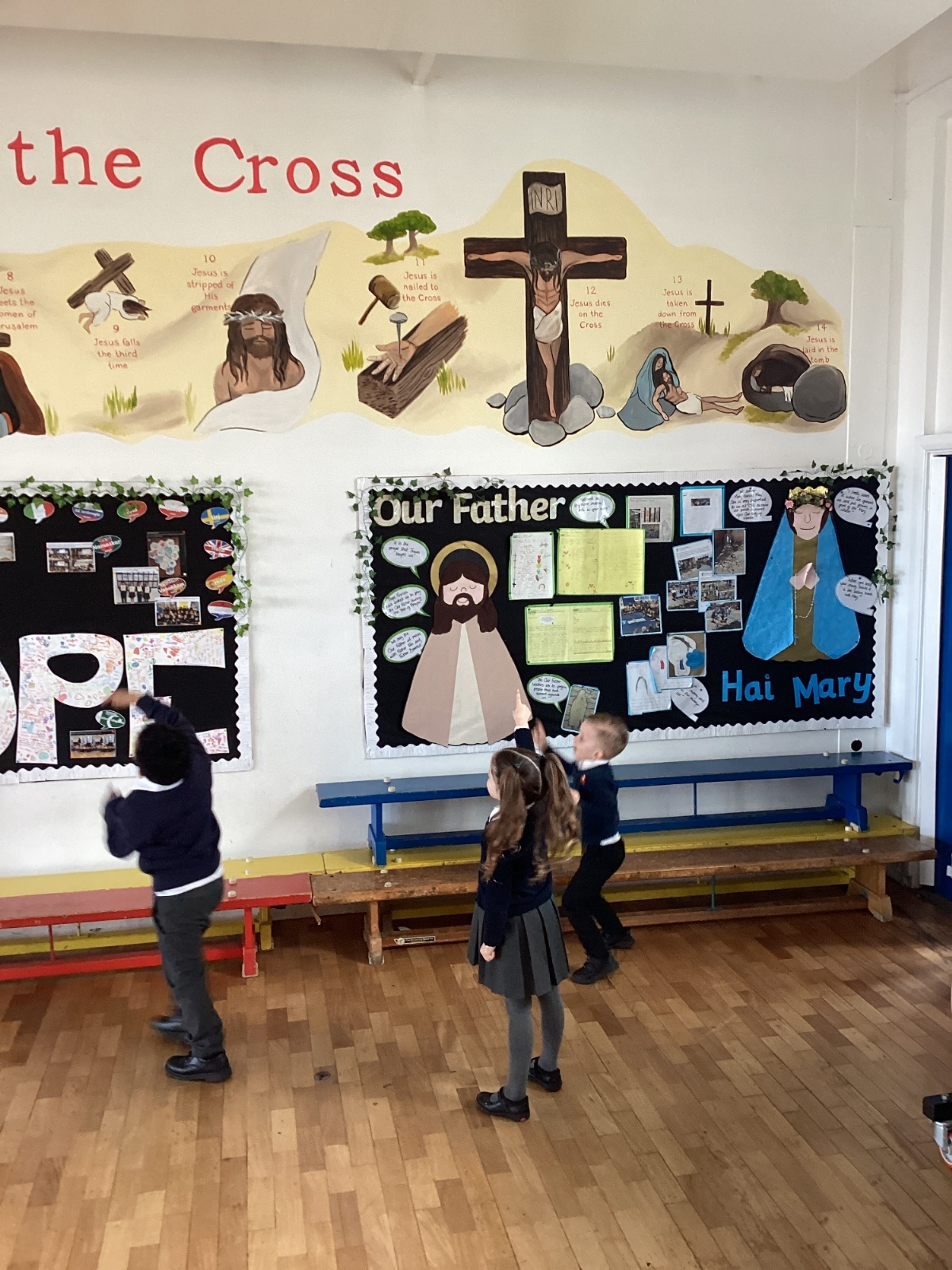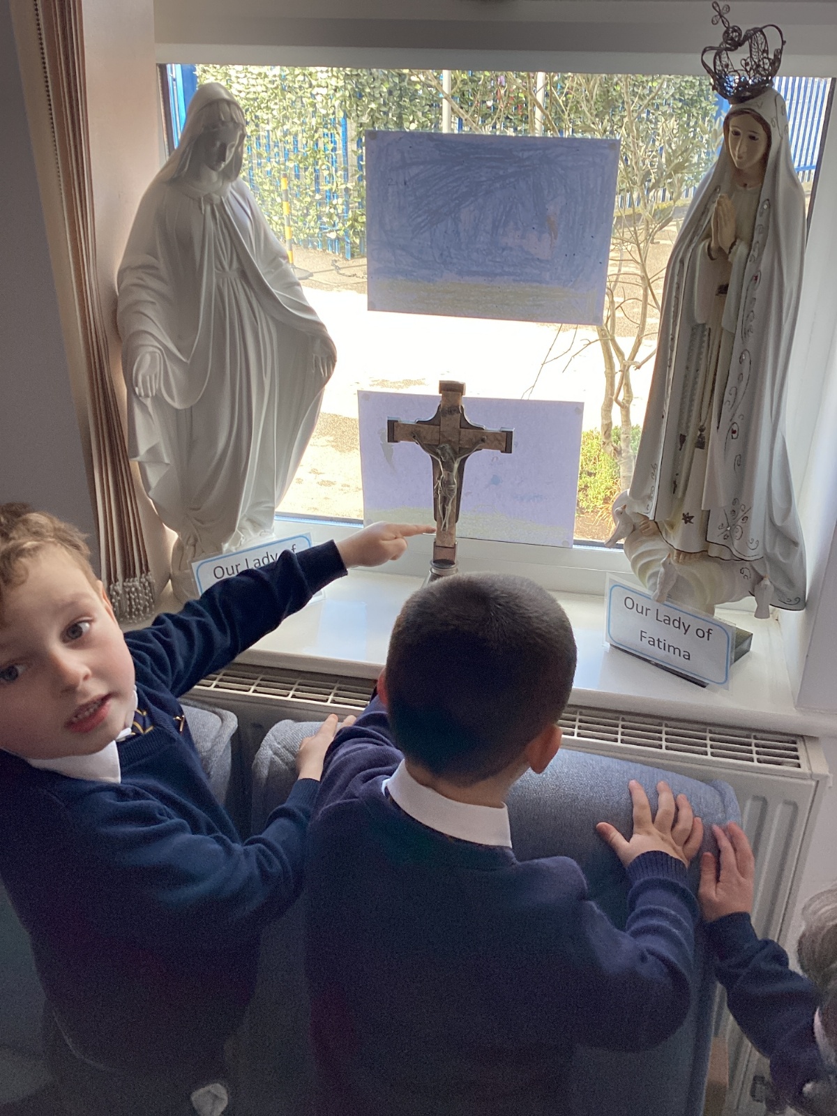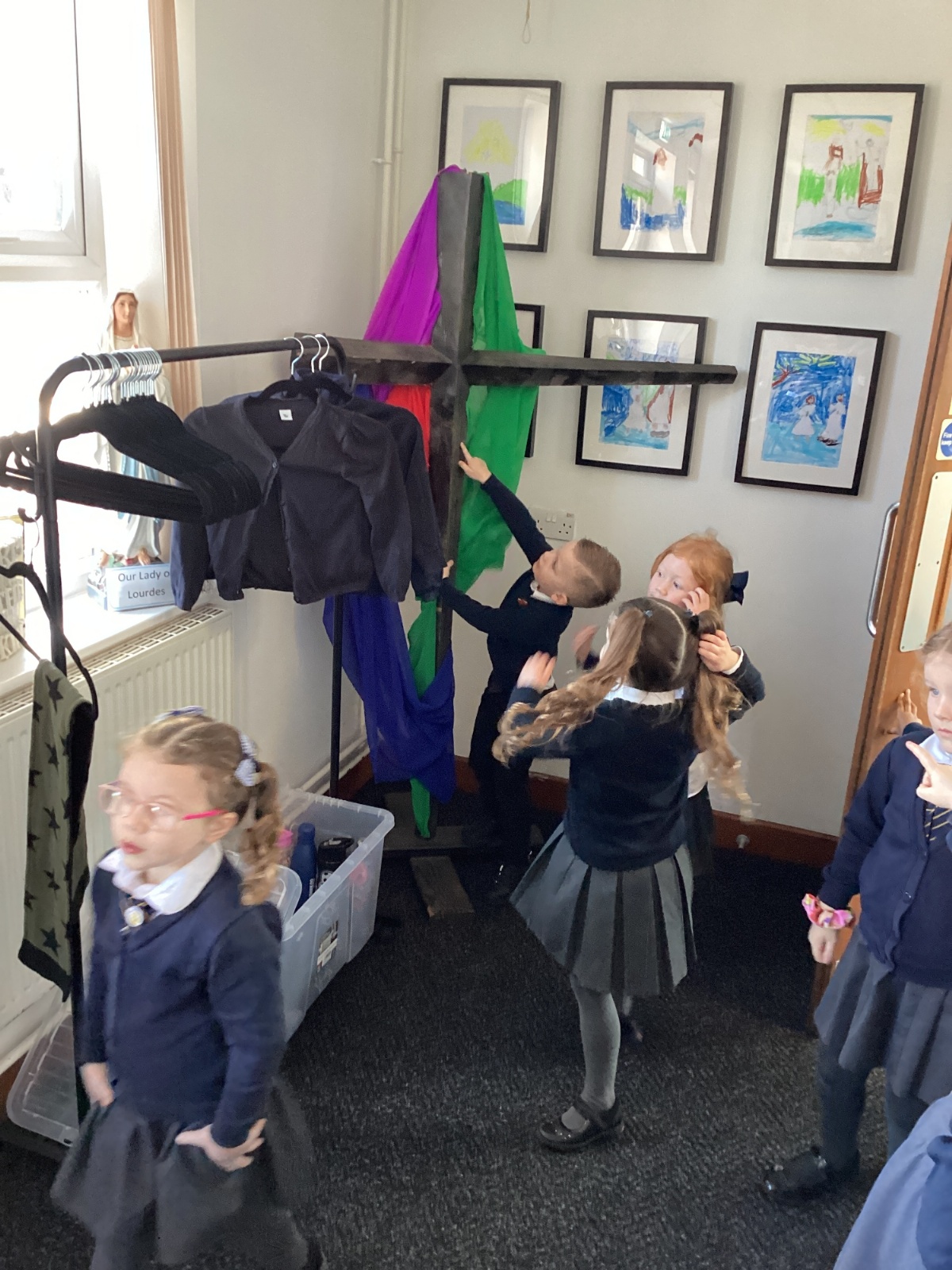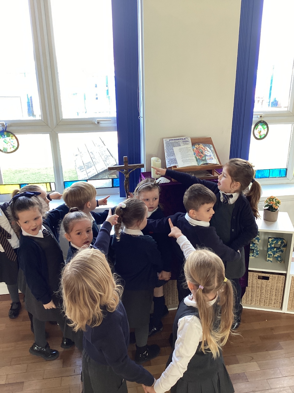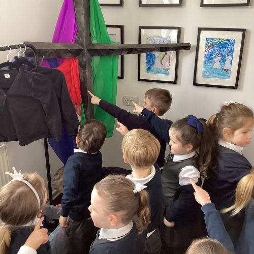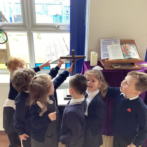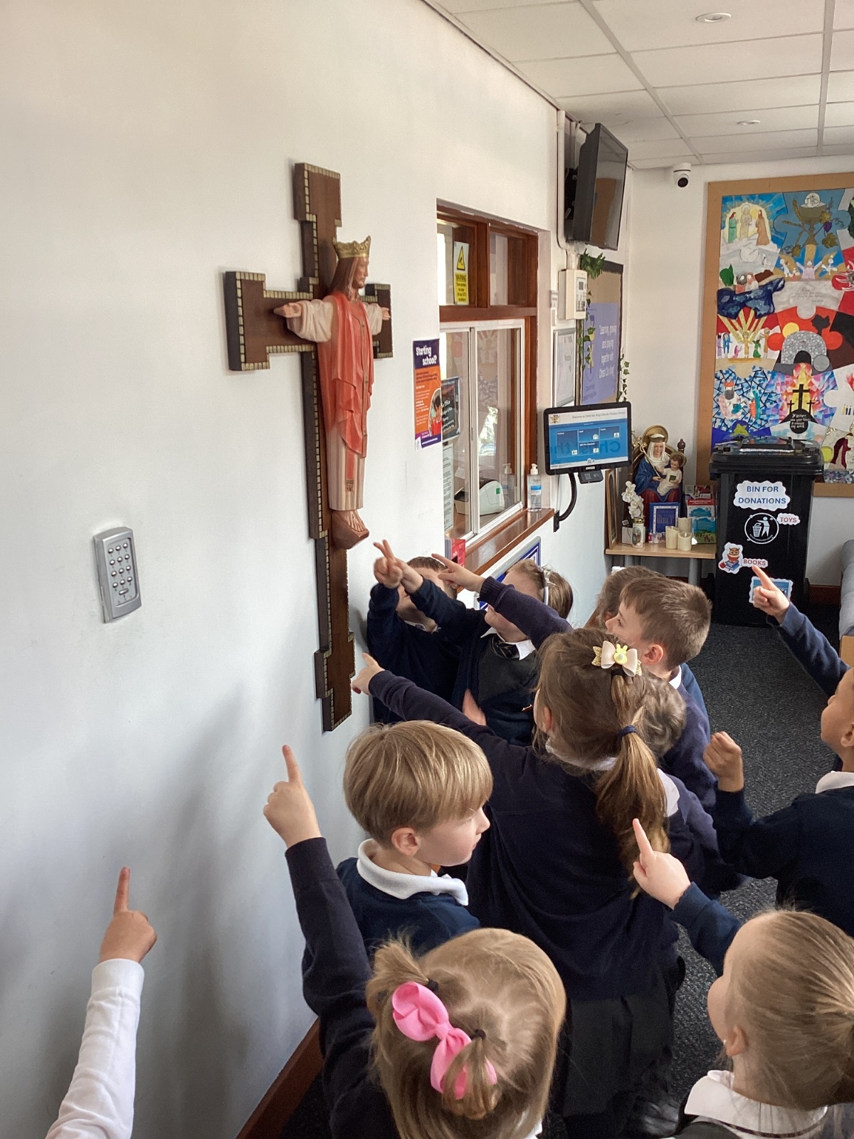 After reading about the events of Good Friday, we held a special prayer time. We discussed how Jesus died for us on the cross and how the cross is the special symbol of our faith. We went on a walk in our school environment to identify all the crucifixes and crosses that we can see.