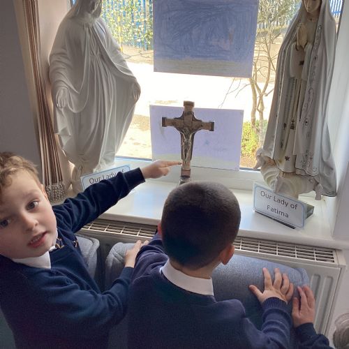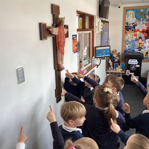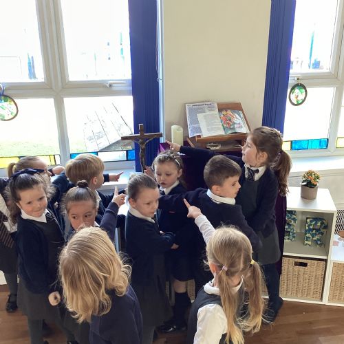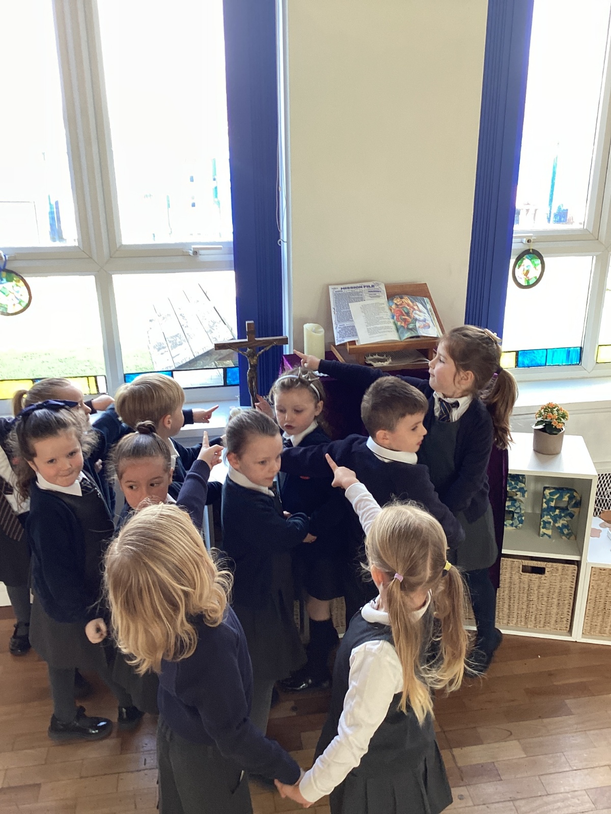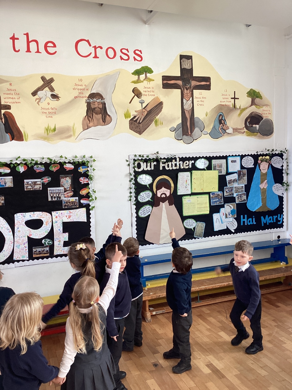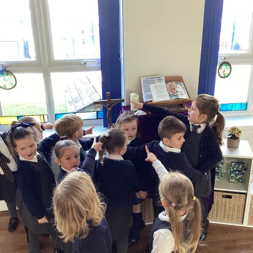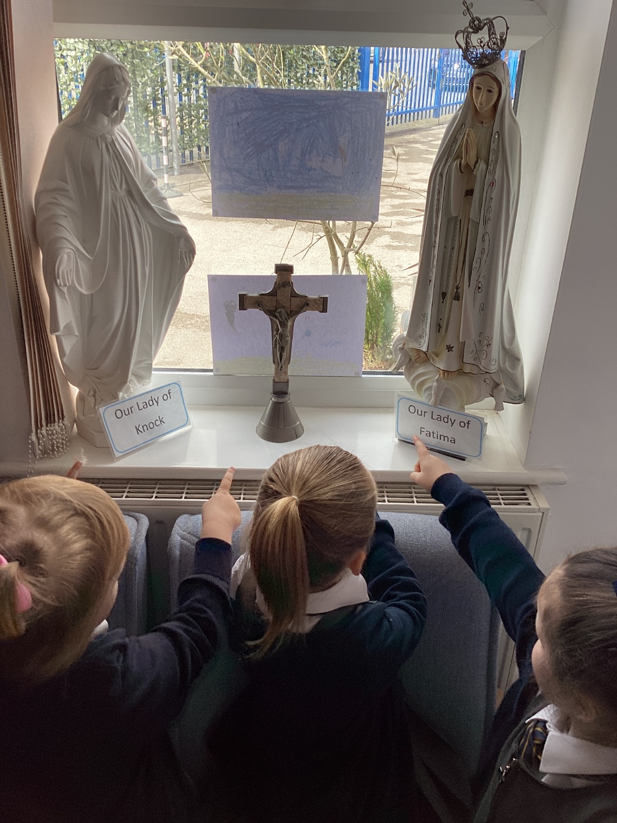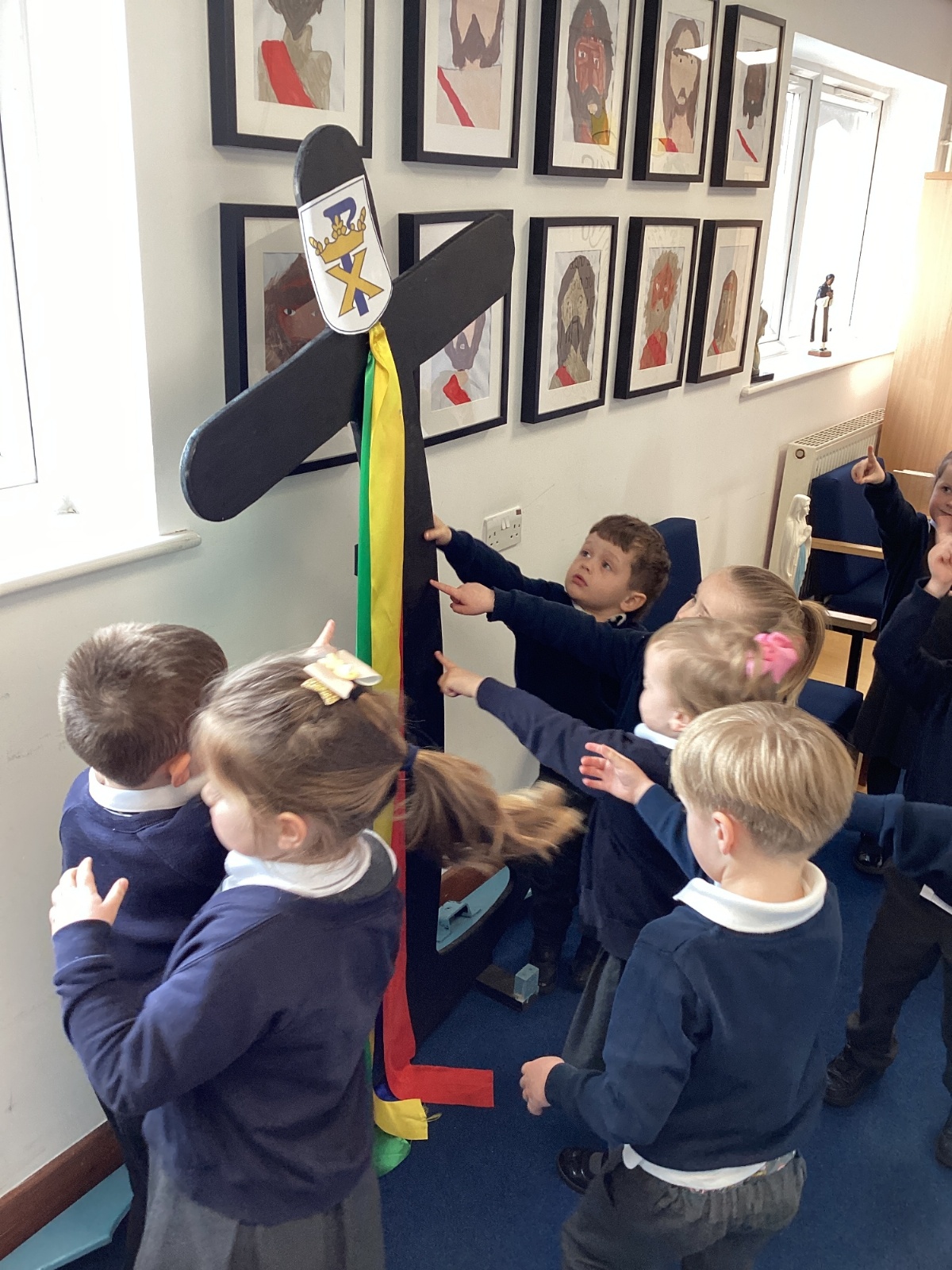 After reading about the events of Good Friday, we held a special prayer time. We discussed how Jesus died for us on the cross and how the cross is the special symbol of our faith. We went on a walk in our school environment to identify all the crucifixes and crosses that we can see.
